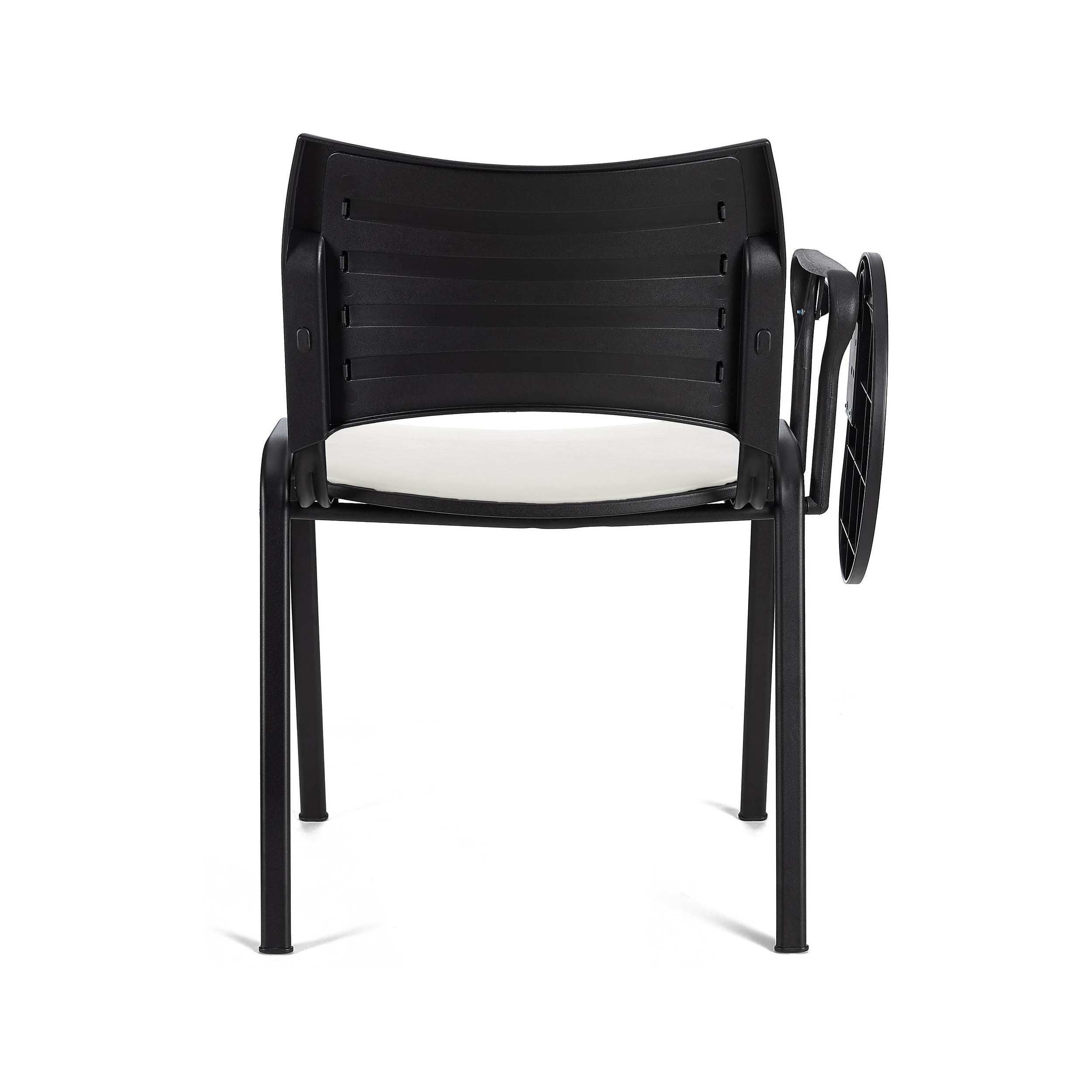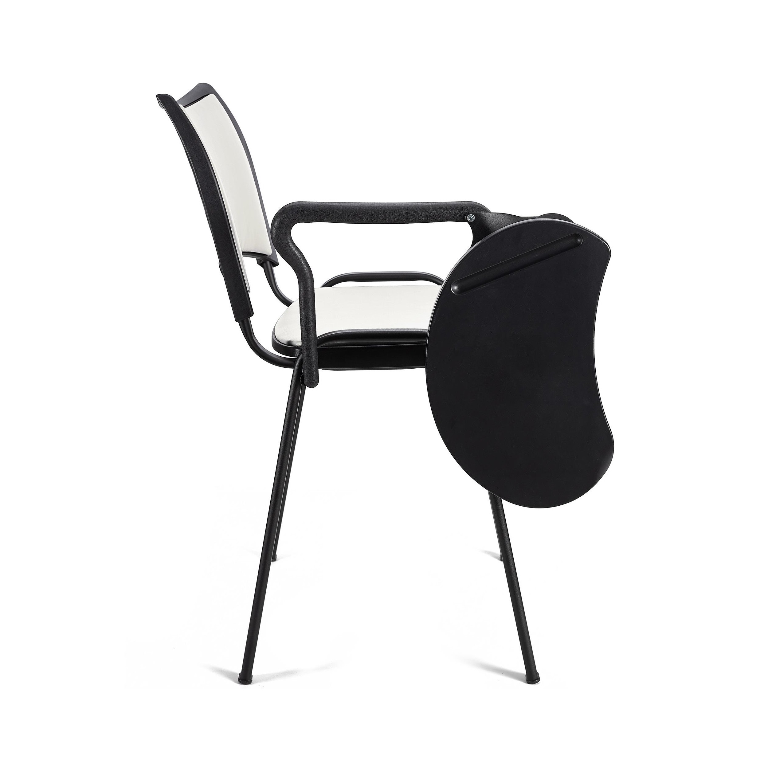 El diseño ergonómico junto a su asiento y respaldo acolchados, hacen que esta silla también destaque por su confort. De esta manera, te aseguras que tus visitas o clientes puedan estar cómodos durante horas. Además, cuenta con pala para escritura, ideal para poder ofrecer un cómodo punto de apoyo a la hora de tomar notas.