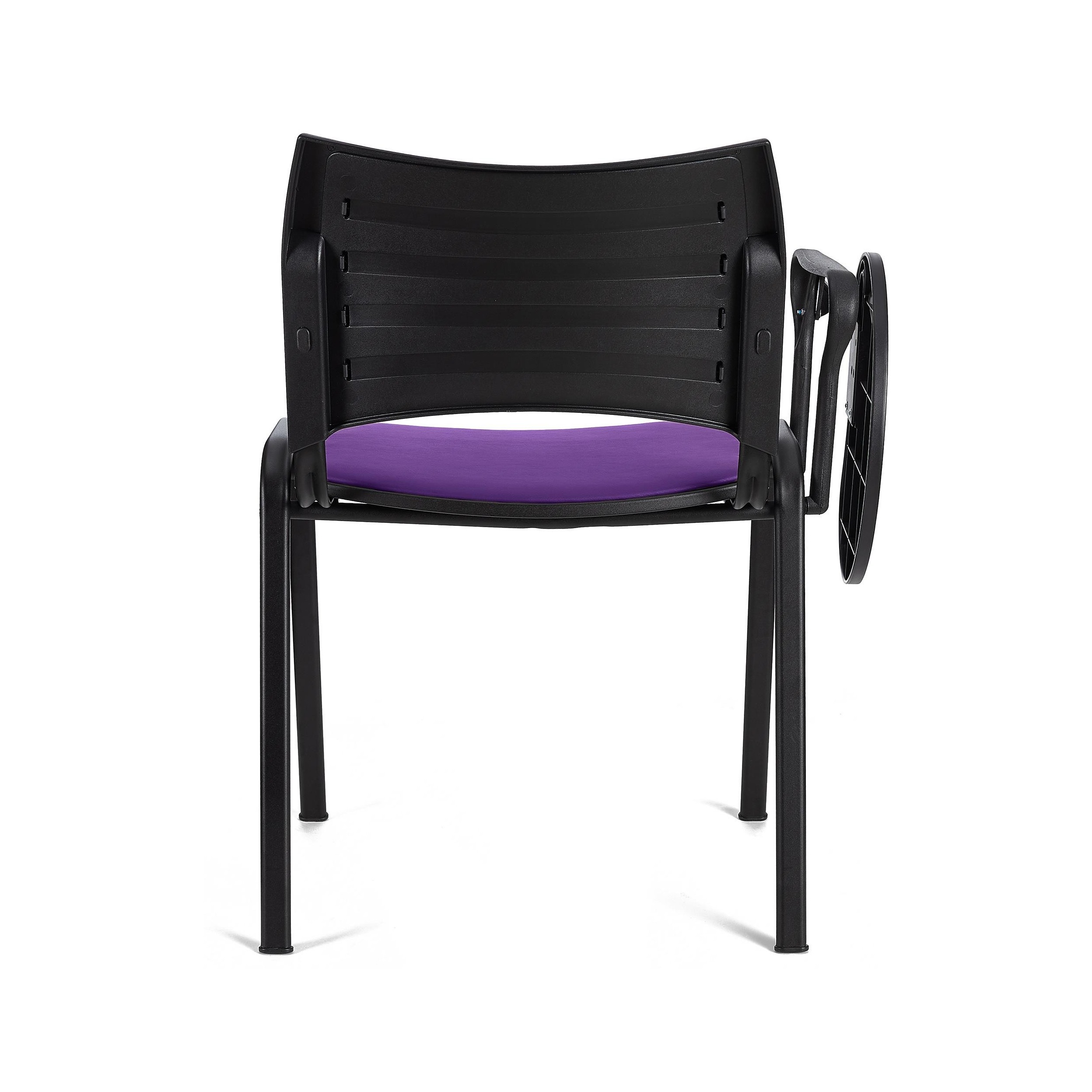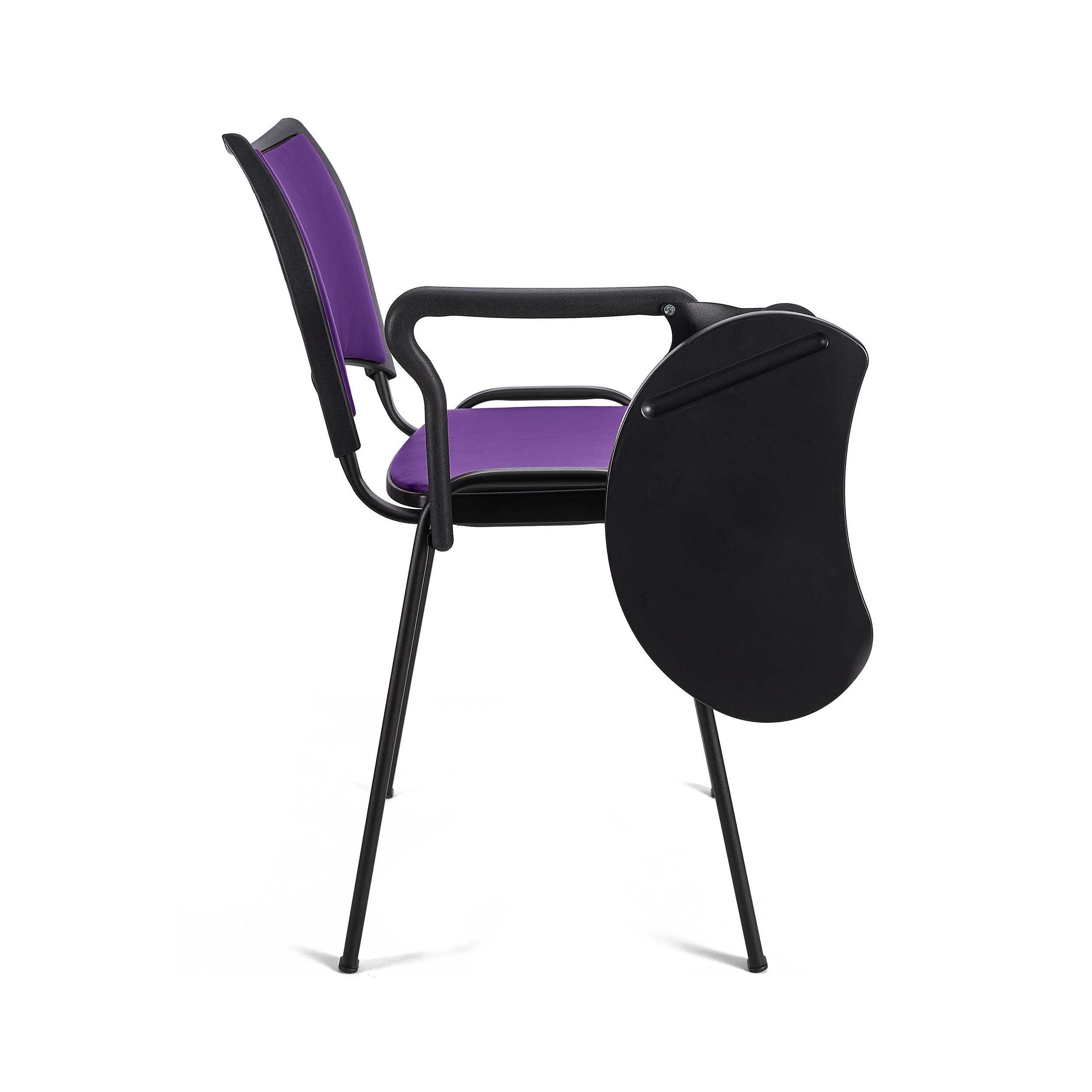 El diseño ergonómico junto a su asiento y respaldo acolchados, hacen que esta silla también destaque por su confort. De esta manera, te aseguras que tus visitas o clientes puedan estar cómodos durante horas. Además, cuenta con pala para escritura, ideal para poder ofrecer un cómodo punto de apoyo a la hora de tomar notas.