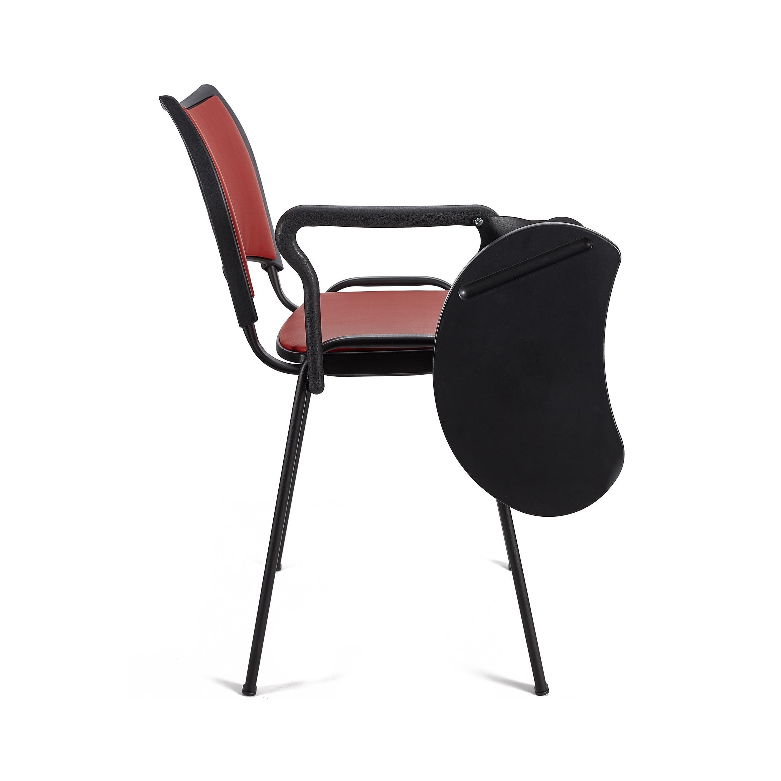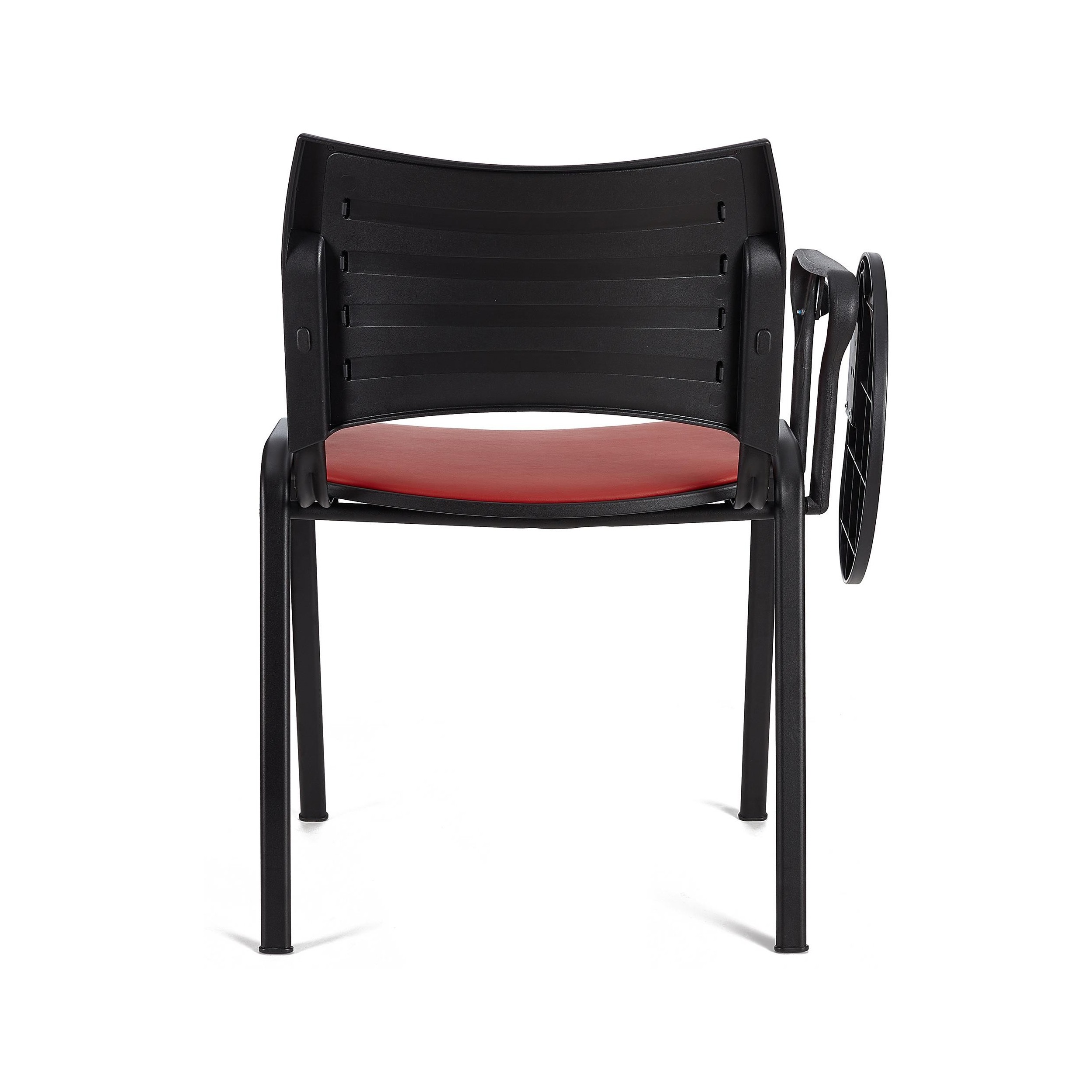 El diseño ergonómico junto a su asiento y respaldo acolchados, hacen que esta silla también destaque por su confort. De esta manera, te aseguras que tus visitas o clientes puedan estar cómodos durante horas. Además, cuenta con pala para escritura, ideal para poder ofrecer un cómodo punto de apoyo a la hora de tomar notas.
