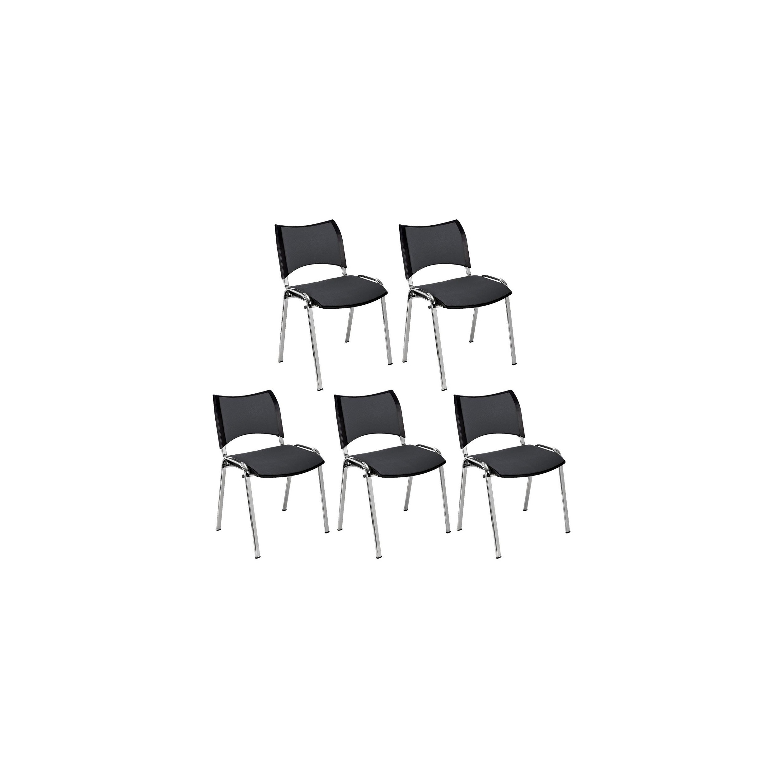 Lote de 5 Sillas de Confidente ROMEL, Cómodo Acolchado, Apilable, Patas Cromadas, en Tela Negra