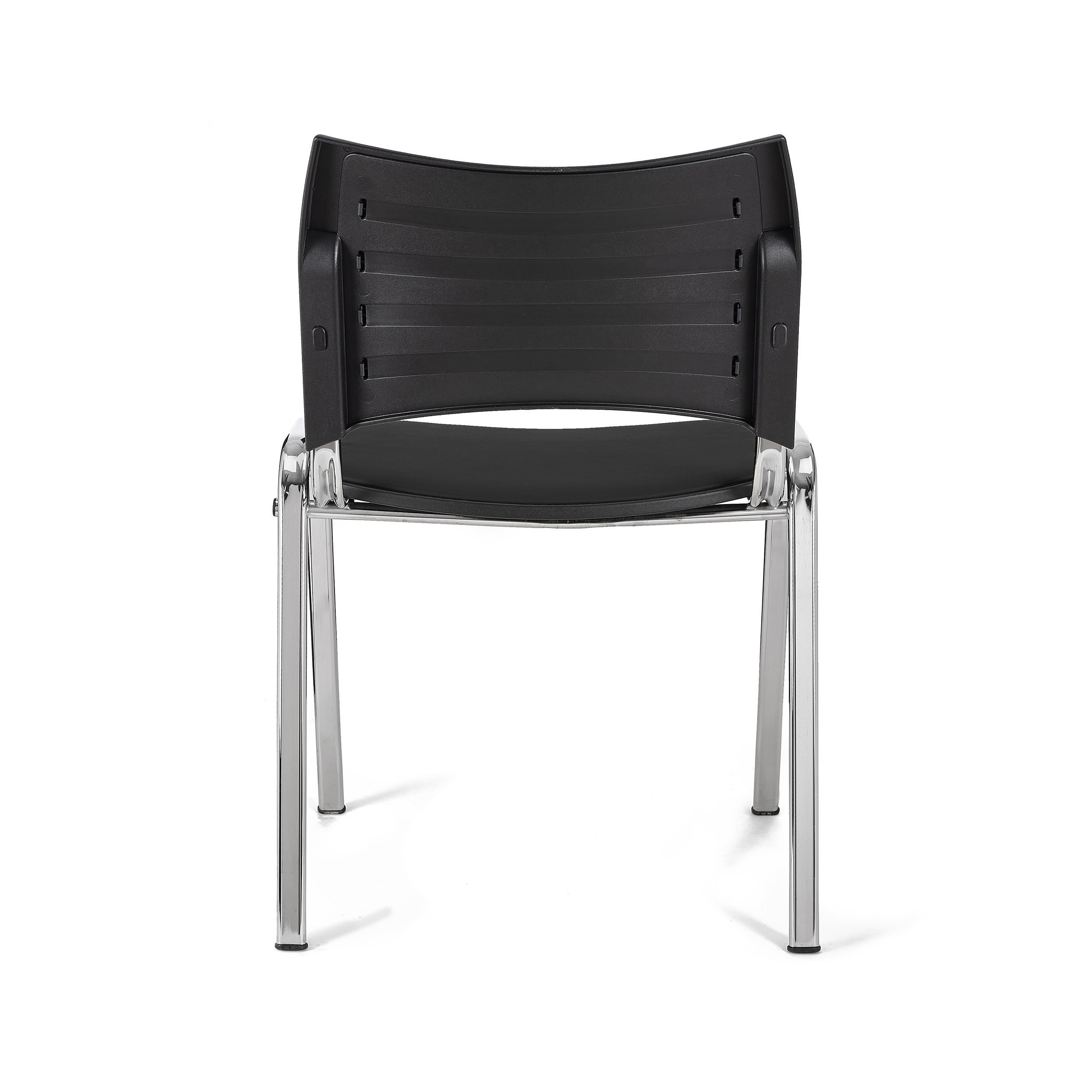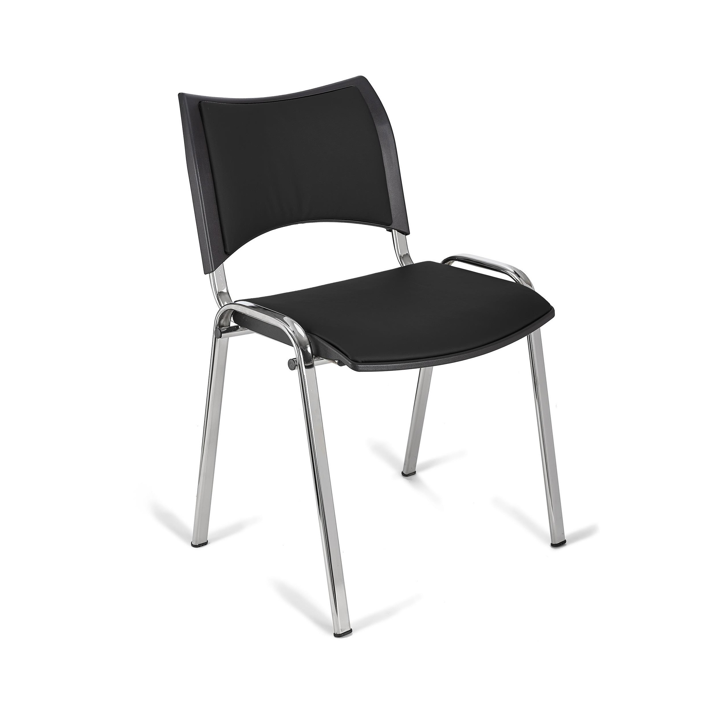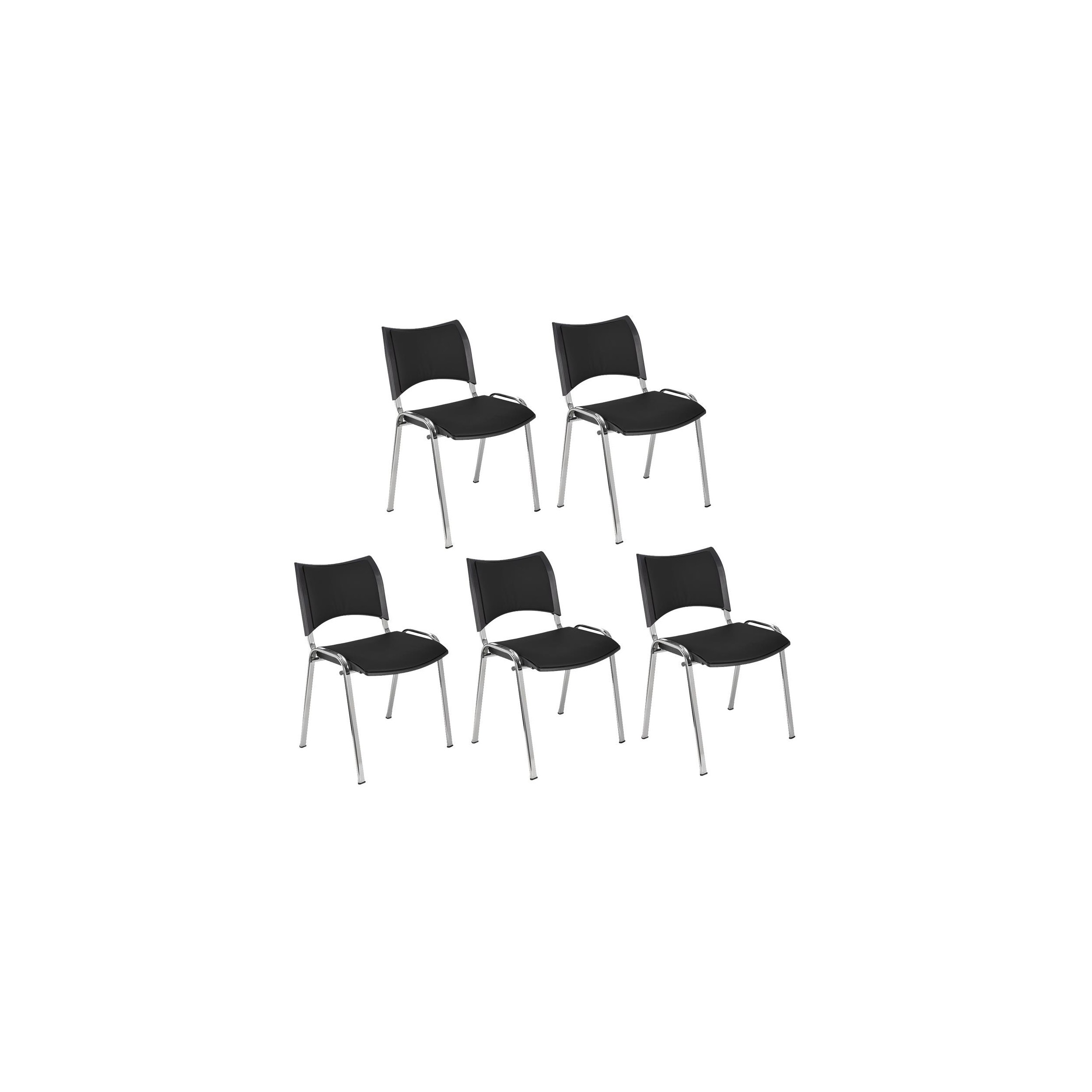 Lote de 5 Sillas de Confidente ROMEL PIEL, Cómodo Acolchado, Apilables, Patas Cromadas, en Negro