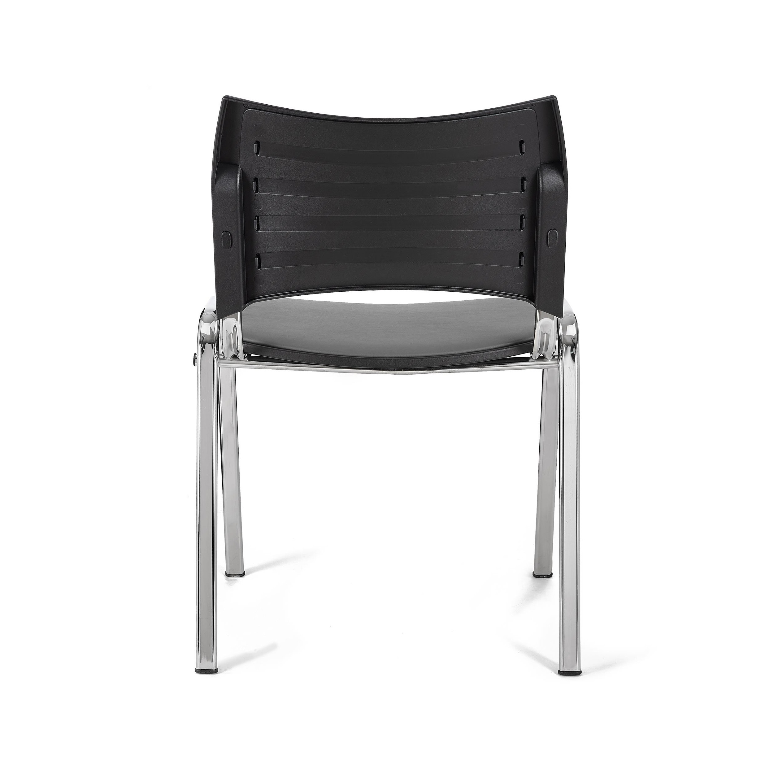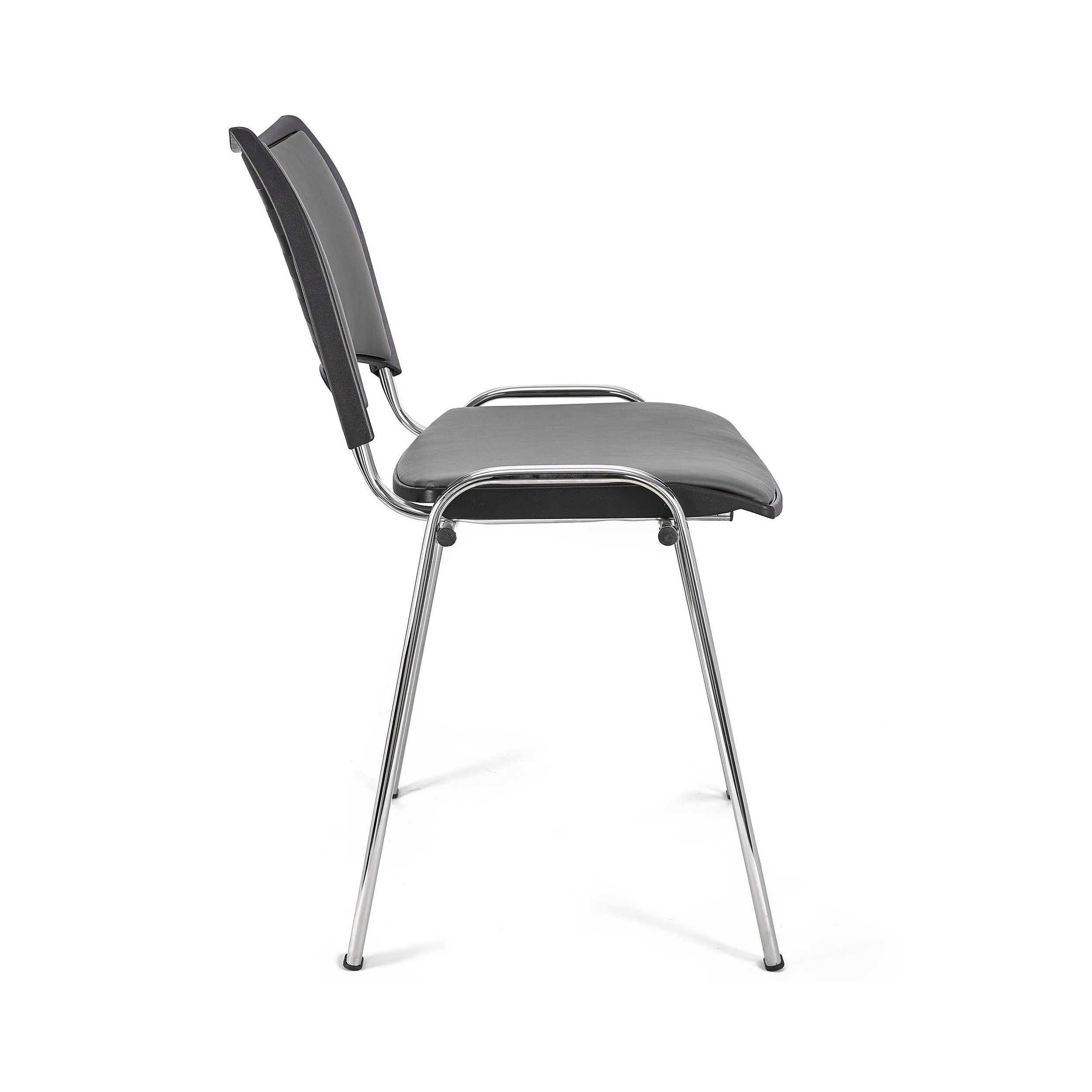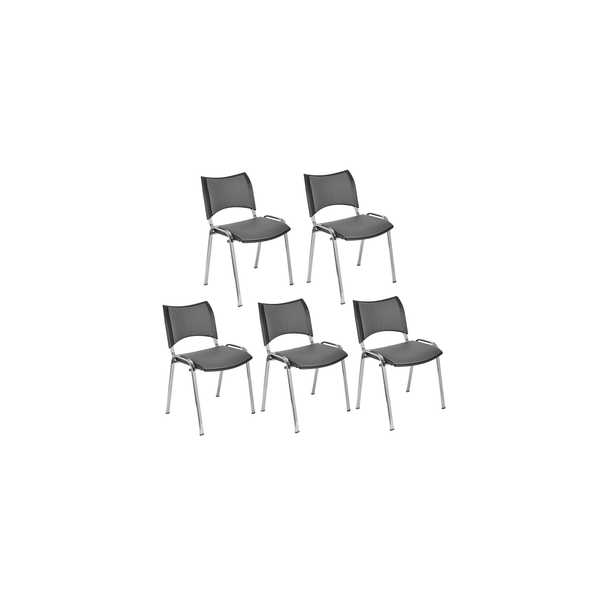 Lote de 5 Sillas de Confidente ROMEL PIEL, Cómodo Acolchado, Apilables, Patas Cromadas, en Negro