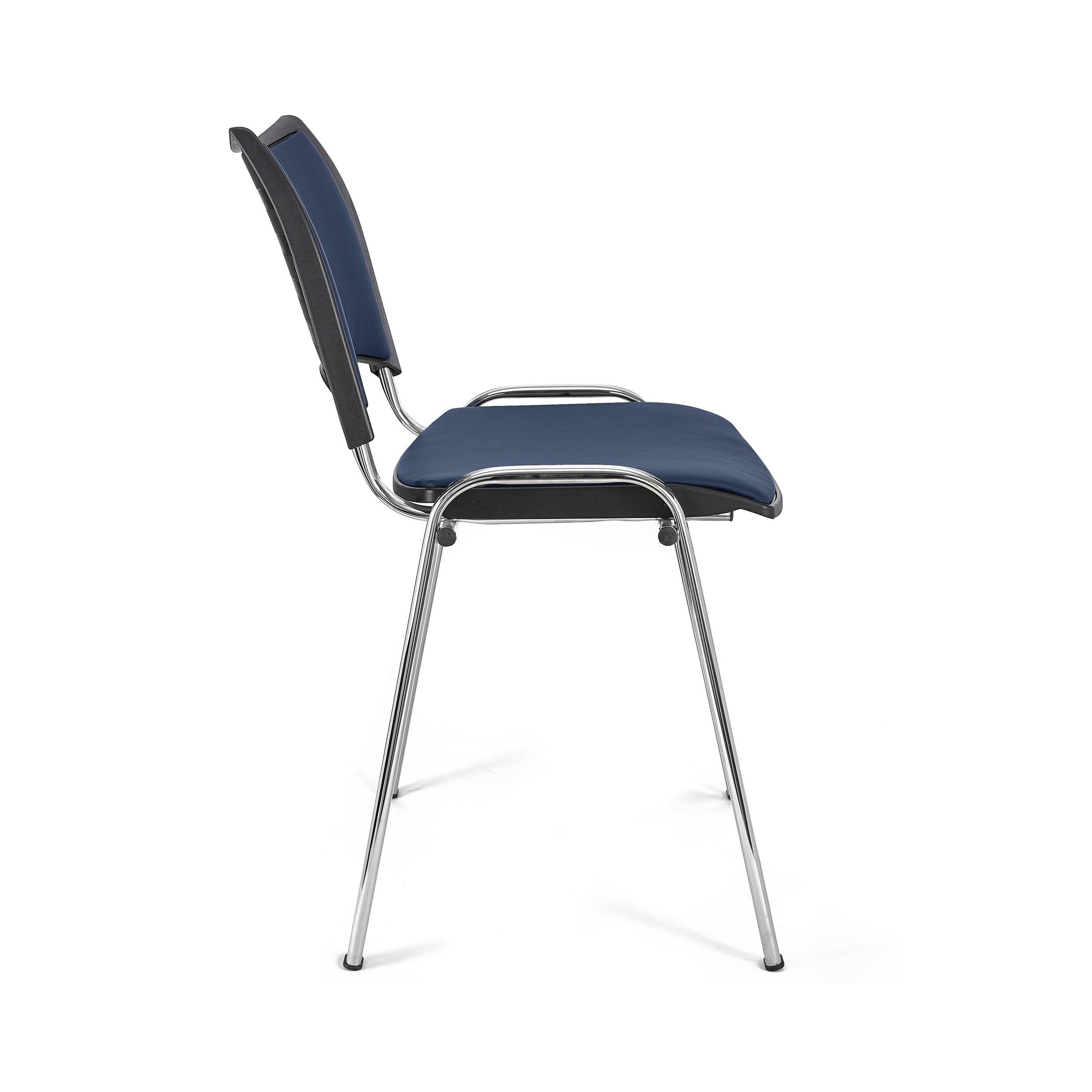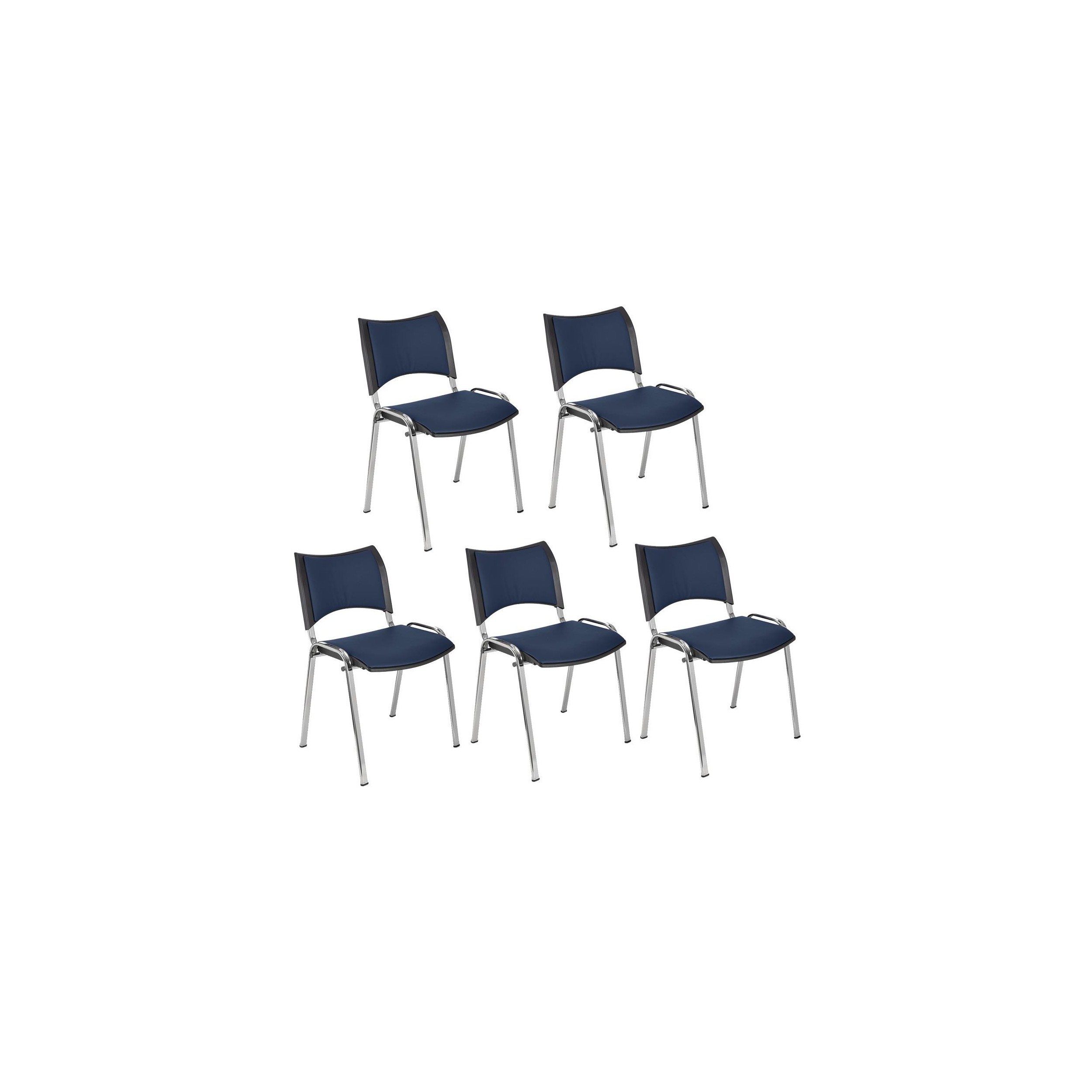 Lote de 5 Sillas de Confidente ROMEL PIEL, Cómodo Acolchado, Apilables, Patas Cromadas, en Negro