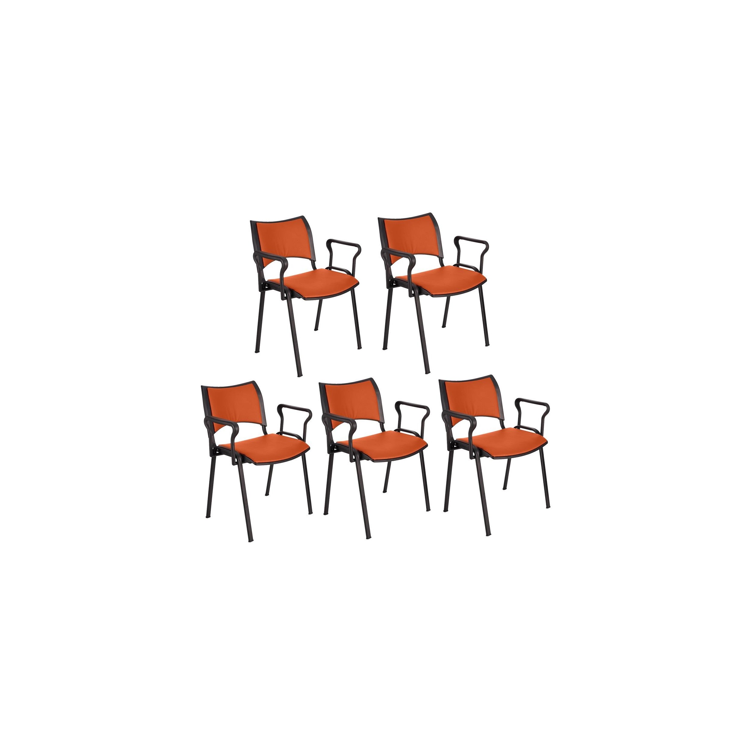 Lote de 5 Sillas de Confidente ROMEL CON BRAZOS PIEL con Patas Negras en negro
