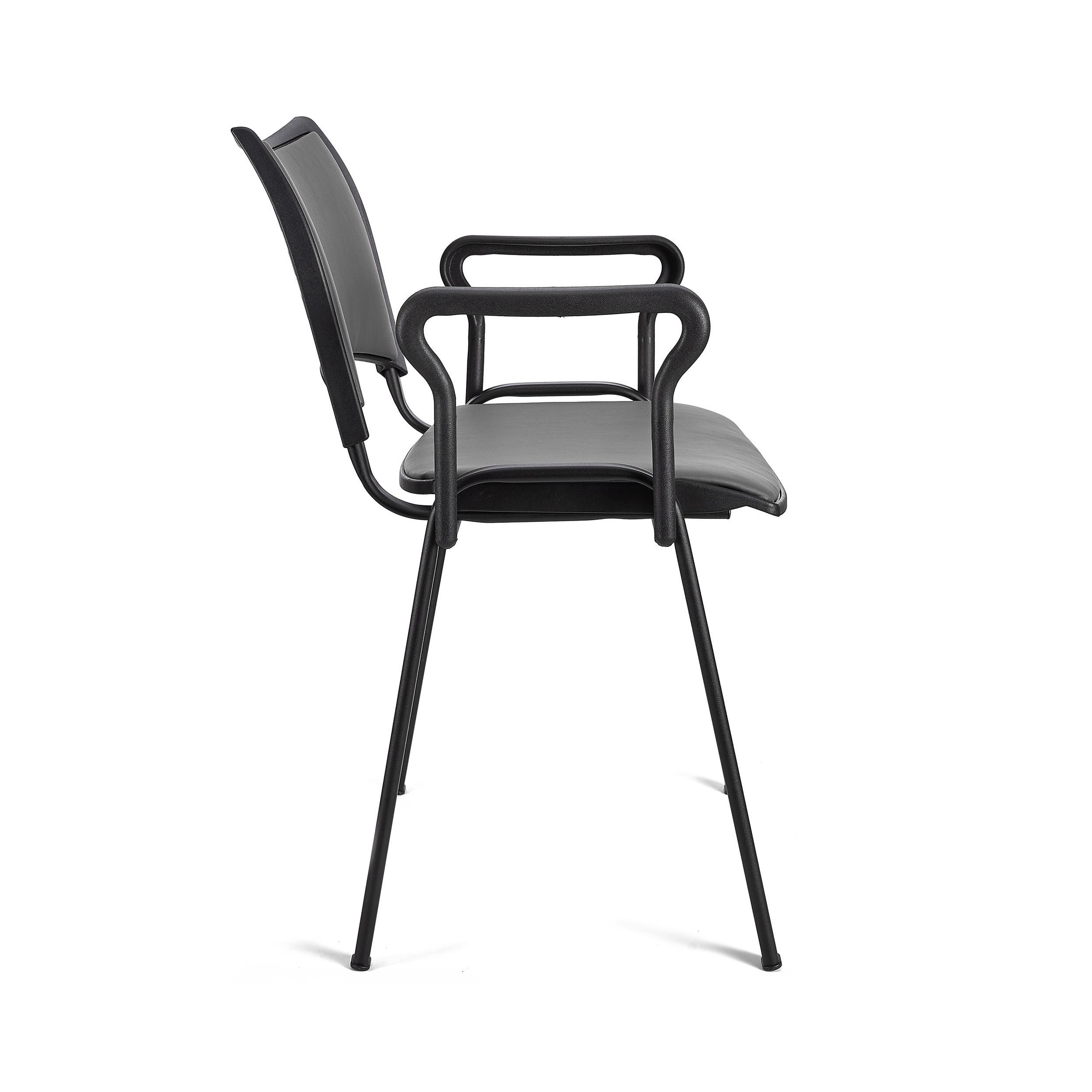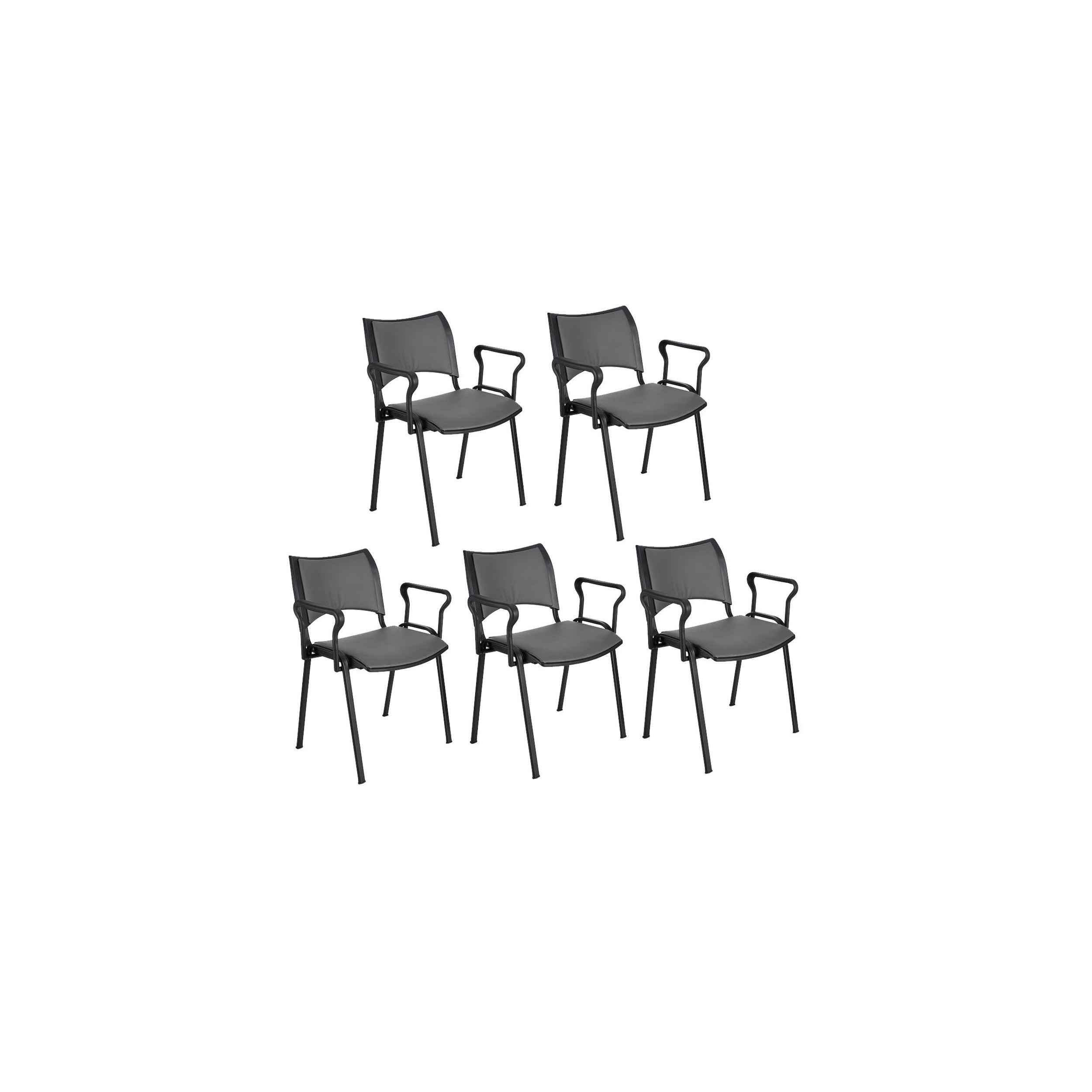 Lote de 5 Sillas de Confidente ROMEL CON BRAZOS PIEL, Cómodo Acolchado, Apilables, Patas Negras, en Negro