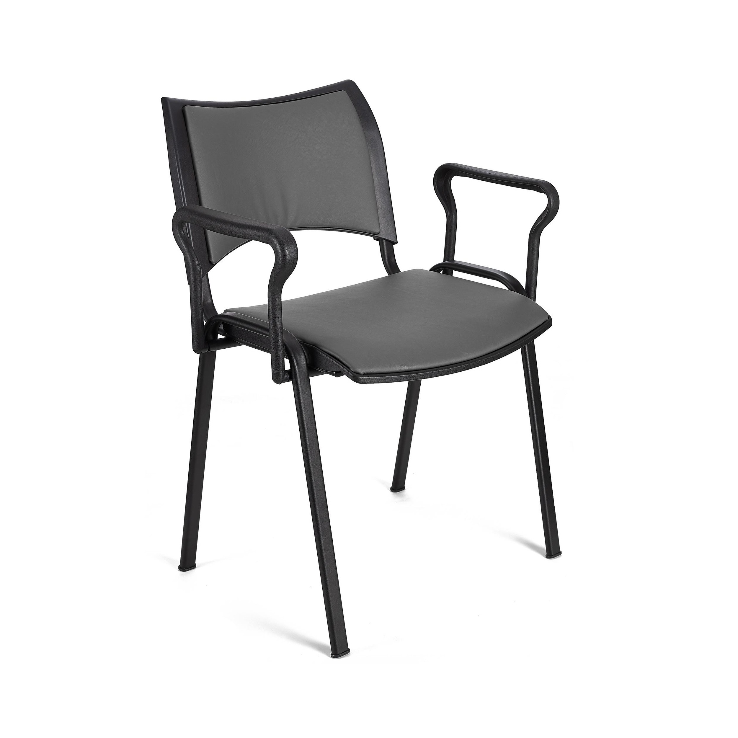 Lote de 5 Sillas de Confidente ROMEL CON BRAZOS PIEL con Patas Negras en negro