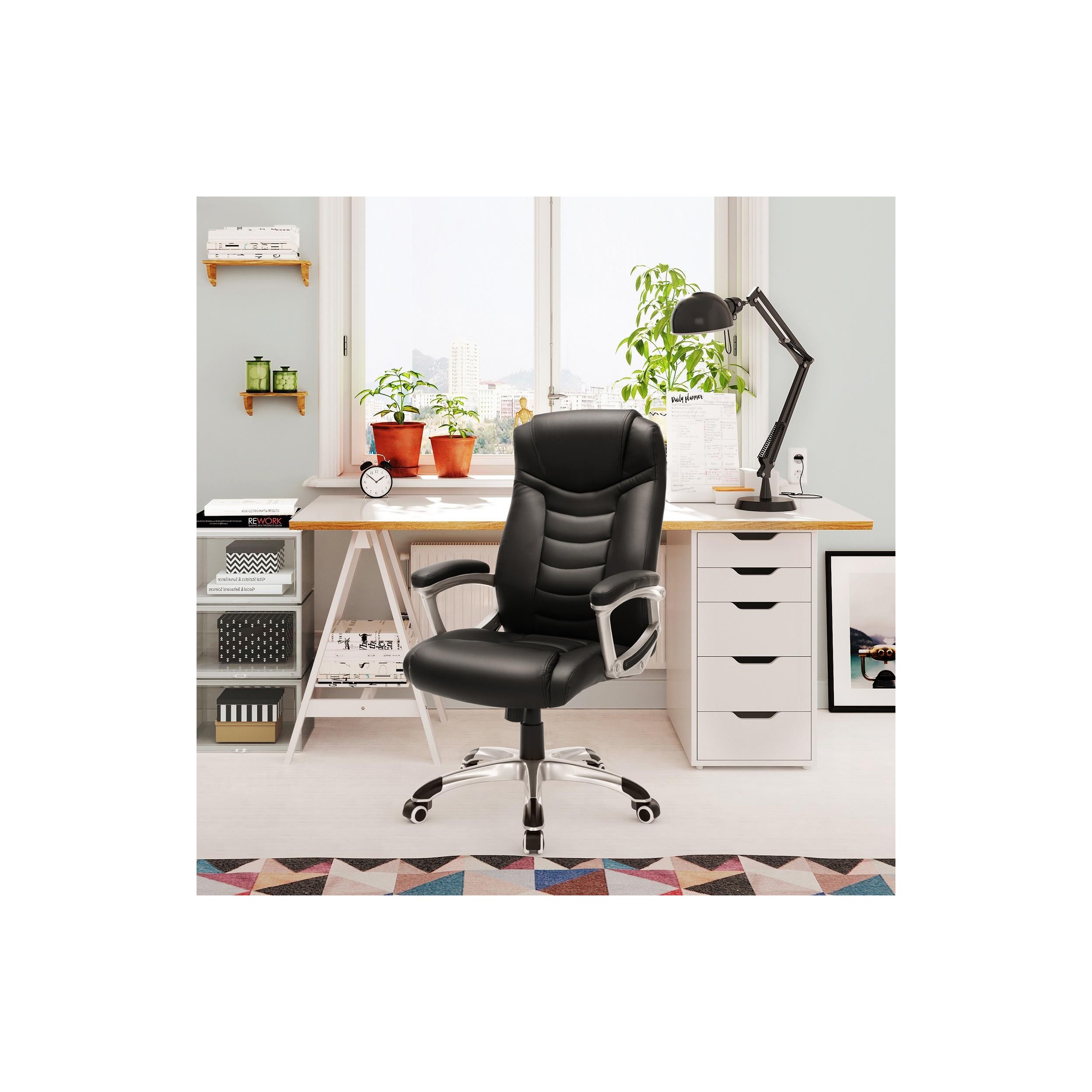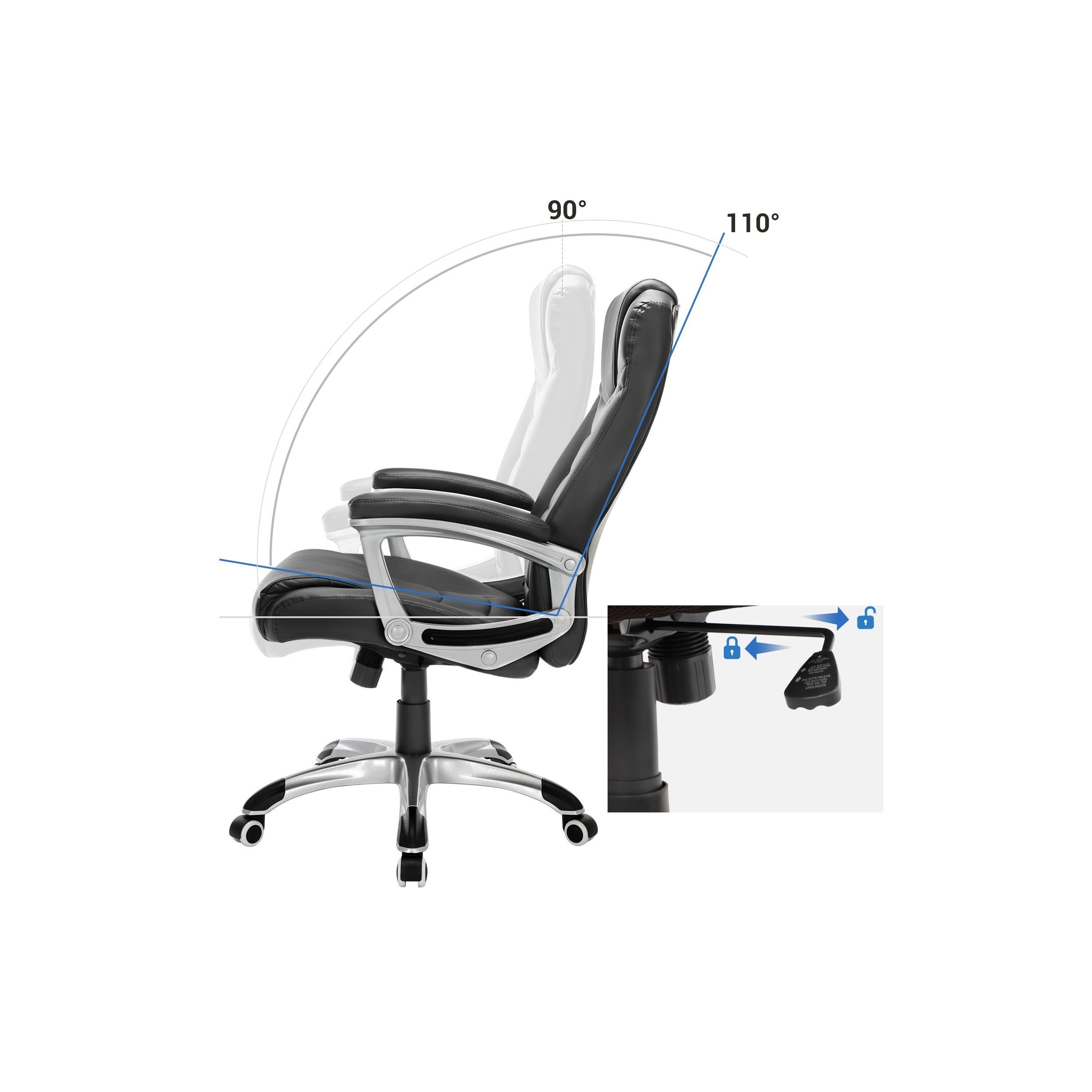 Silla de Oficina ASLAN, Grueso Acolchado, Elegantes Costuras, Piel Negra