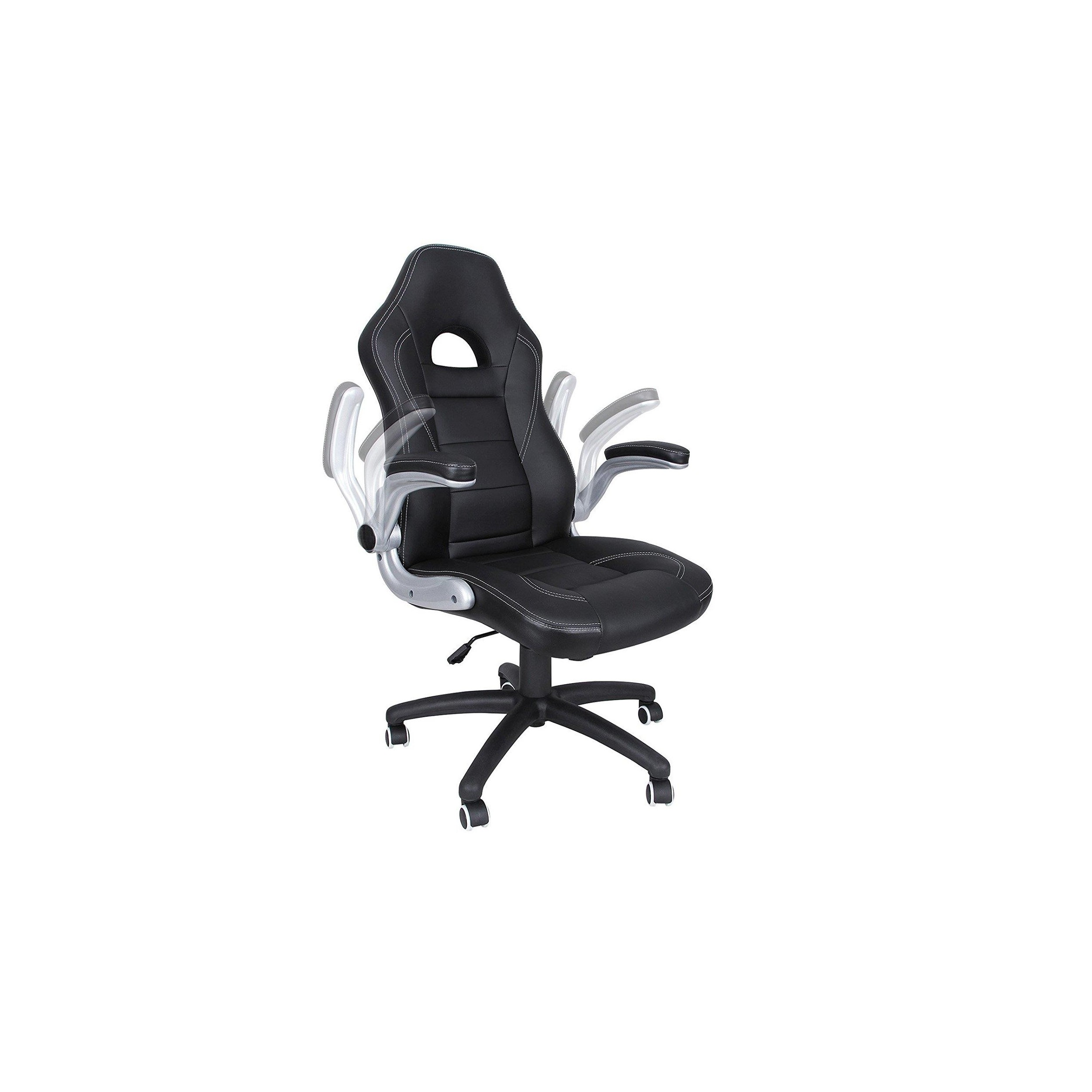 Silla de Oficina DANTE, Grueso Acolchado, Brazos Abatibles, Diseño Deportivo, en Piel Negra