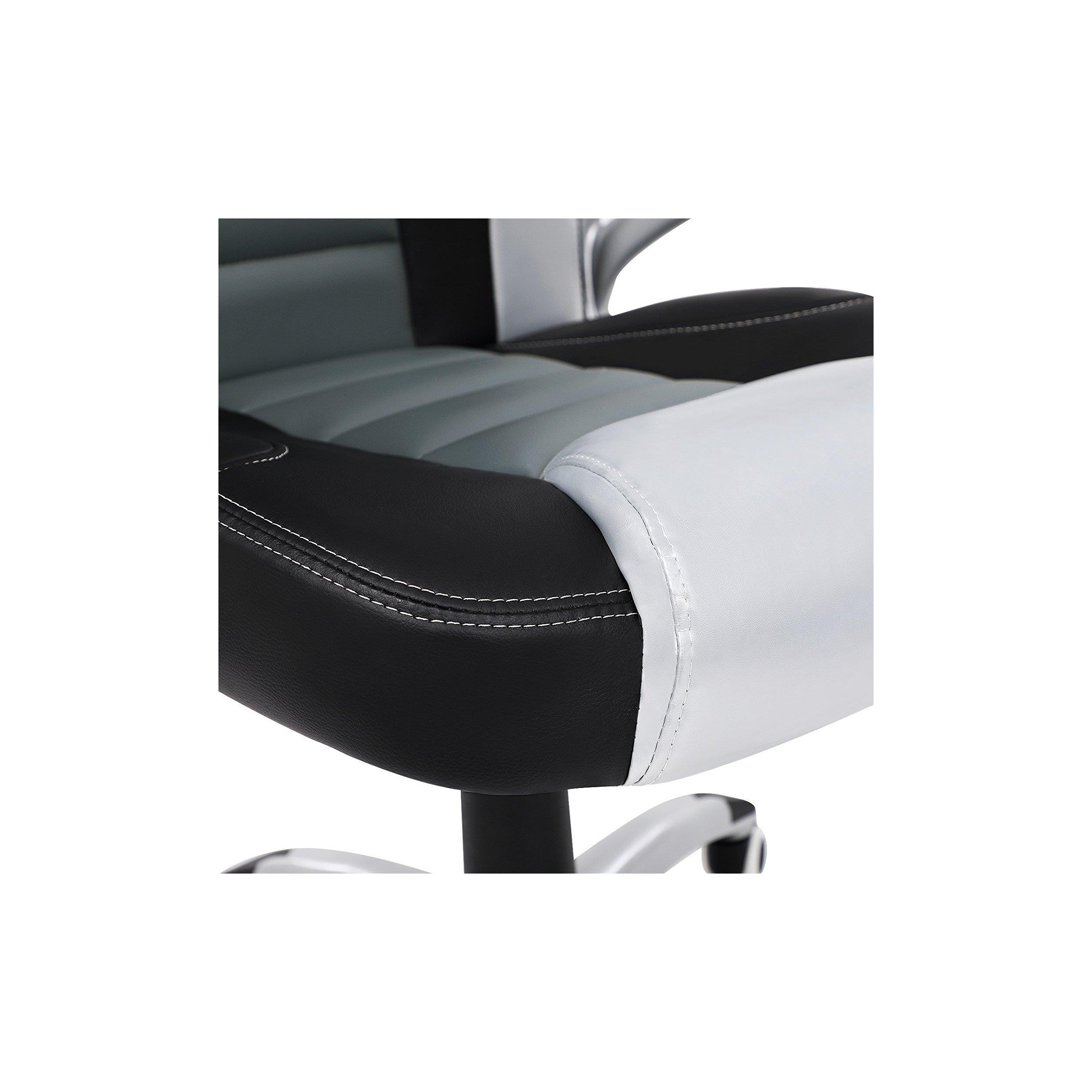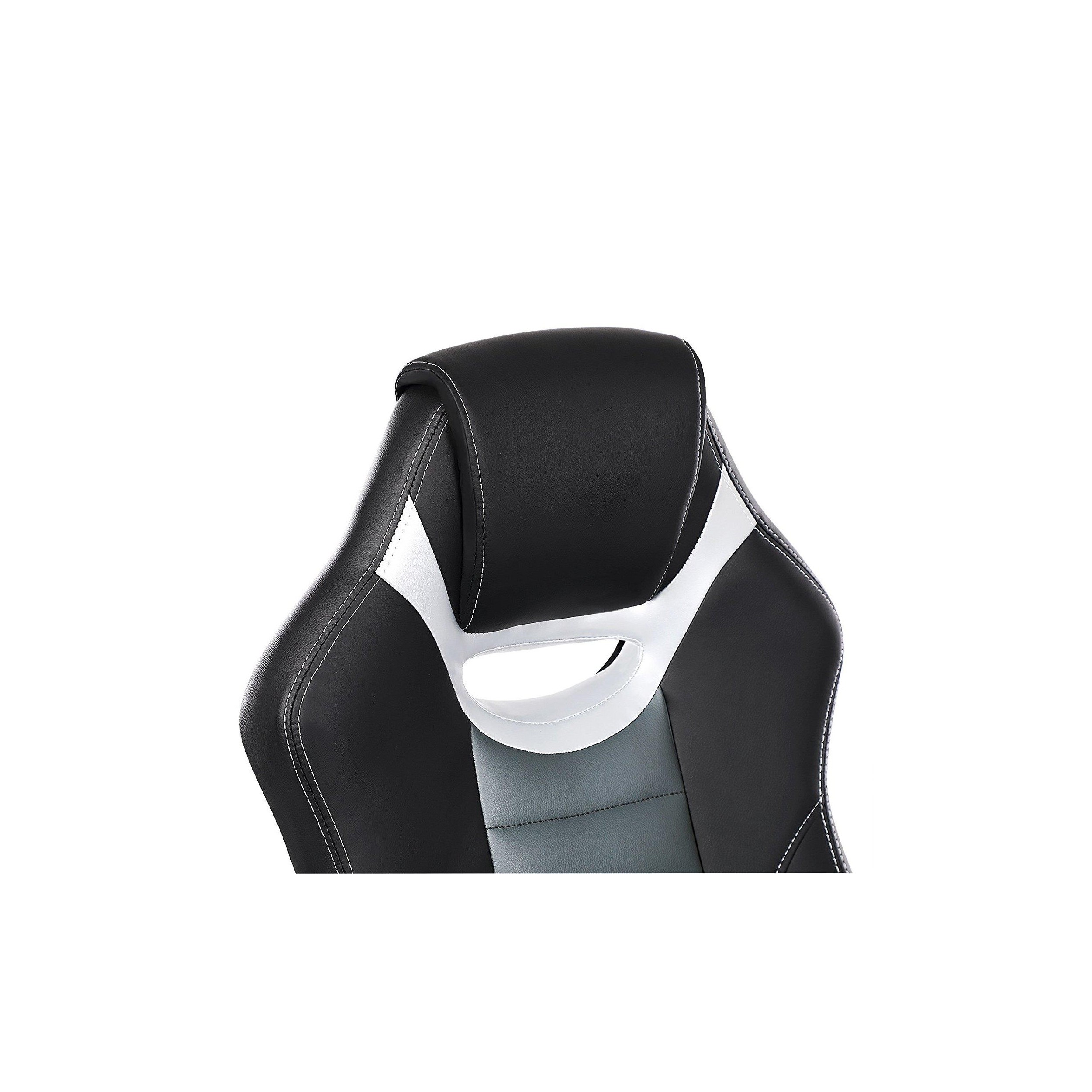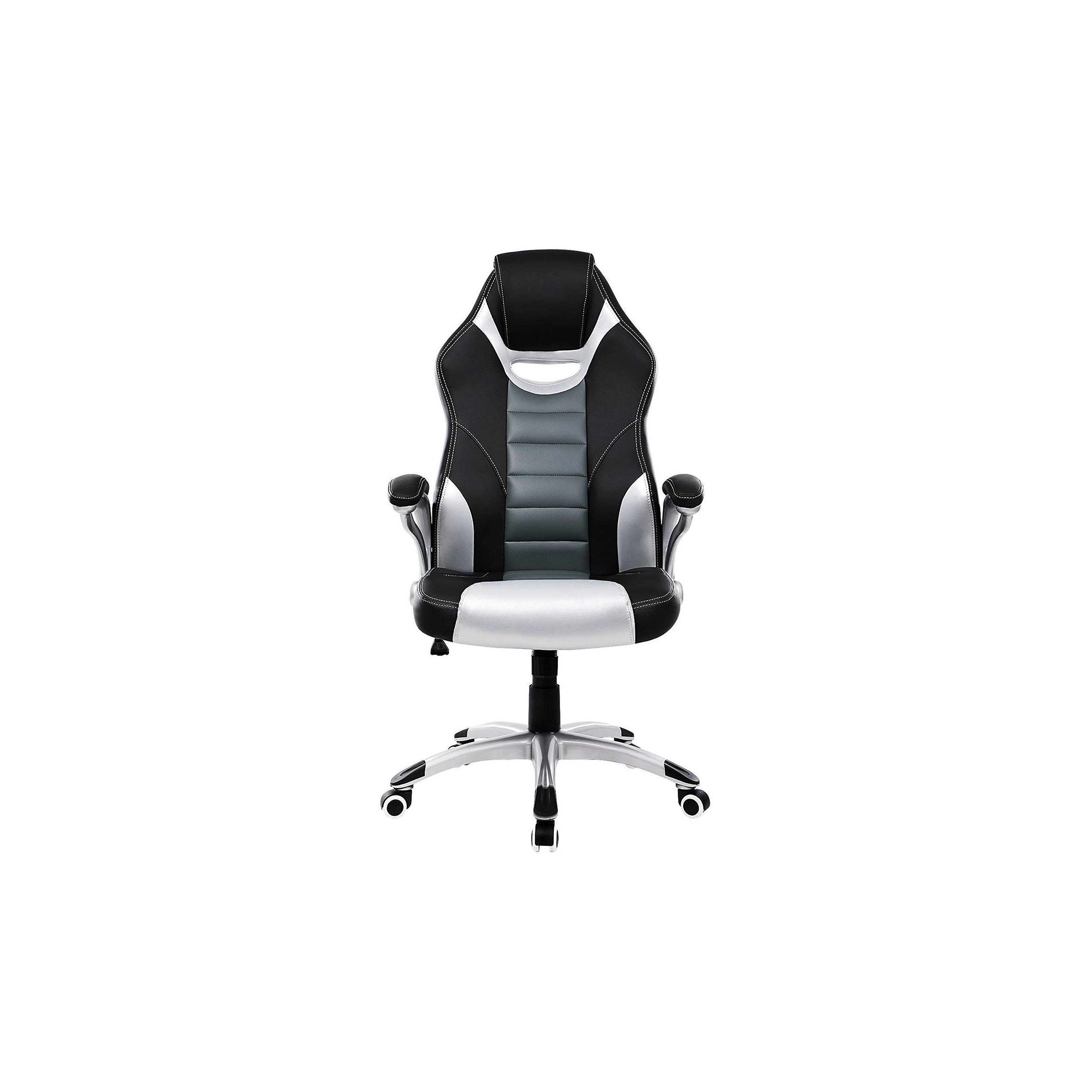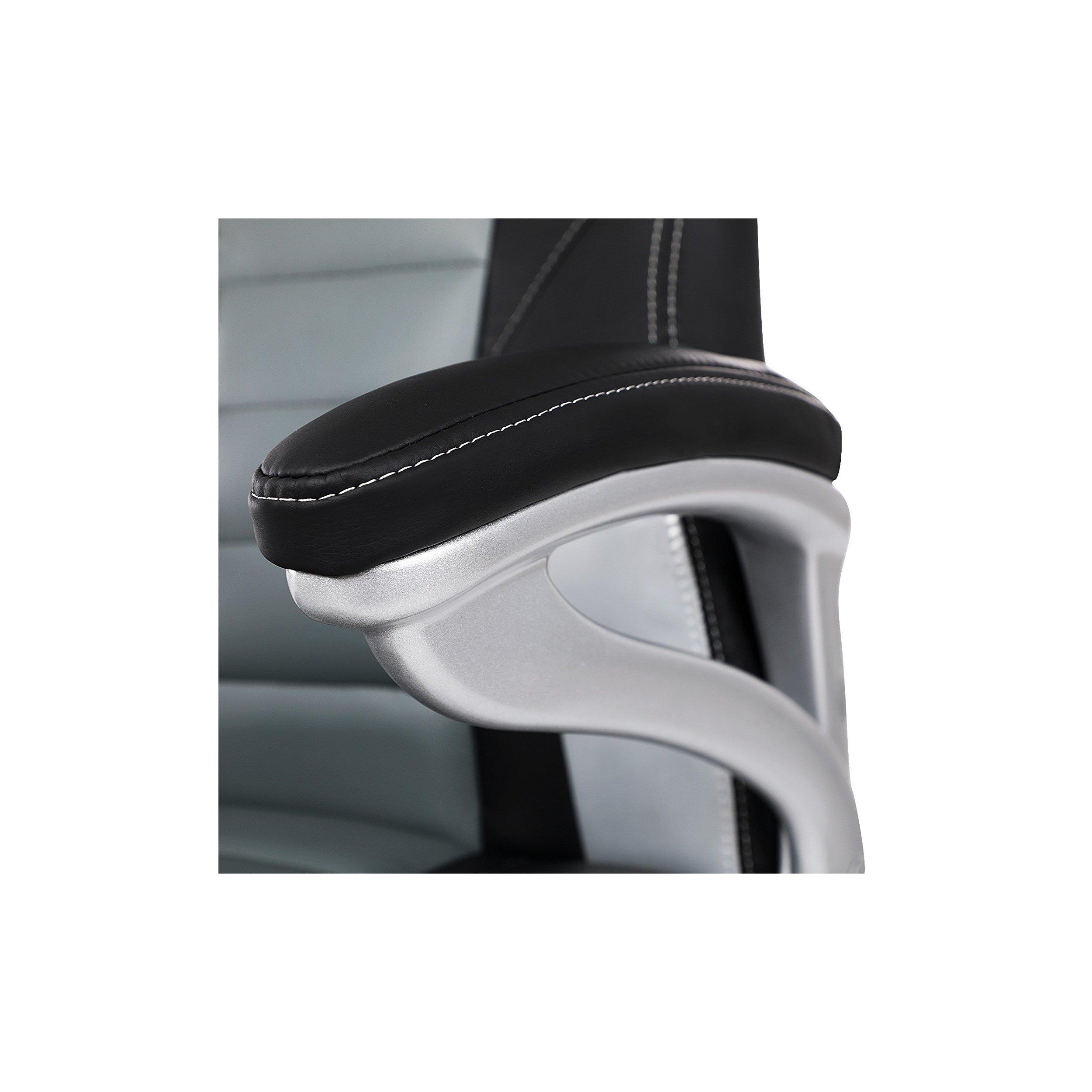 Silla de Oficina OSIRIS, Grueso Acolchado, Diseño Deportivo, en Piel Negra, Gris y Plata