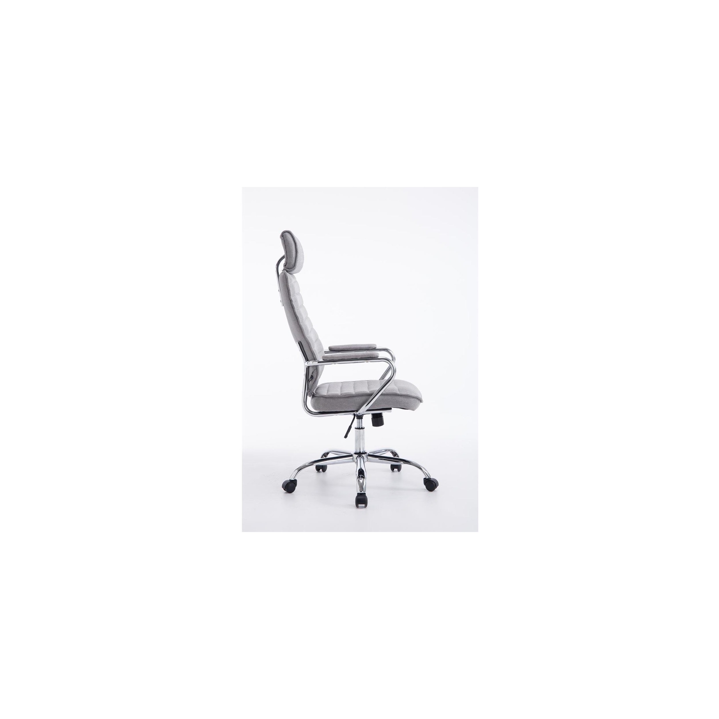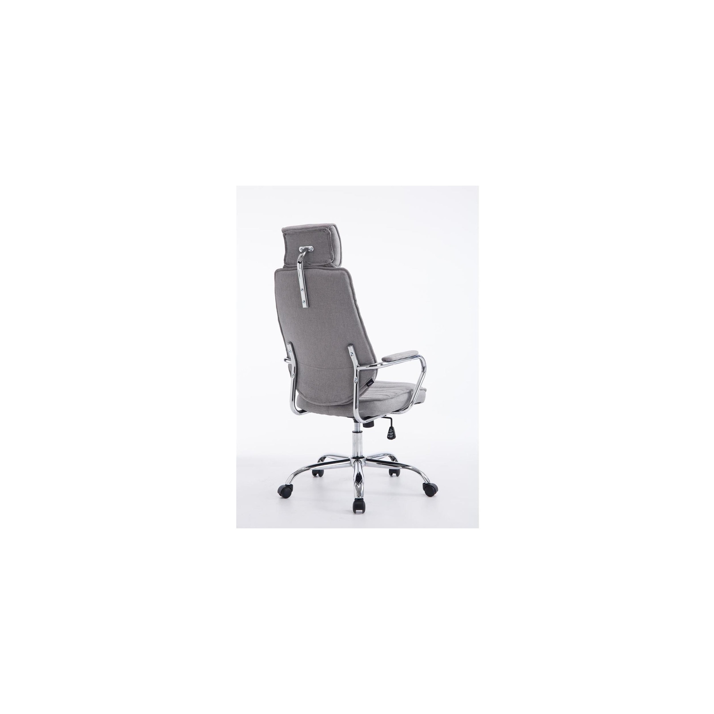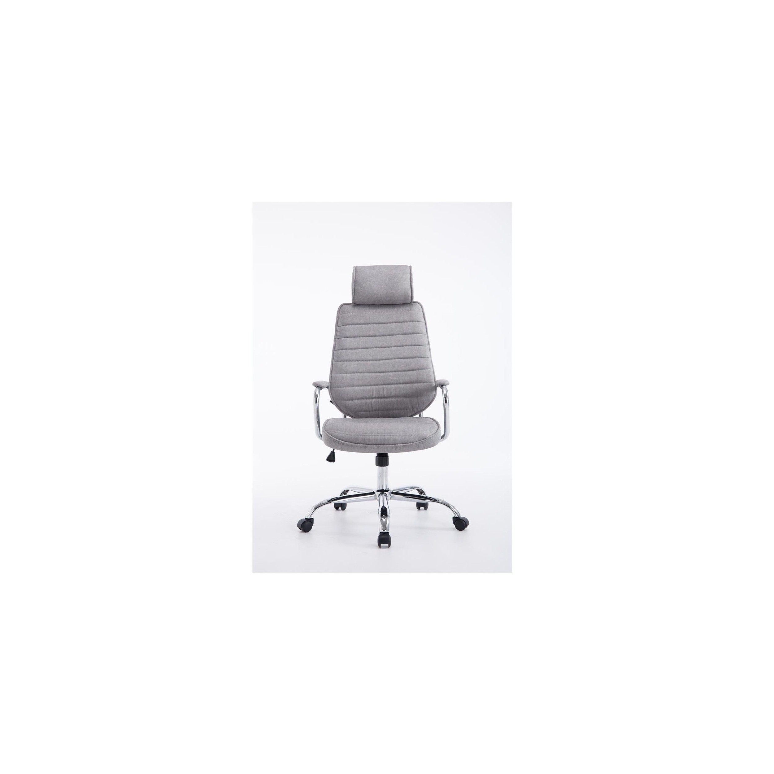 Silla de oficina Ejecutiva modelo RENO TELA. Un modelo fabricado en estructura metálica, con asiento y respaldo acolchados tapizados en tela con costuras. Destacar su gran respaldo y reposabezas integrado.