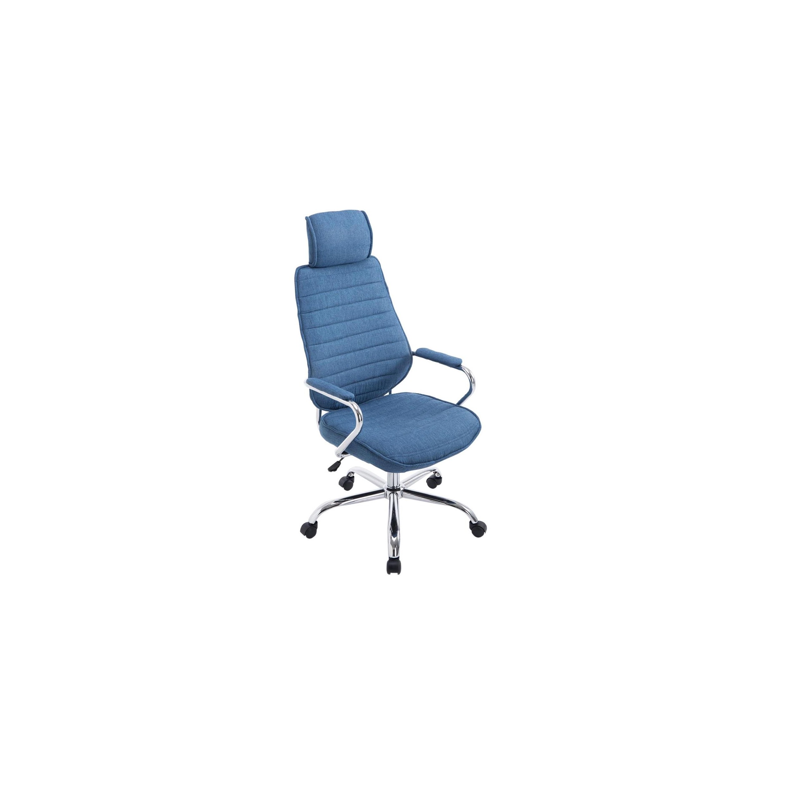 Silla de oficina Ejecutiva modelo RENO TELA. Un modelo fabricado en estructura metálica, con asiento y respaldo acolchados tapizados en tela con costuras. Destacar su gran respaldo y reposabezas integrado.