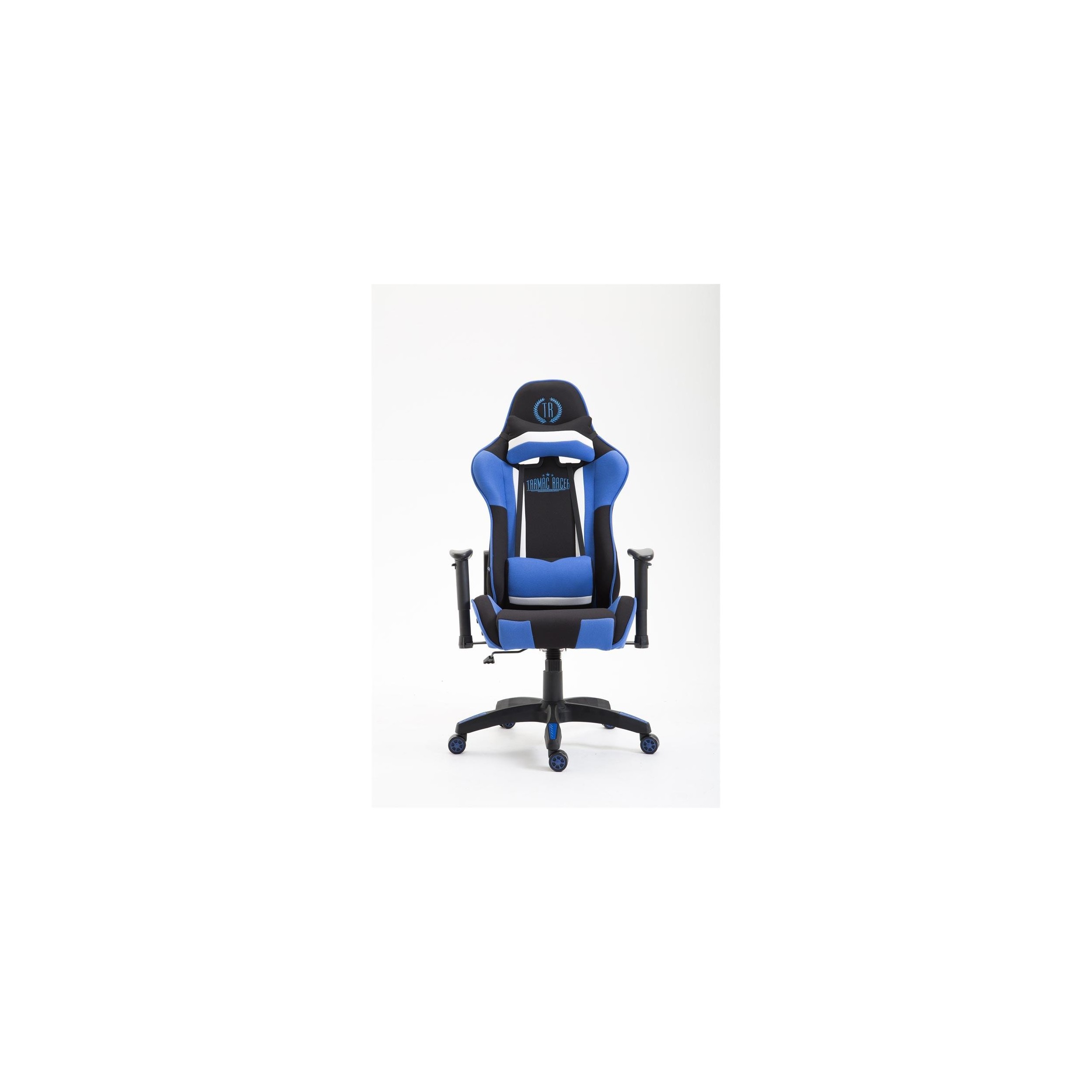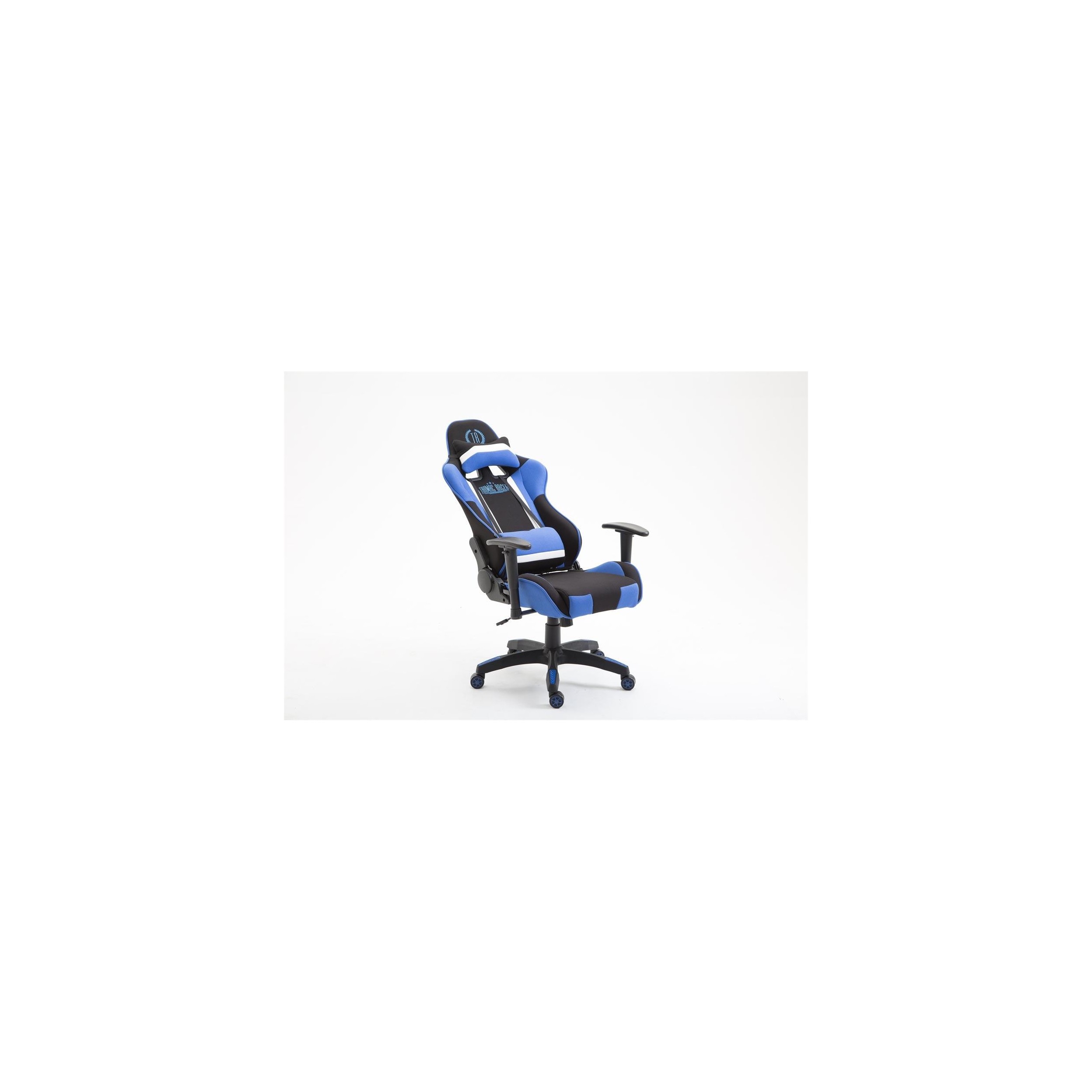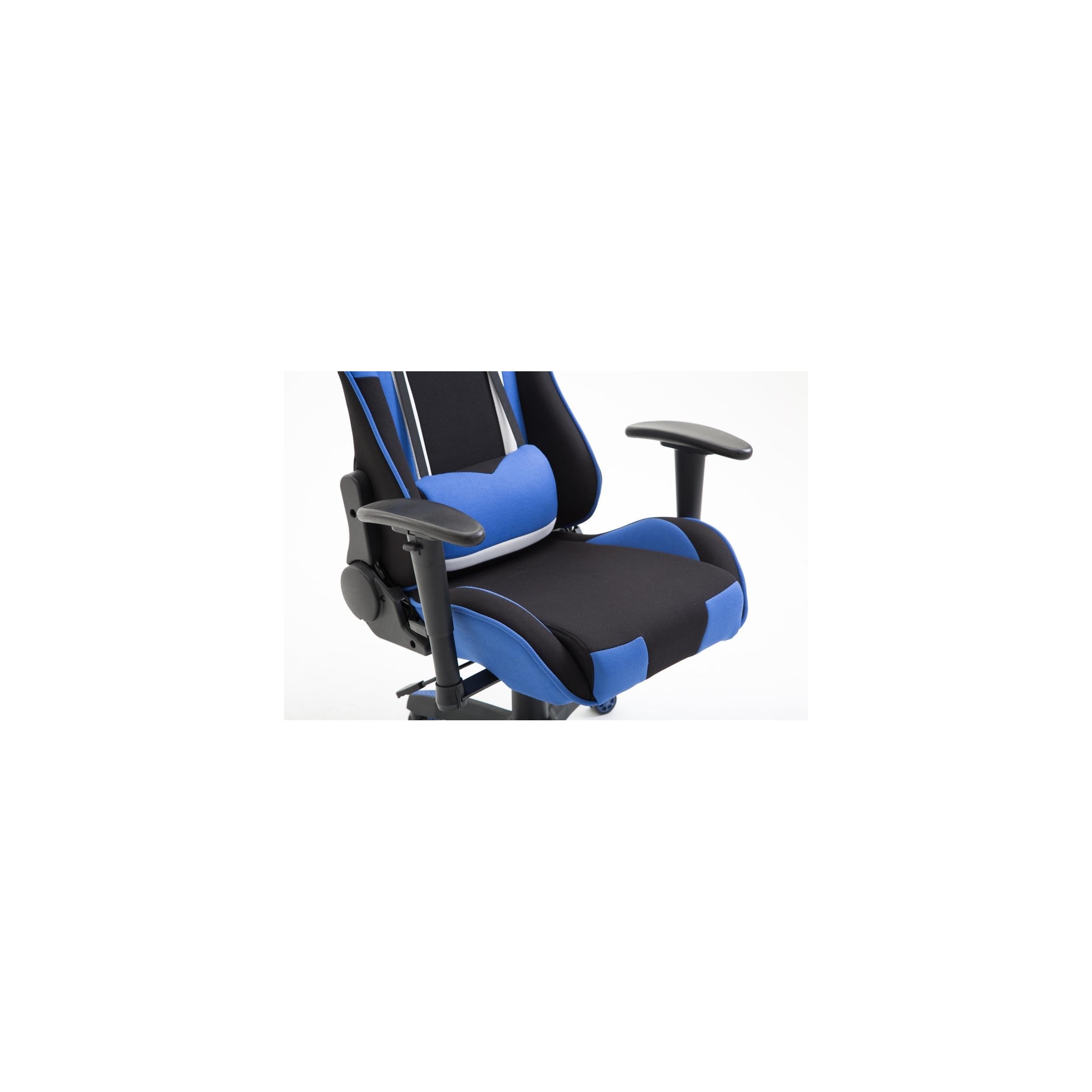 Silla gaming JEMEX TELA, reclinable, con cojines, en color negro/azul