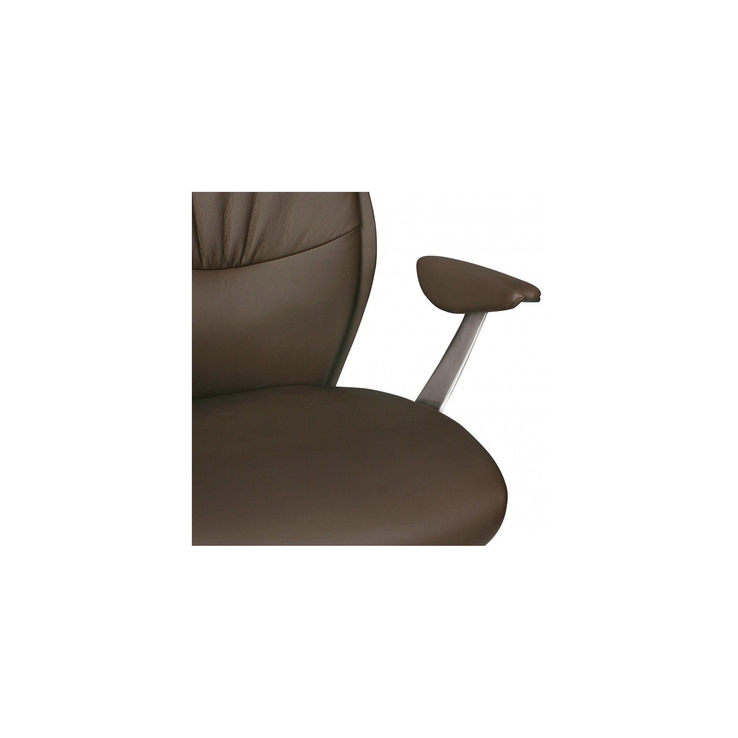 Estamos ante un sillón que ofrece confort absoluto al usuario. Su diseño ergonómico se completa con el grueso y suave acolchado que dispone tanto en asiento como en su alto respaldo. También cabe destacar los elegantes reposabrazos de aluminio con inserciones de cuero, perfectos para poder relajar los brazos y los hombros.
