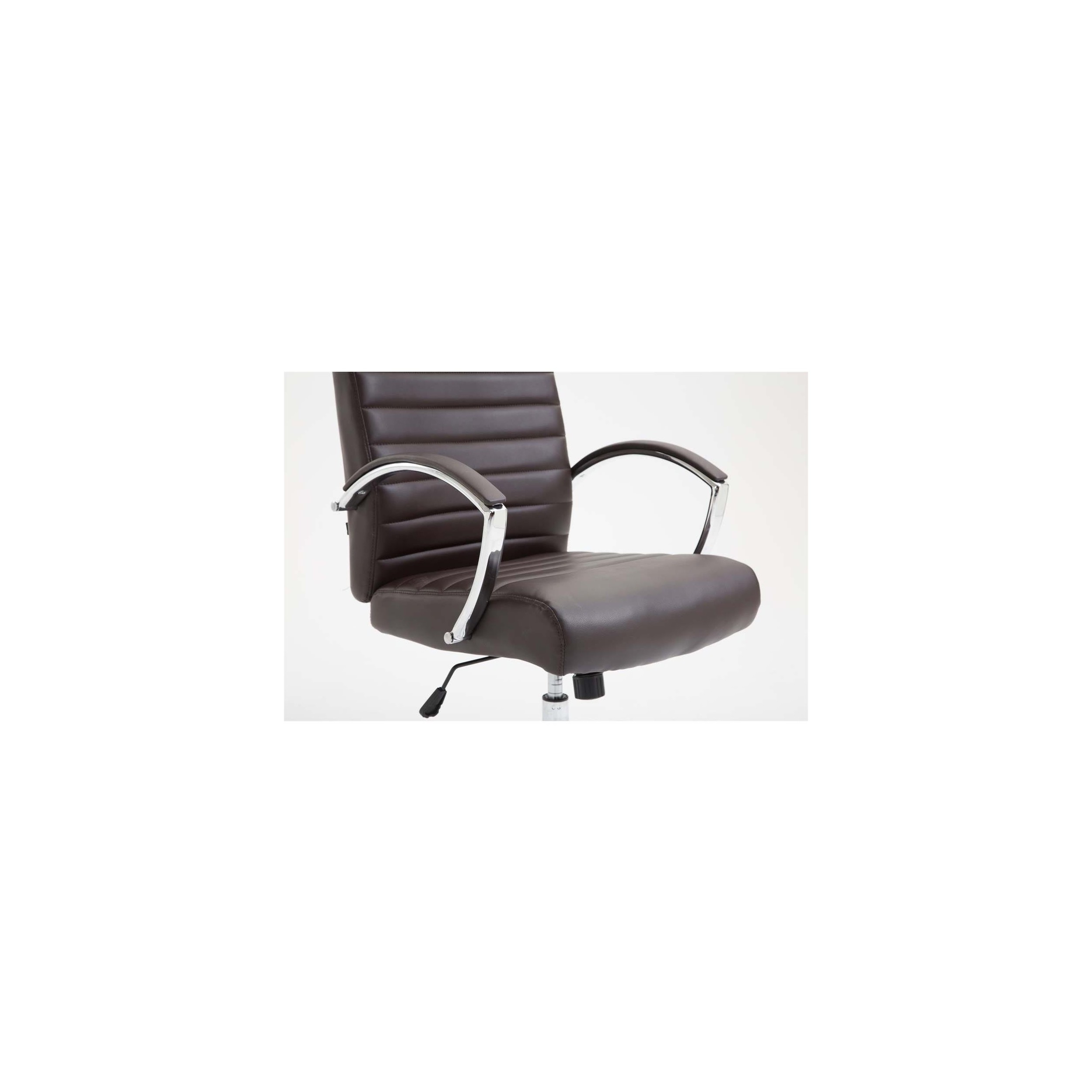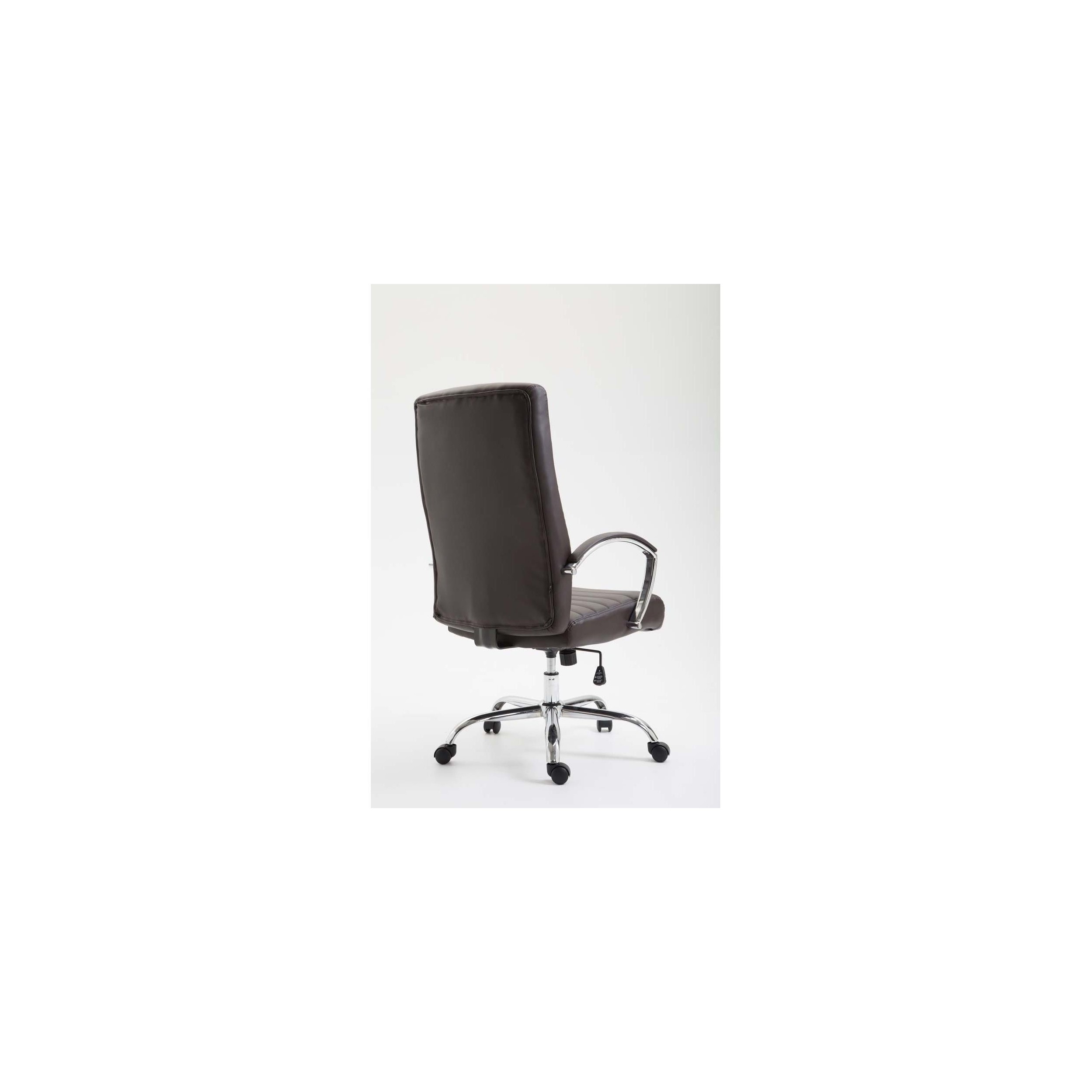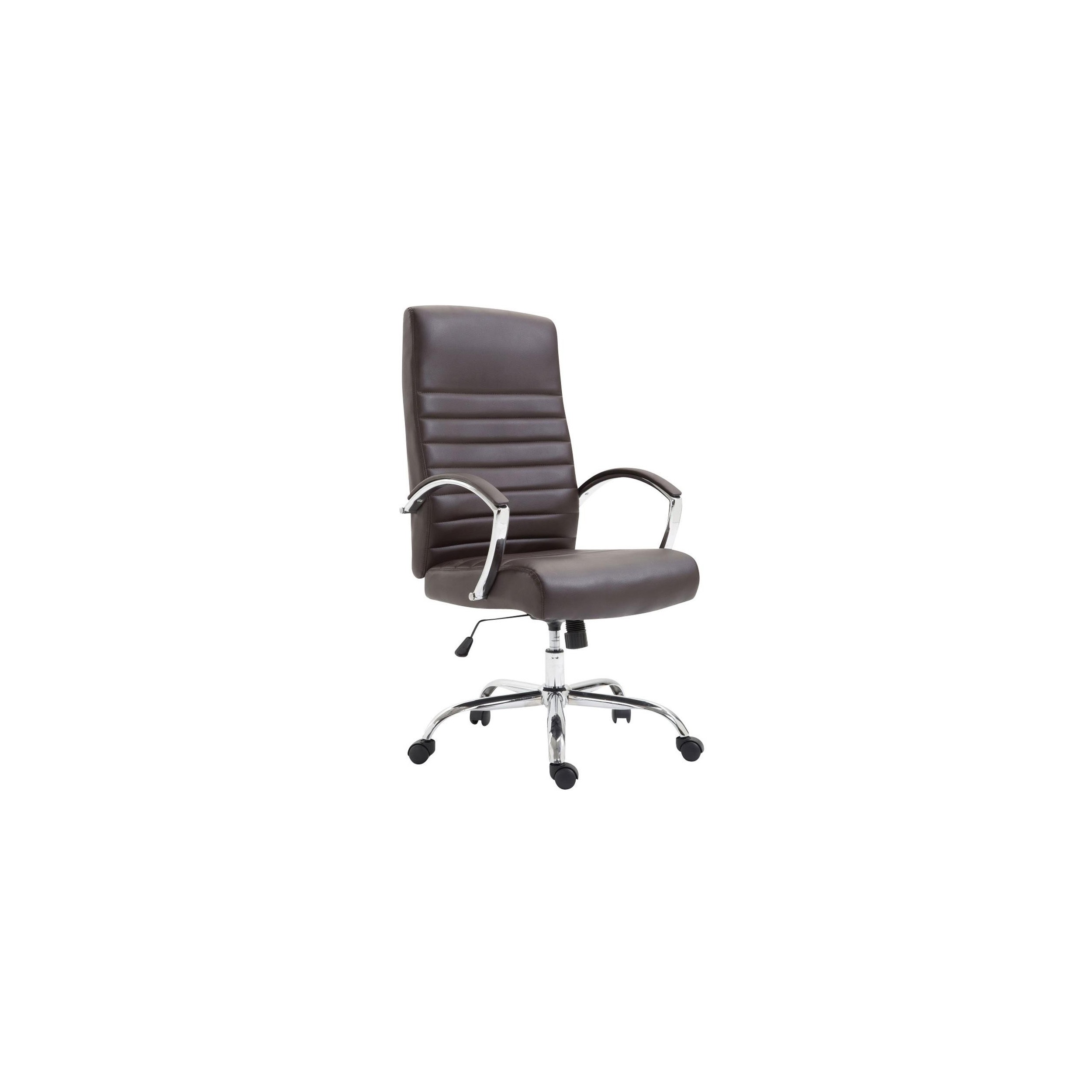 Silla de oficina de grueso acolchado tapizado en piel sintética, con mecanismo de balanceo base metálica.