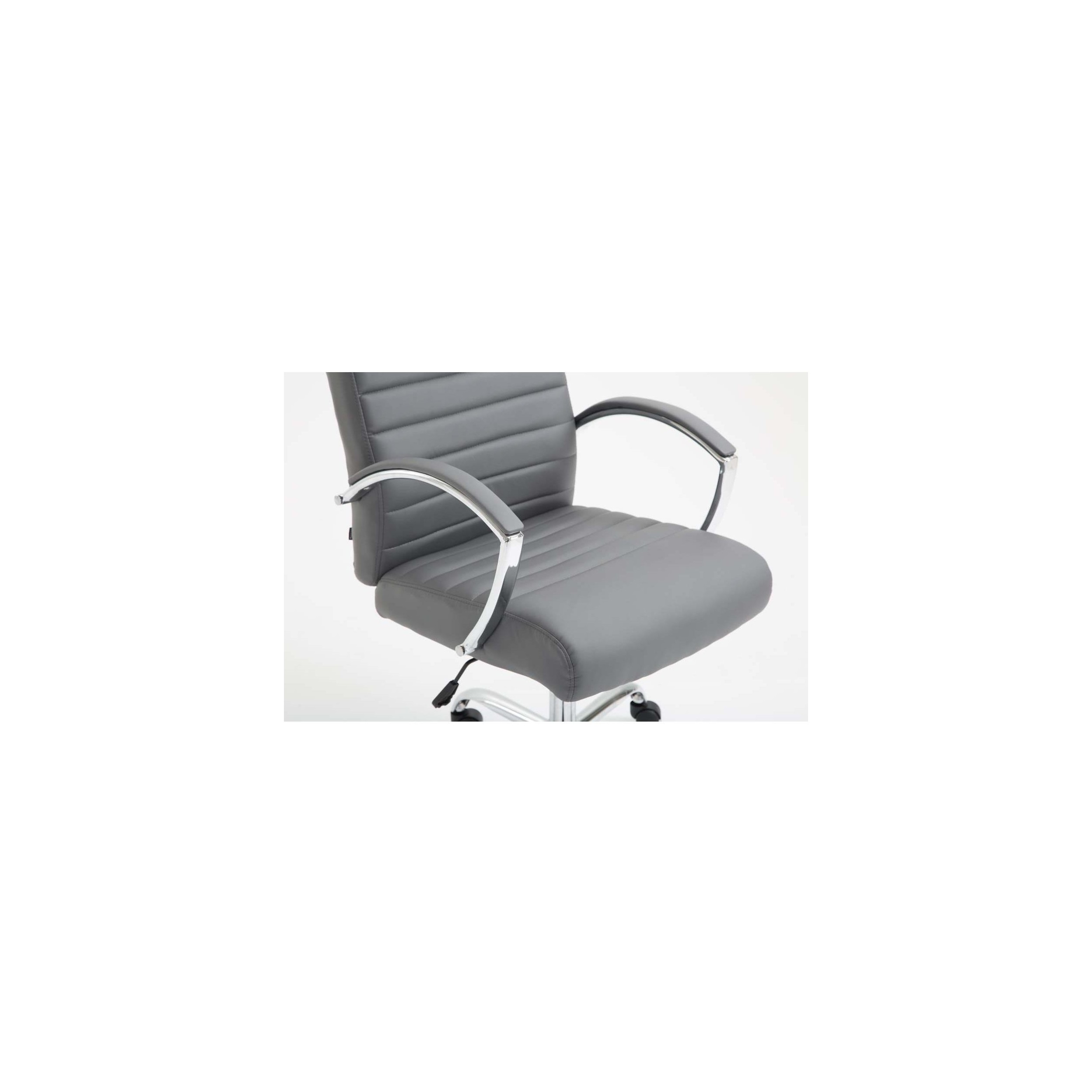 Silla de oficina de grueso acolchado tapizado en piel sintética, con mecanismo de balanceo base metálica.