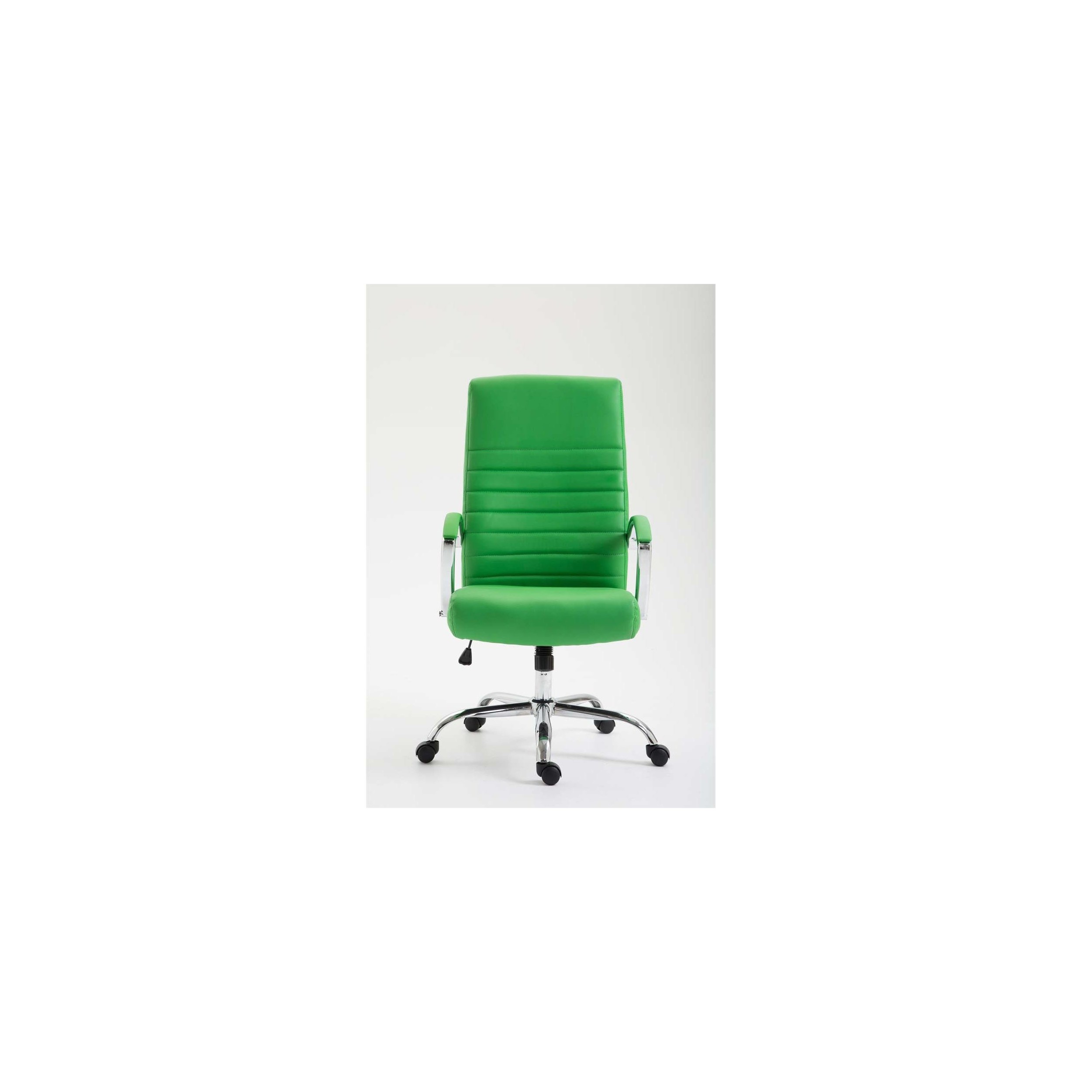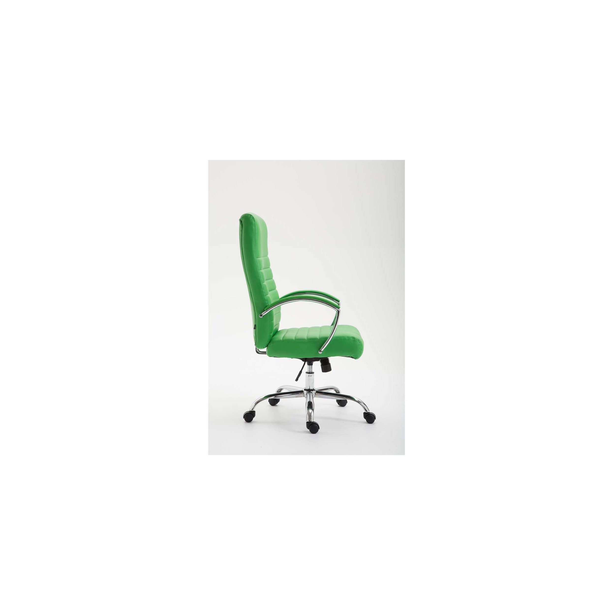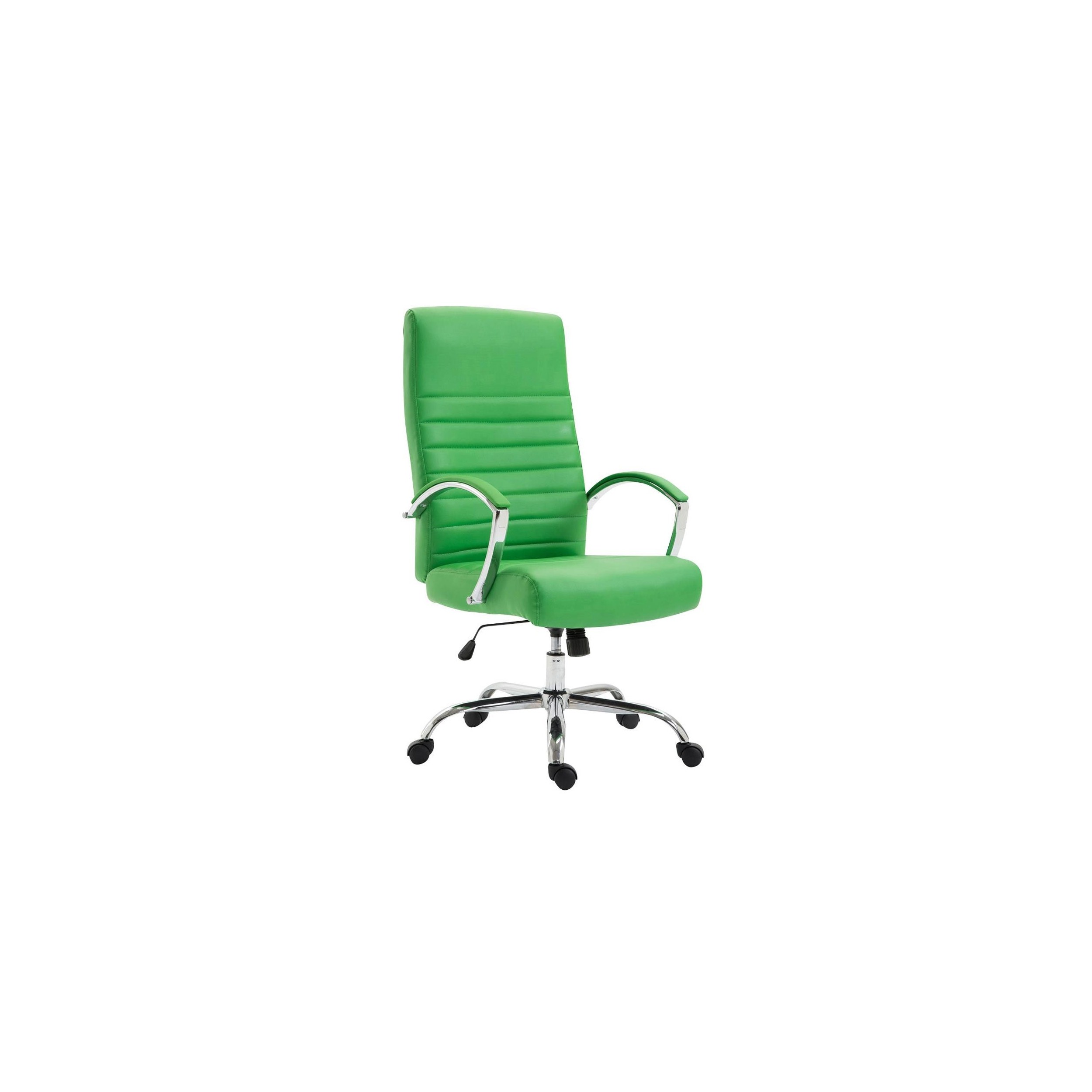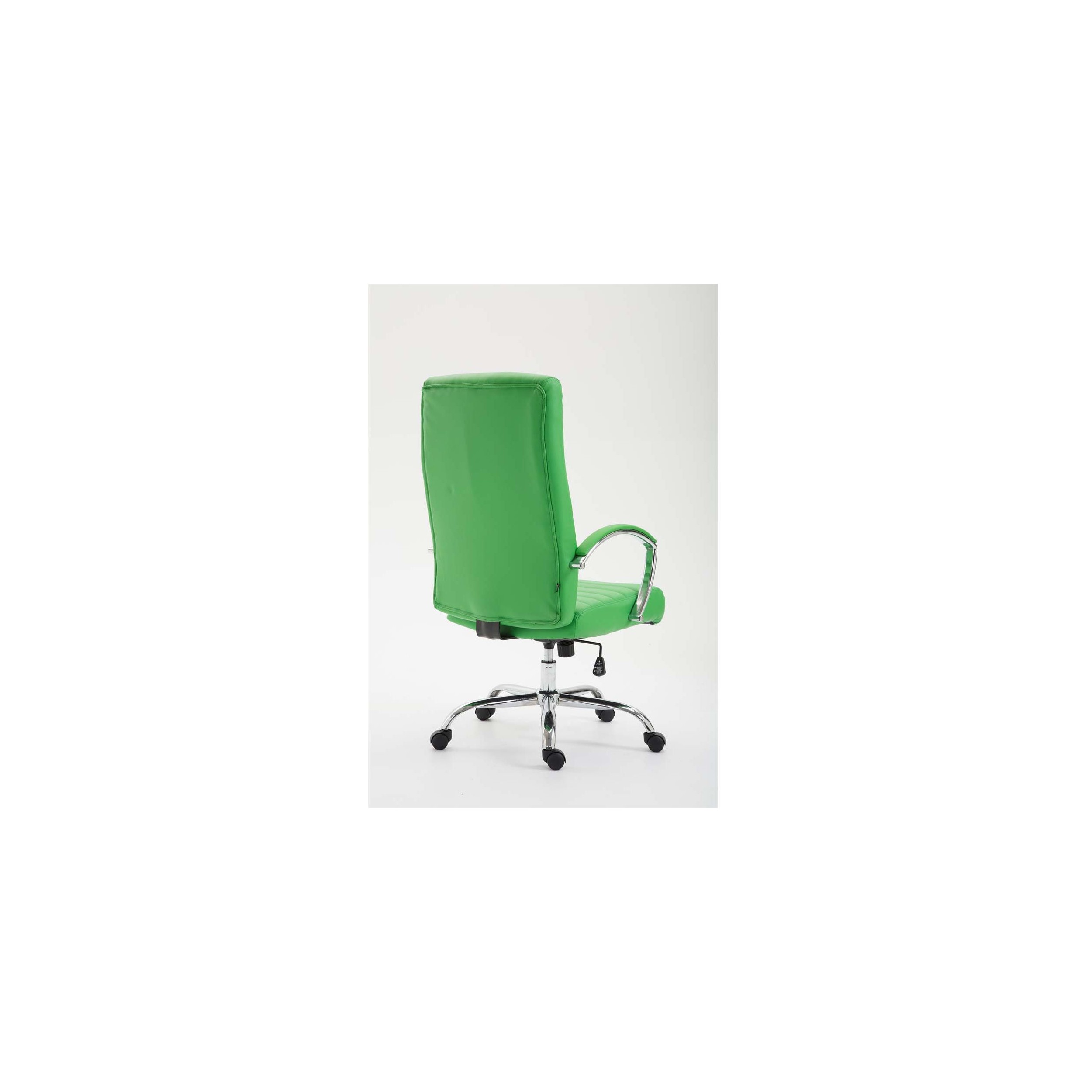 Silla de oficina de grueso acolchado tapizado en piel sintética, con mecanismo de balanceo base metálica.