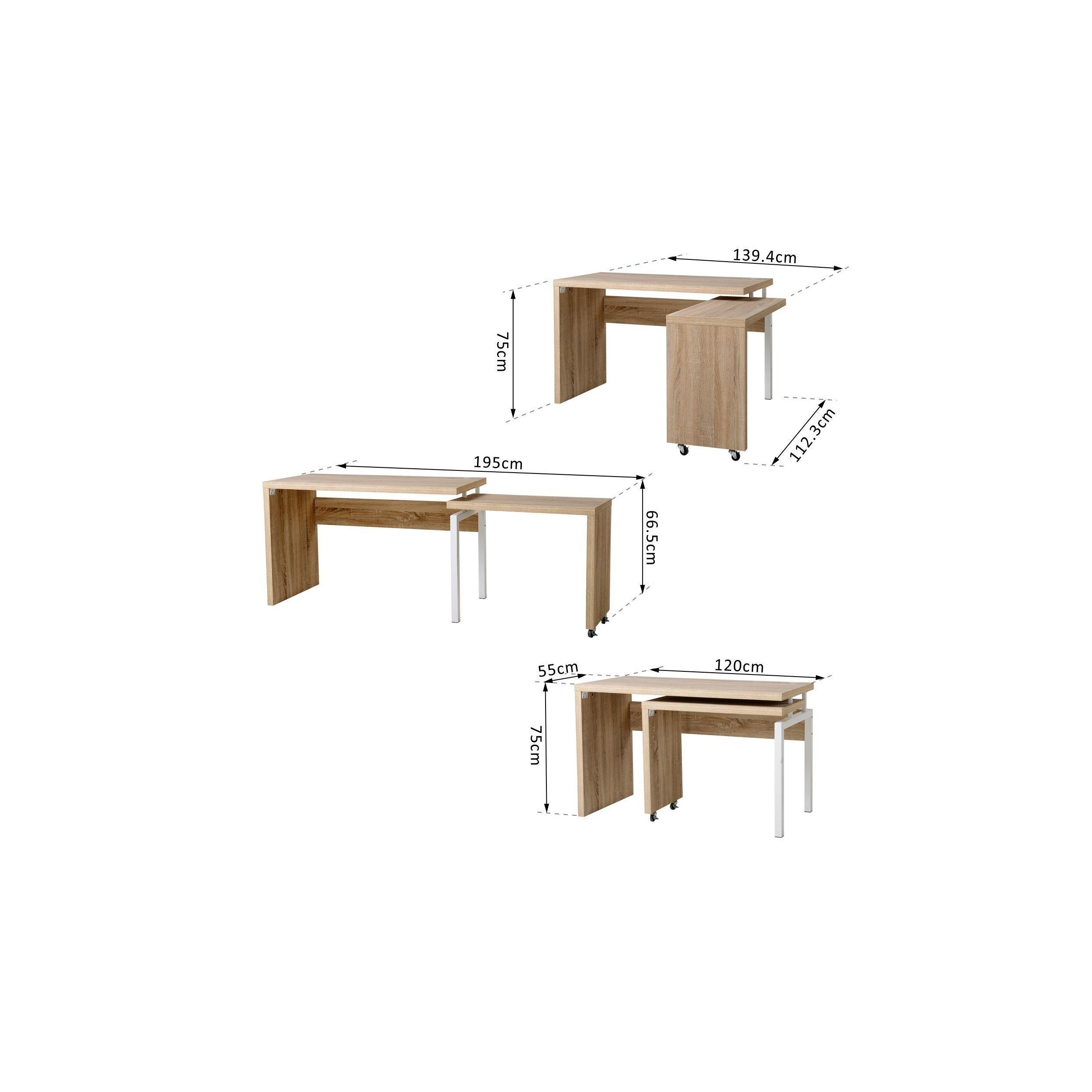 Mesa de Ordenador JATEK, Extensible, Estructura de Metal y Madera color Roble