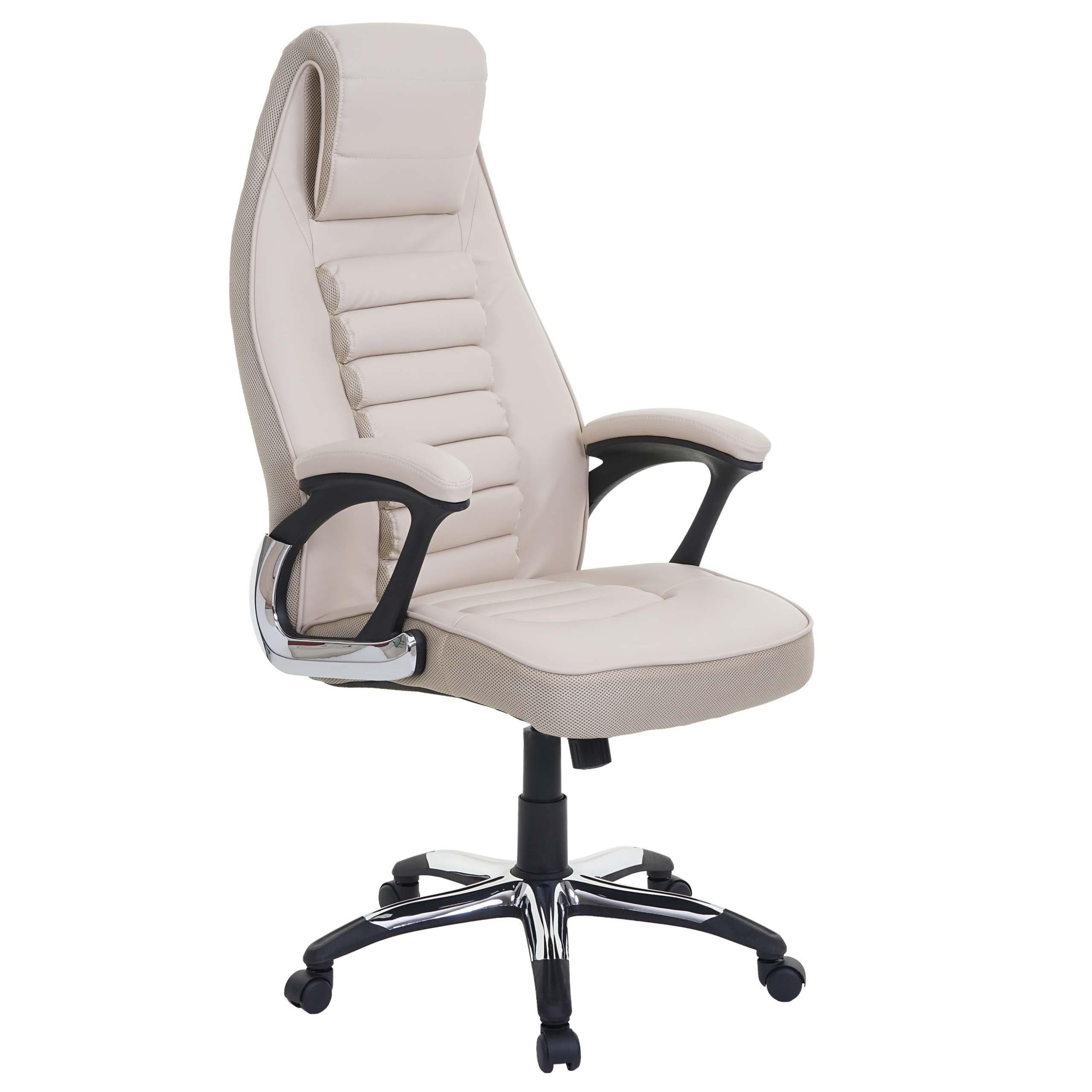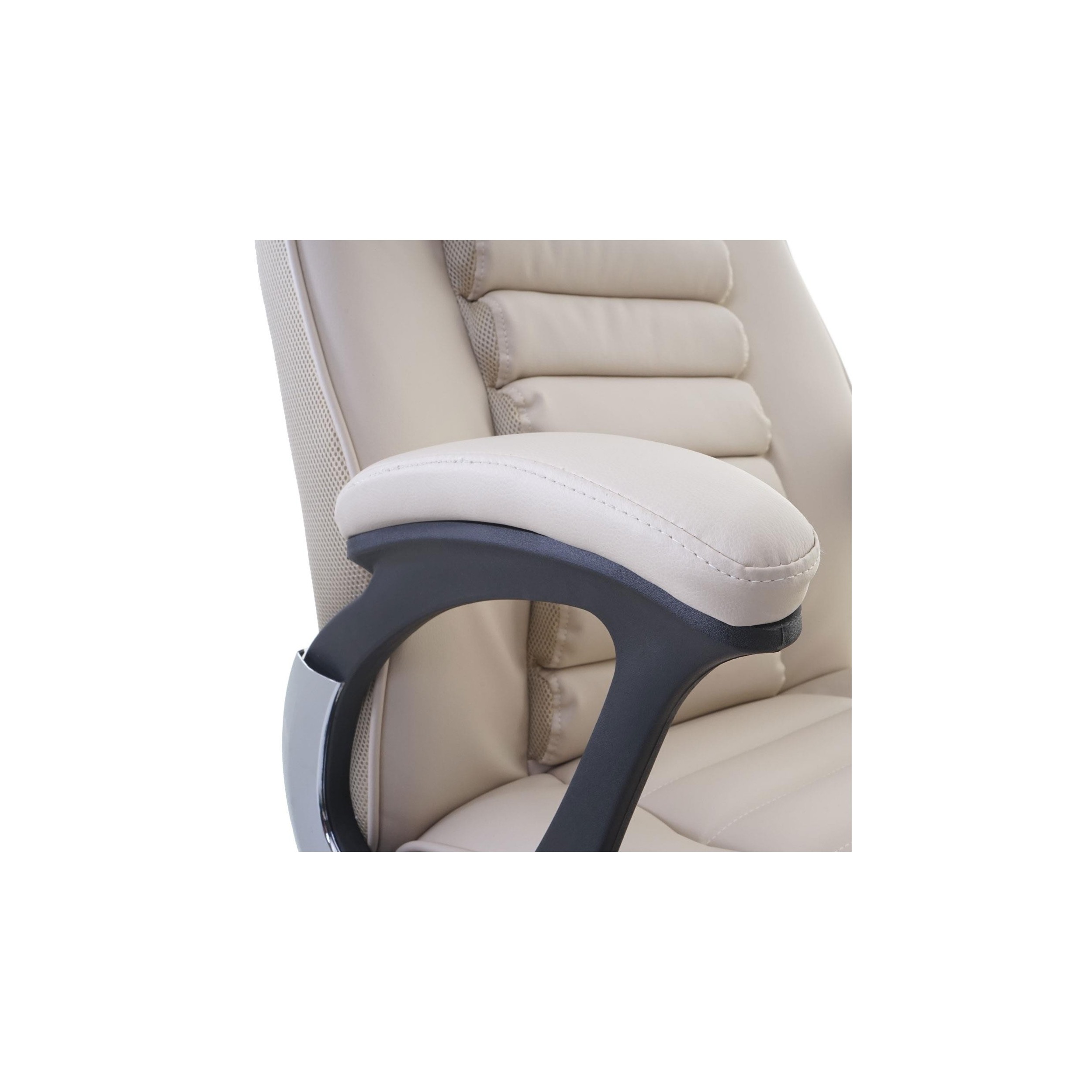 Confortable silla de oficina de grueso acolchado tapizado en piel sintética con mecanismo basculante de balanceo.