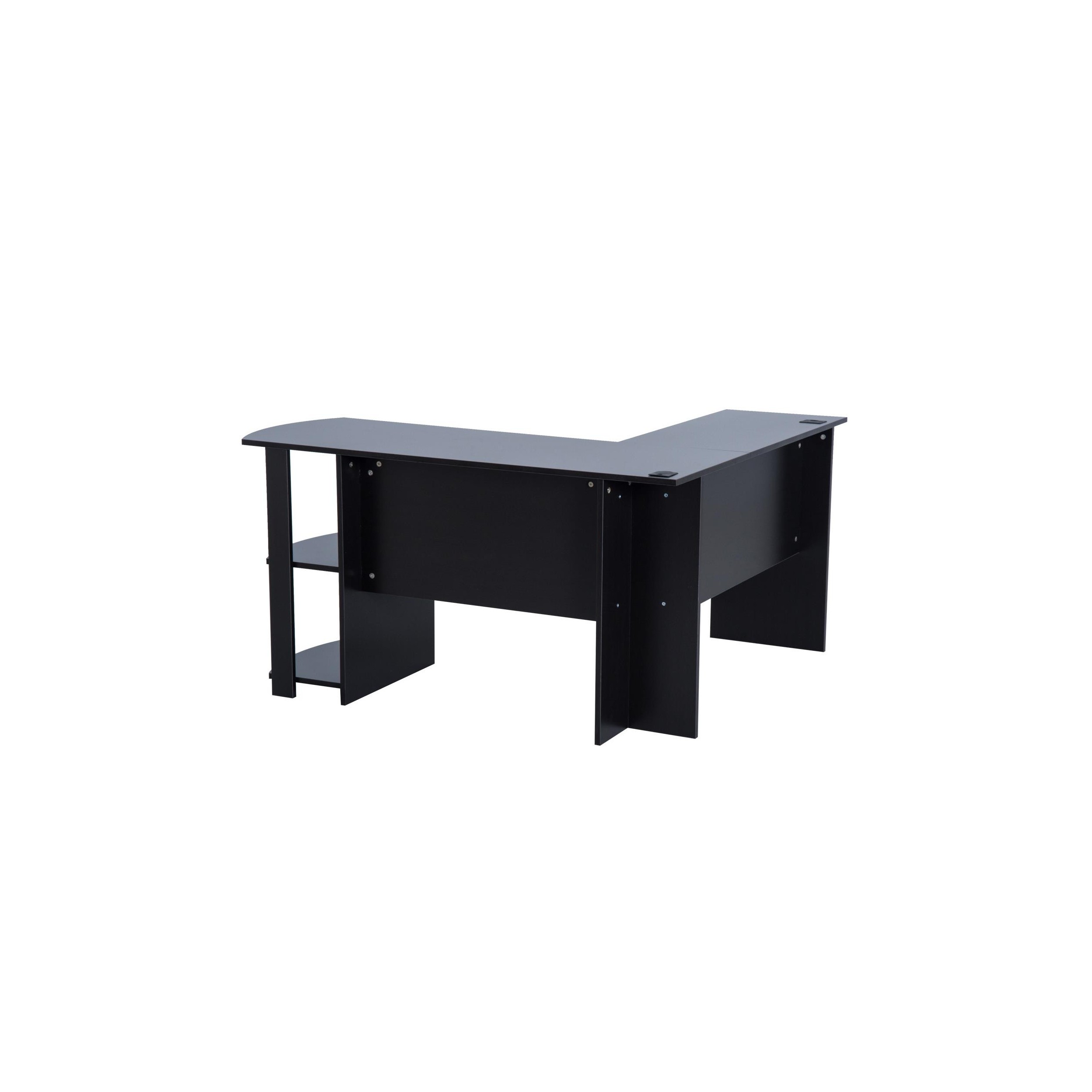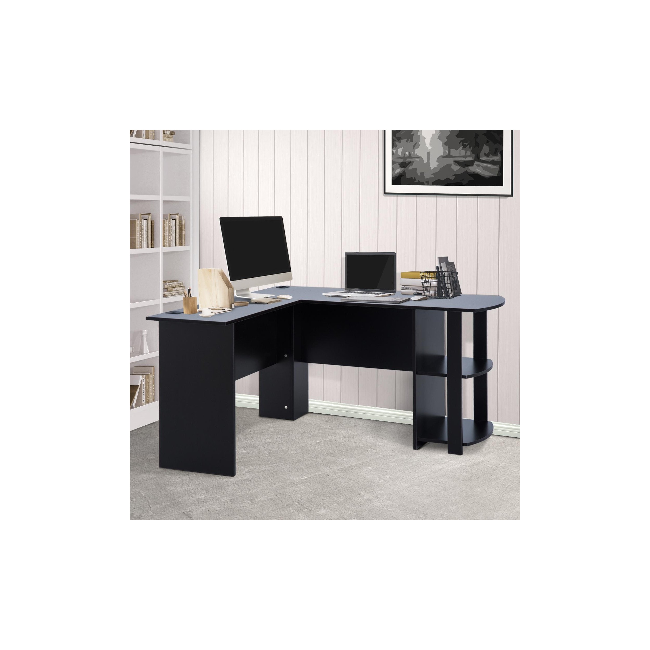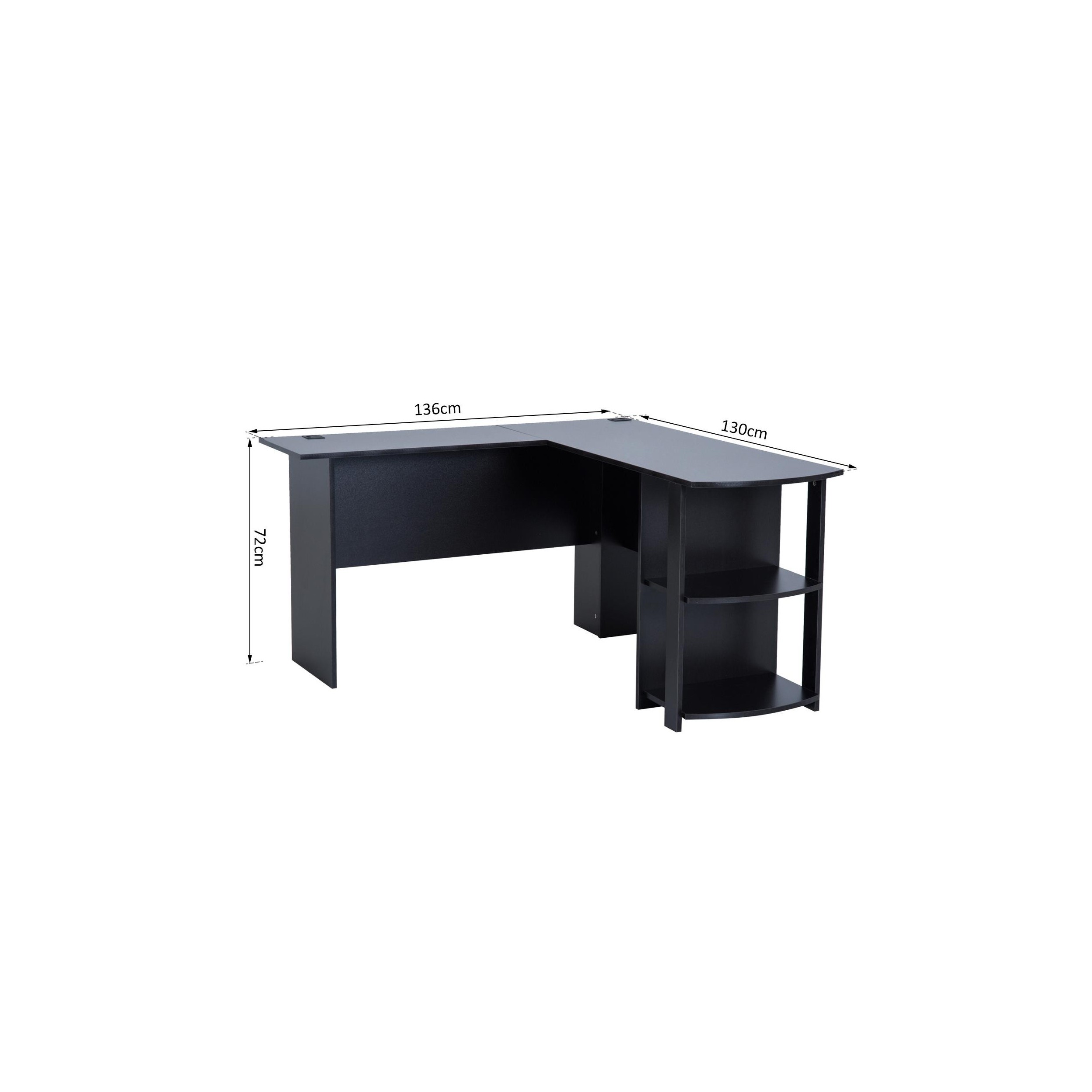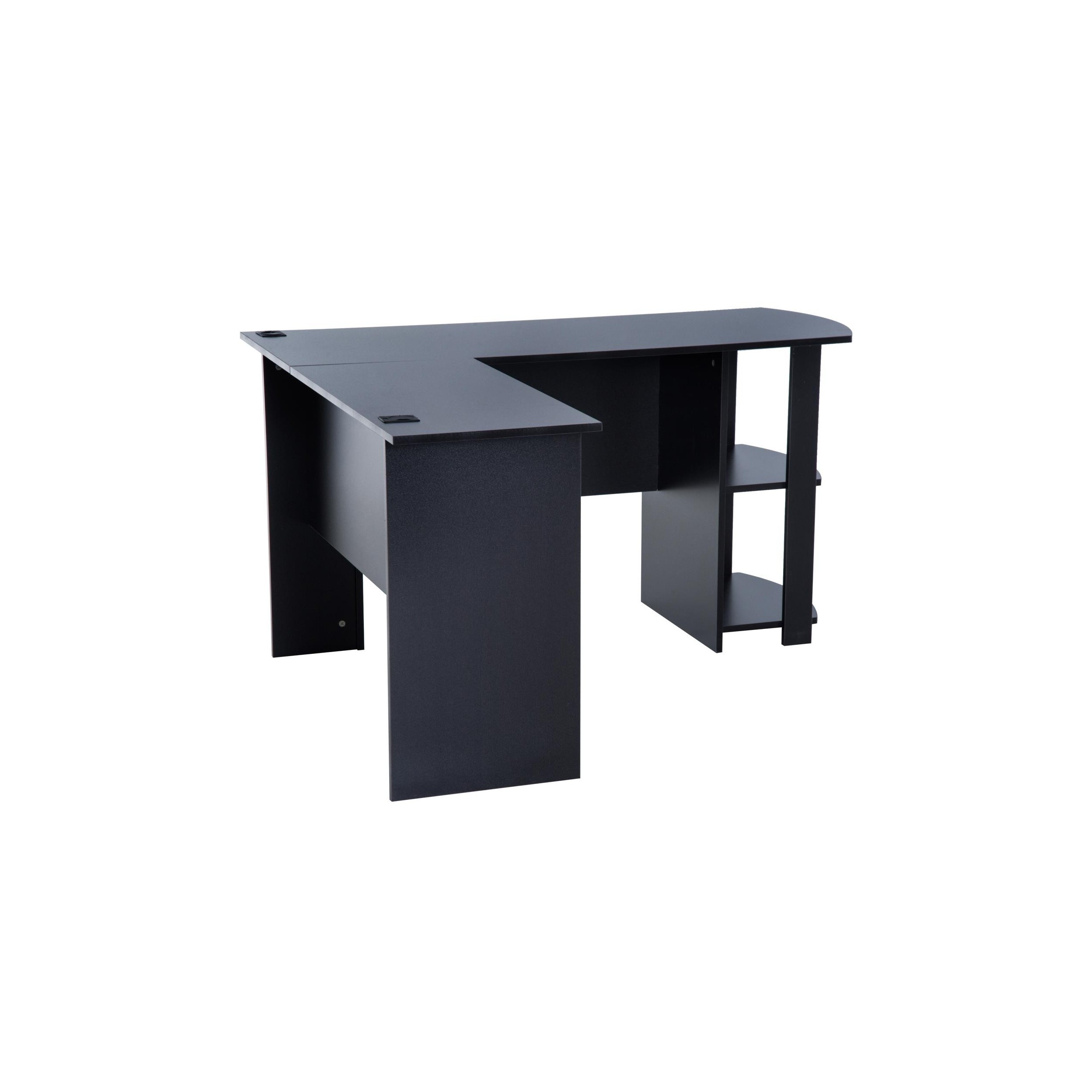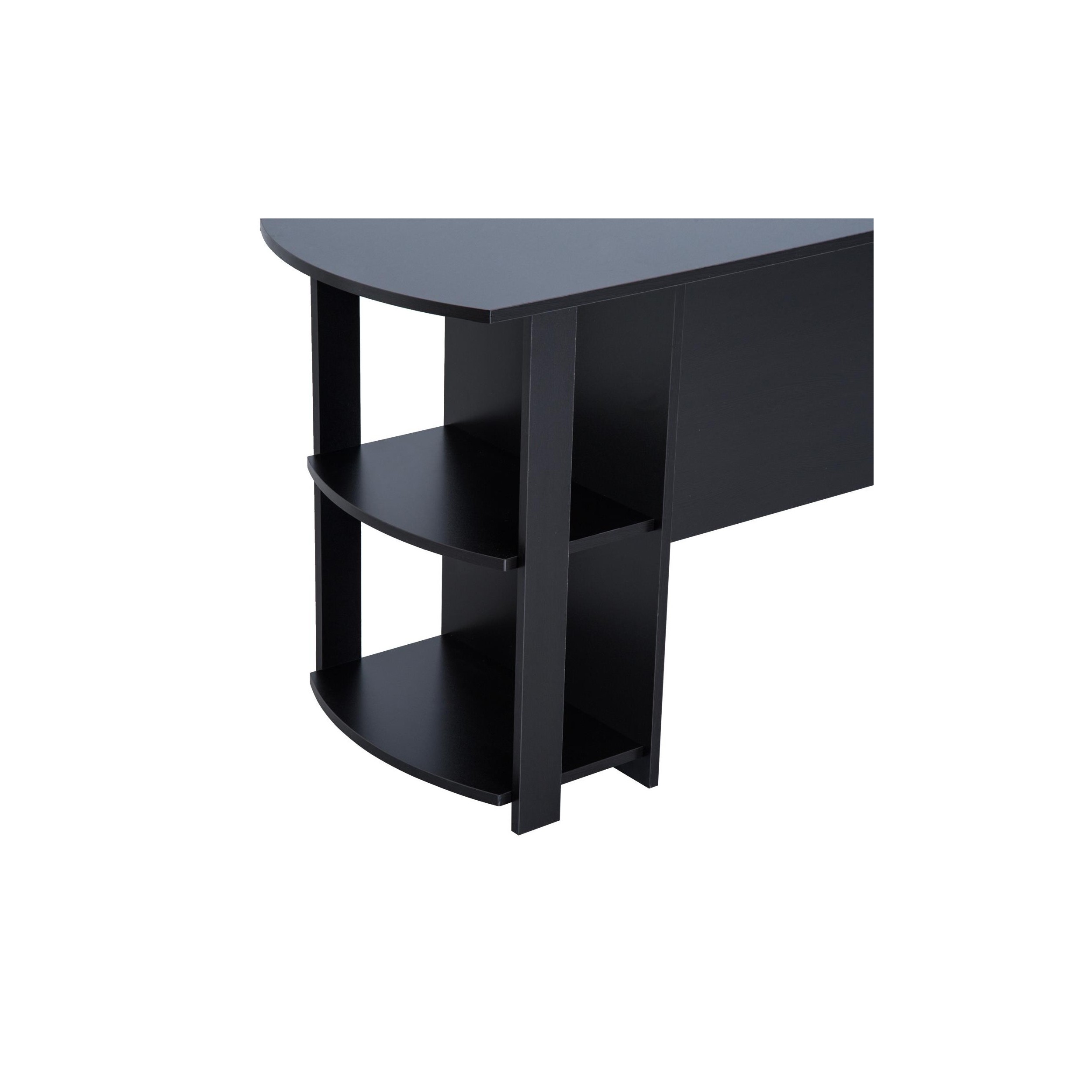 Mesa de Oficina DAVEN, 136x130x72 cm, con Estantes, en Madera color Negro
