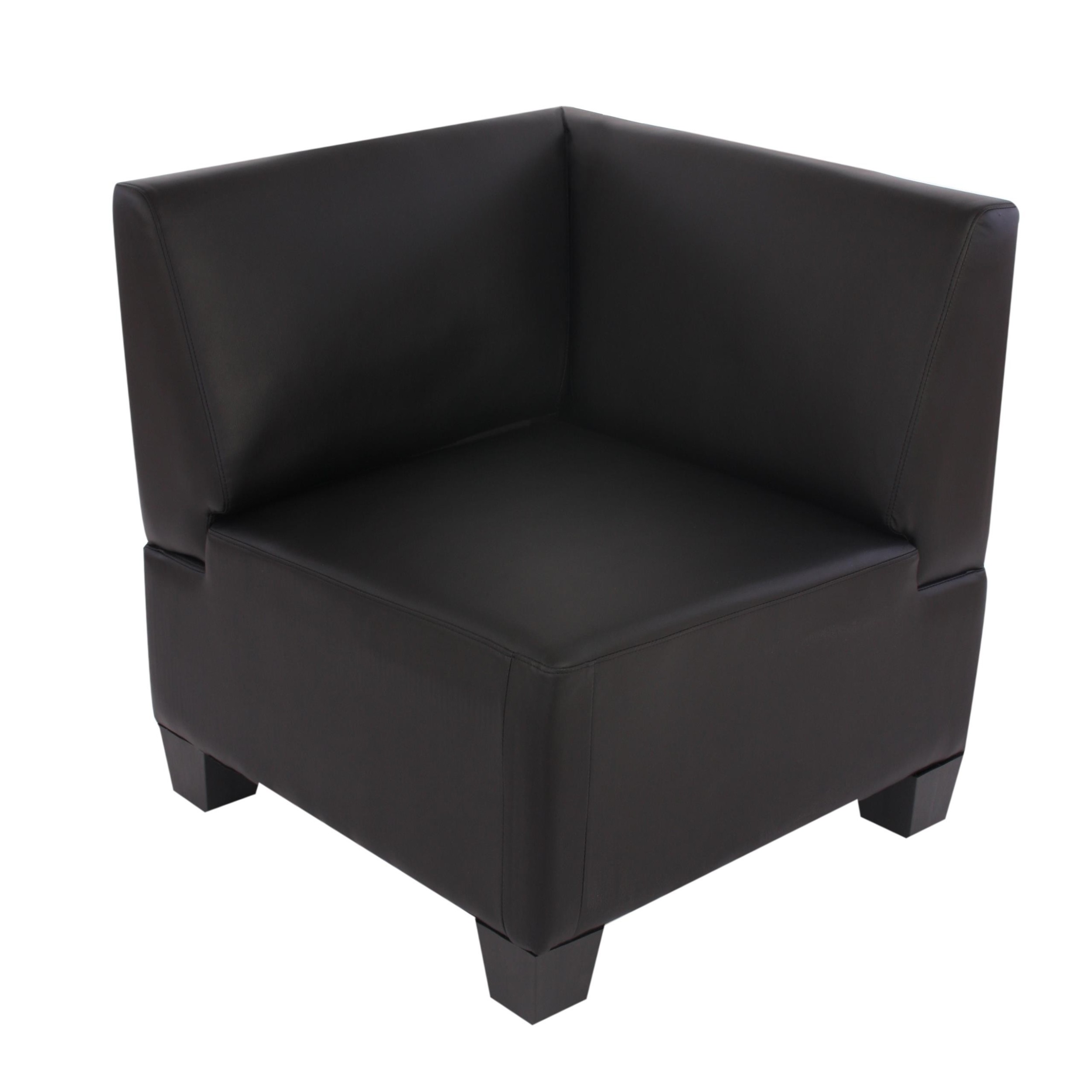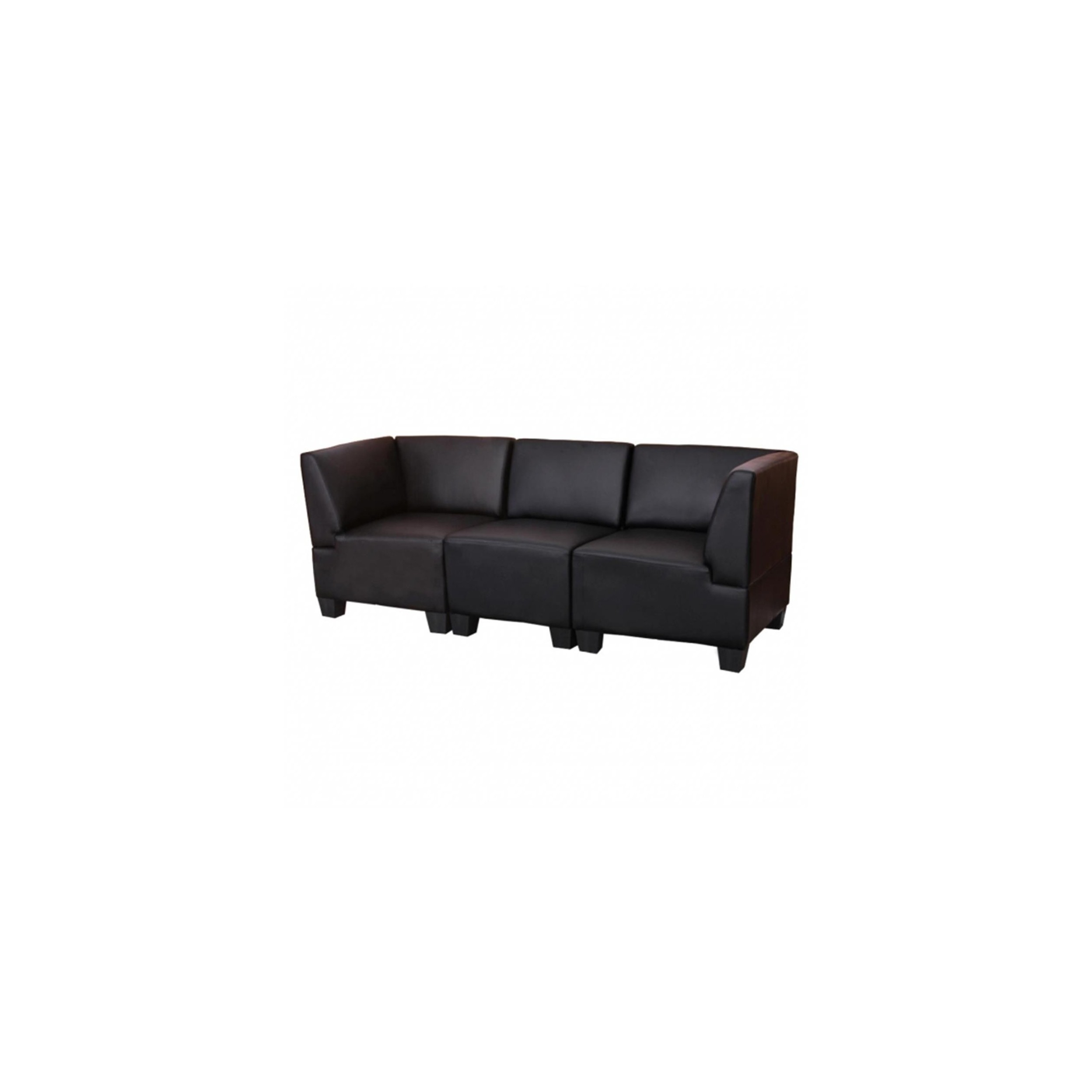 Sofá Modular de 3 plazas LONY, Gran Acolchado y Reposabrazos Altos, en Piel color Negro