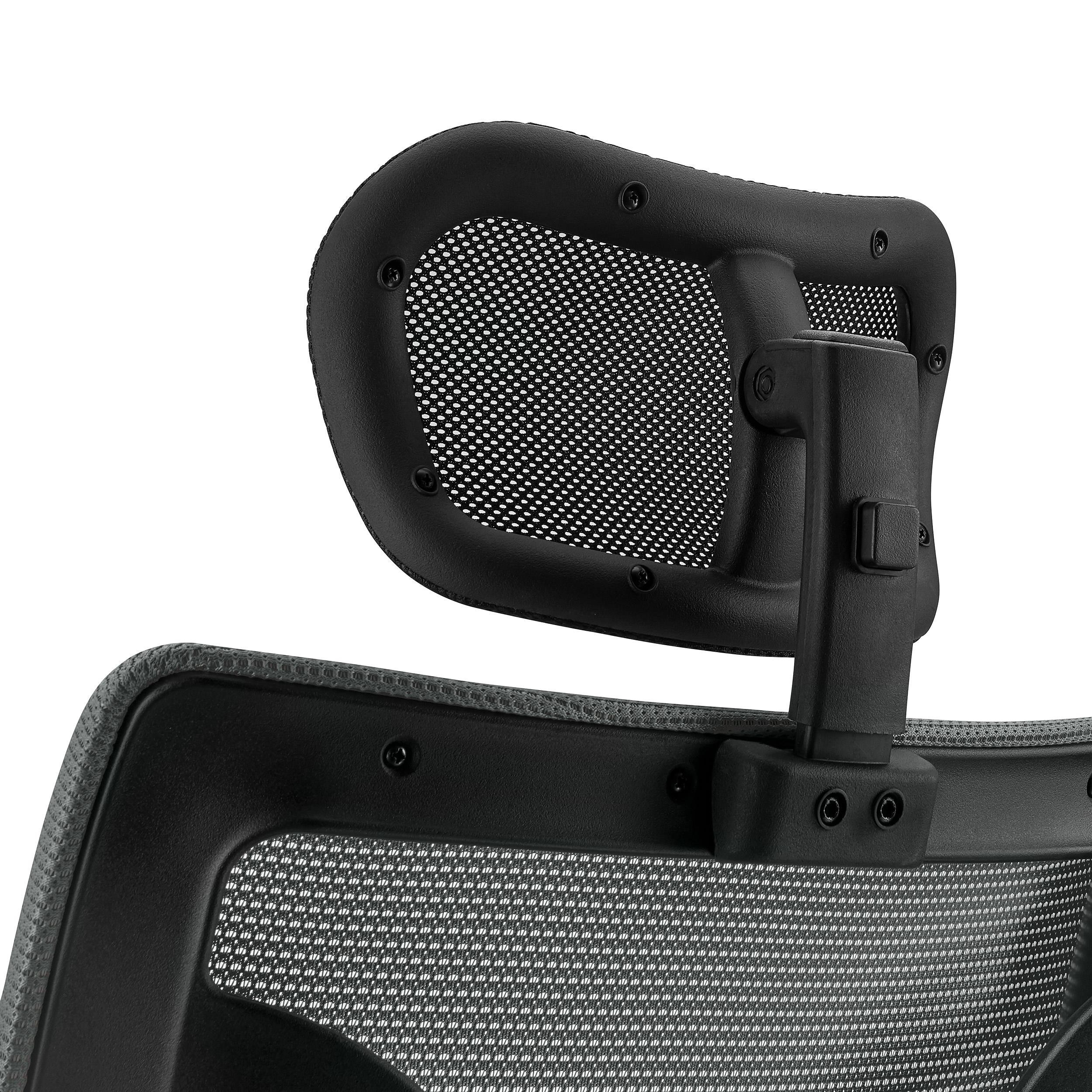 • Reposacabezas en malla ajustable en altura y ángulo