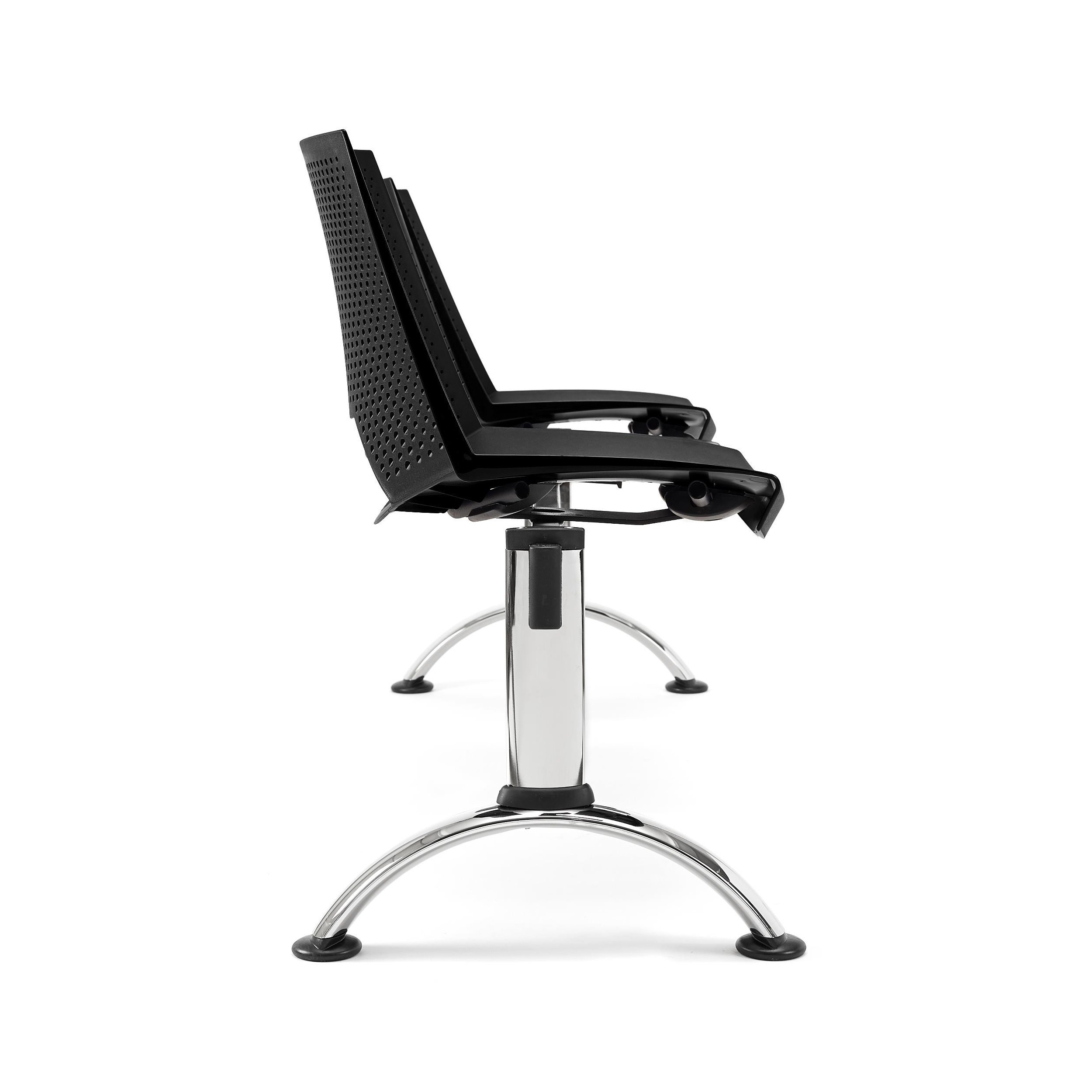 La estructura está construida en marco de acero con patas cromadas. Un material que asegura una resistencia y durabilidad máximas, algo fundamental en este tipo de asientos diseñados para utilización intensiva. También queda garantizada una mayor estabilidad puesto que las bancadas tienen la ventaja de ser más robustas que las sillas individuales.