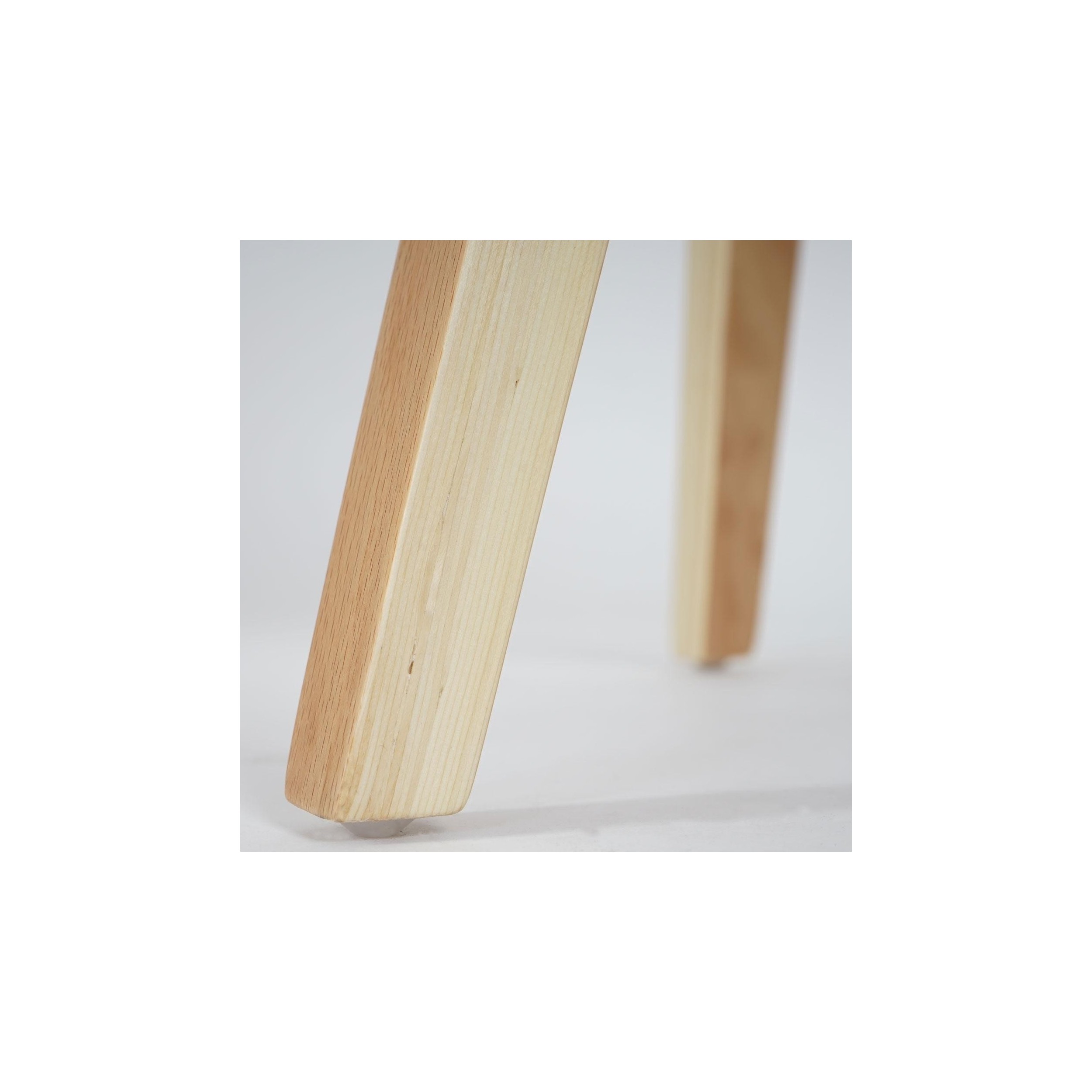 La madera de haya se caracteriza por su robustez y calidad, haciendo que las patas tengan un estupendo acabado y sean muy sólidas y estables. Por si fuera poco, los extremos de las mismas tienen tacos antideslizantes para mayor seguridad y evitar rayar el suelo.