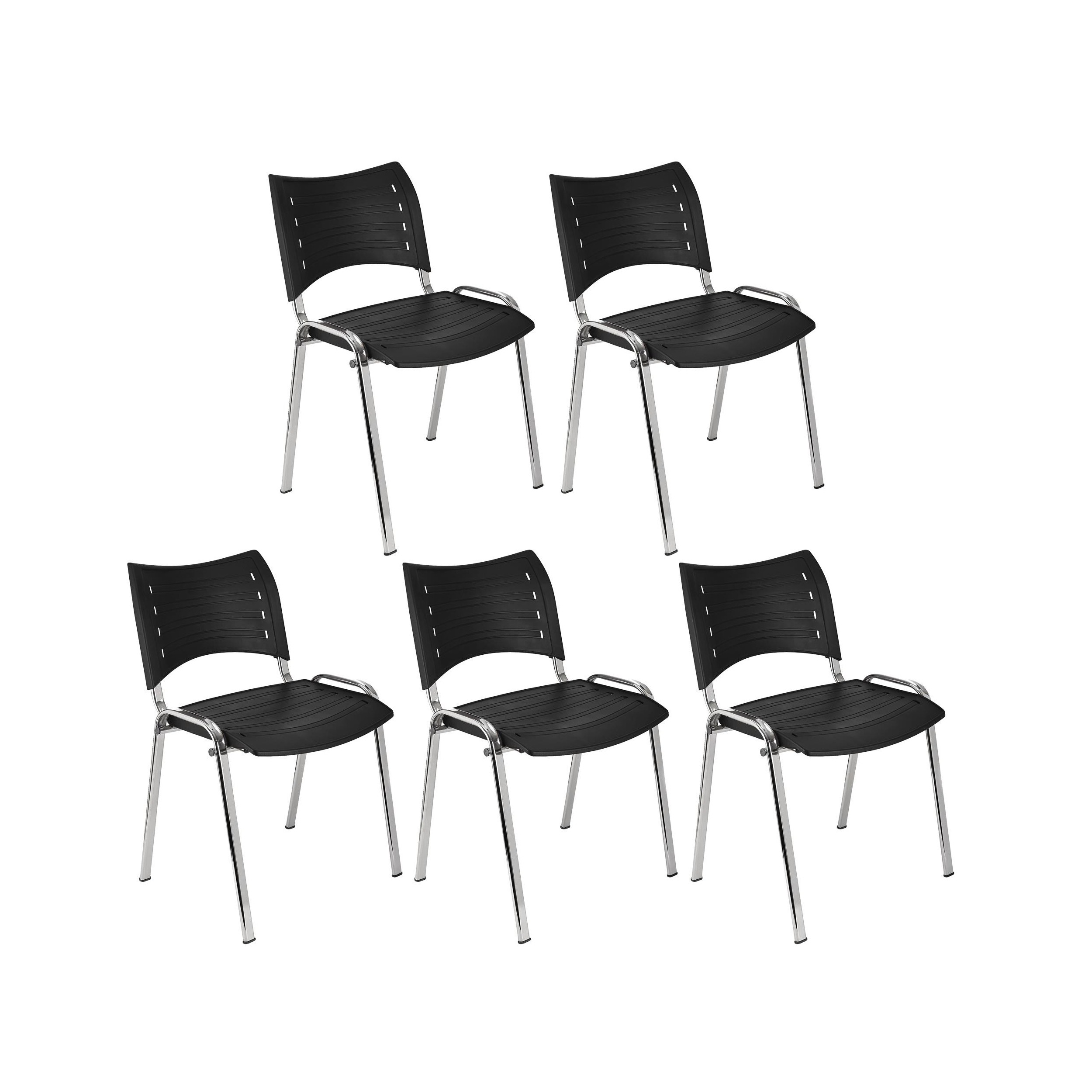Lote 5 Sillas de Confidente ELVA, apilables, en Negro y Patas Cromadas