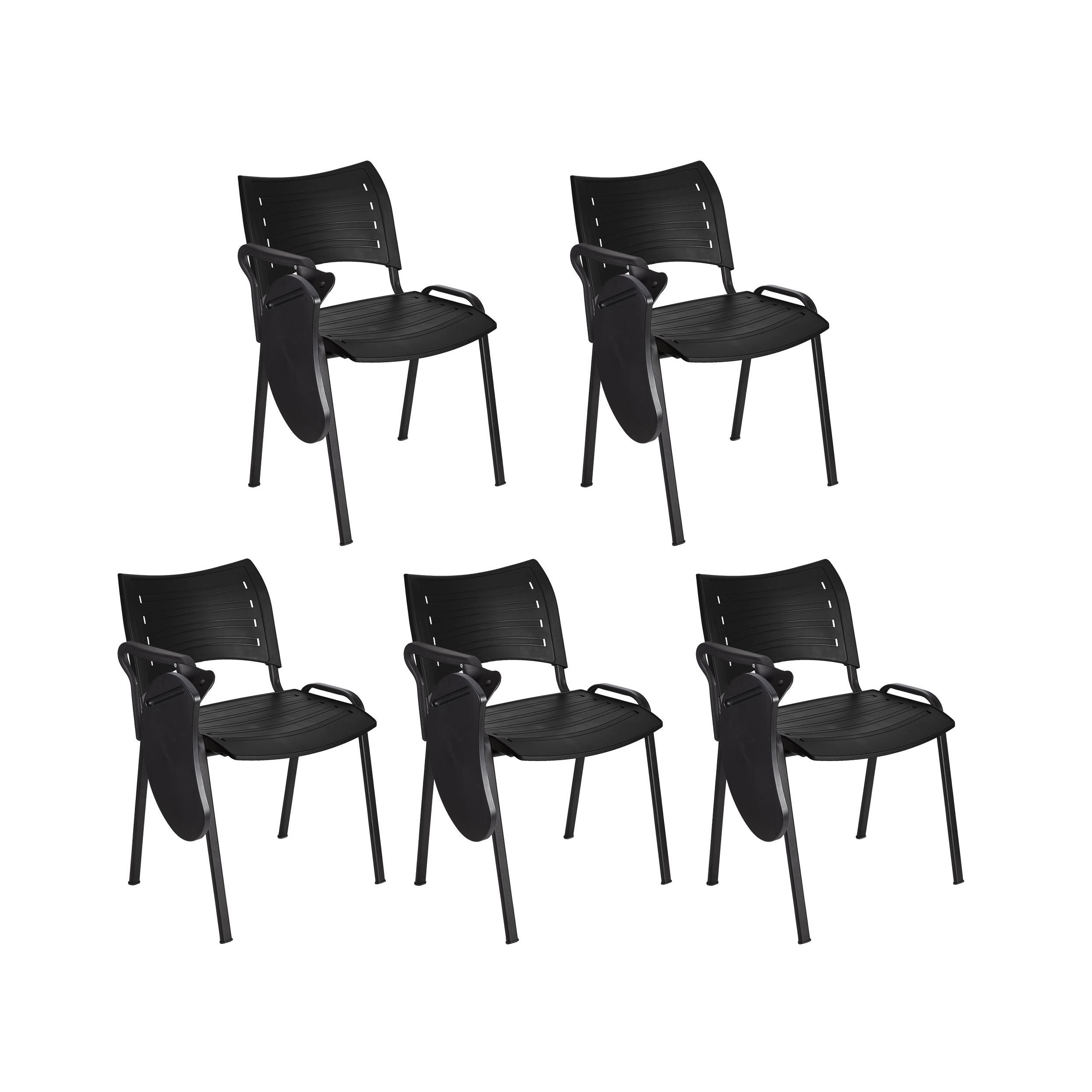 Os presentamos el excelente lote de 5 sillas de confidente ELVA CON PALA. Estamos ante un sensacional modelo para aquellos que necesitan escribir y buscan resistencia, comodidad y fácil manejo. Son unas sillas ideales para ser usadas en salas de espera, reuniones, conferencias, etc. Es una silla con diseño ergonómico y que ofrece una gran resistencia a un precio insuperable.