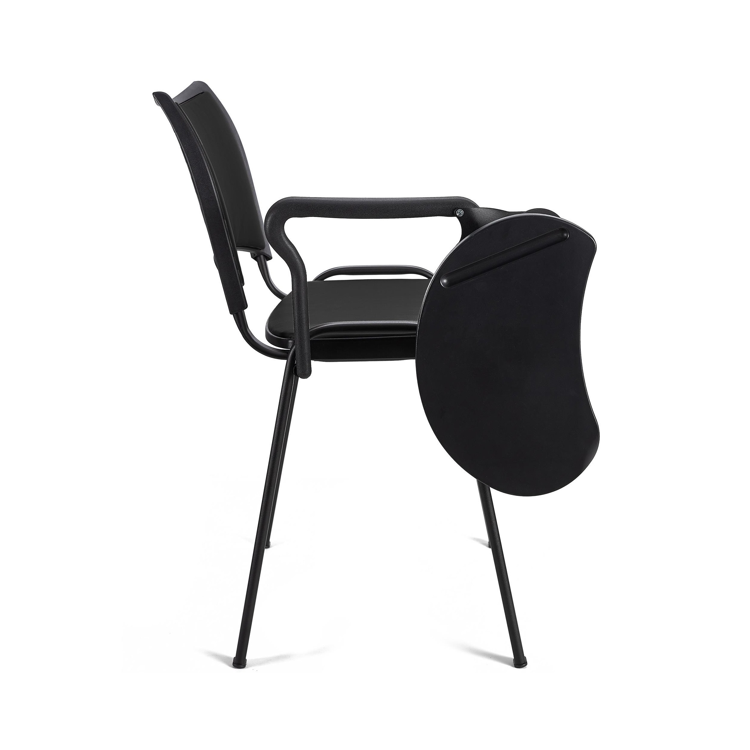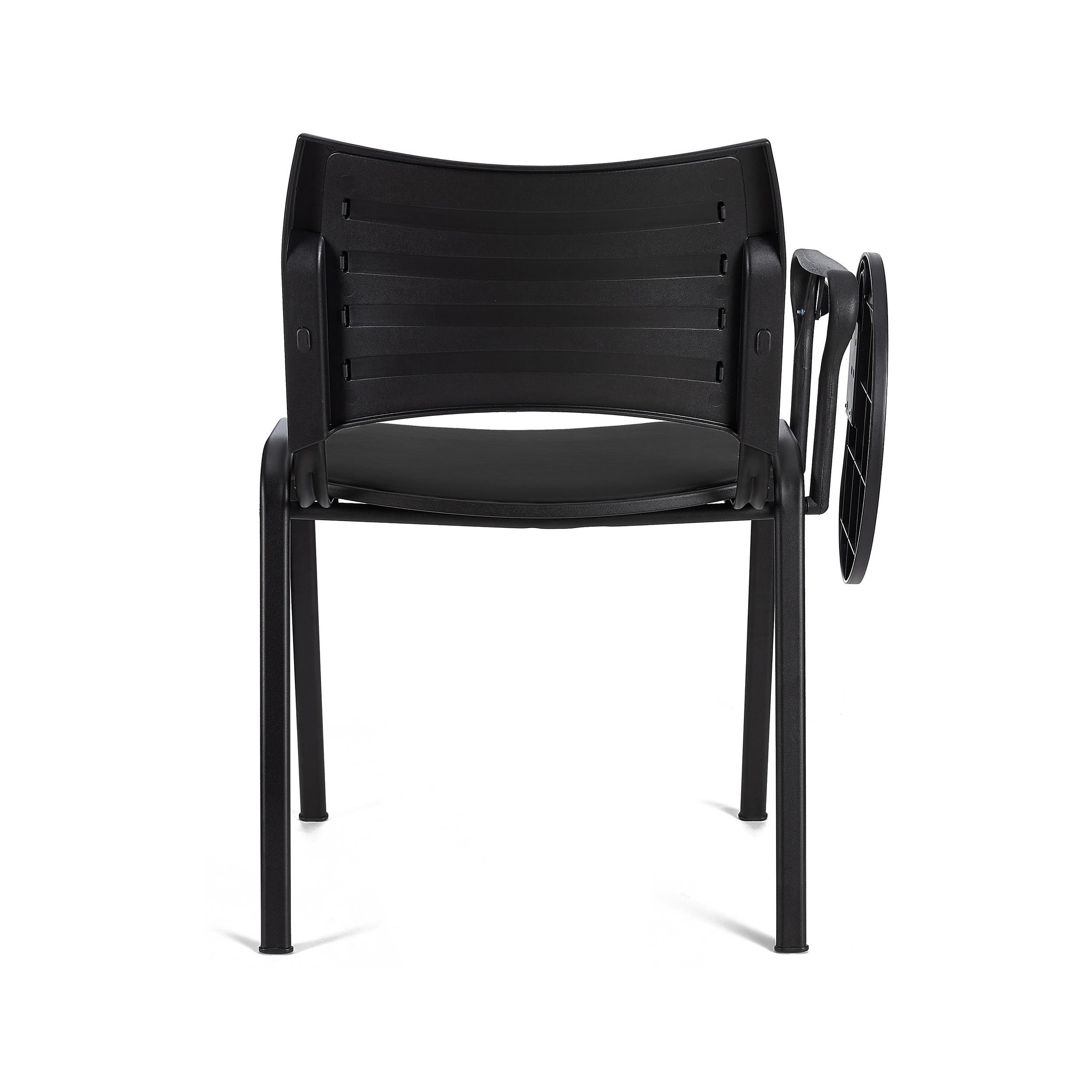 El diseño ergonómico junto a su asiento y respaldo acolchados, hacen que esta silla también destaque por su confort. De esta manera, te aseguras que tus visitas o clientes puedan estar cómodos durante horas. Además, cuenta con pala para escritura, ideal para poder ofrecer un cómodo punto de apoyo a la hora de tomar notas.