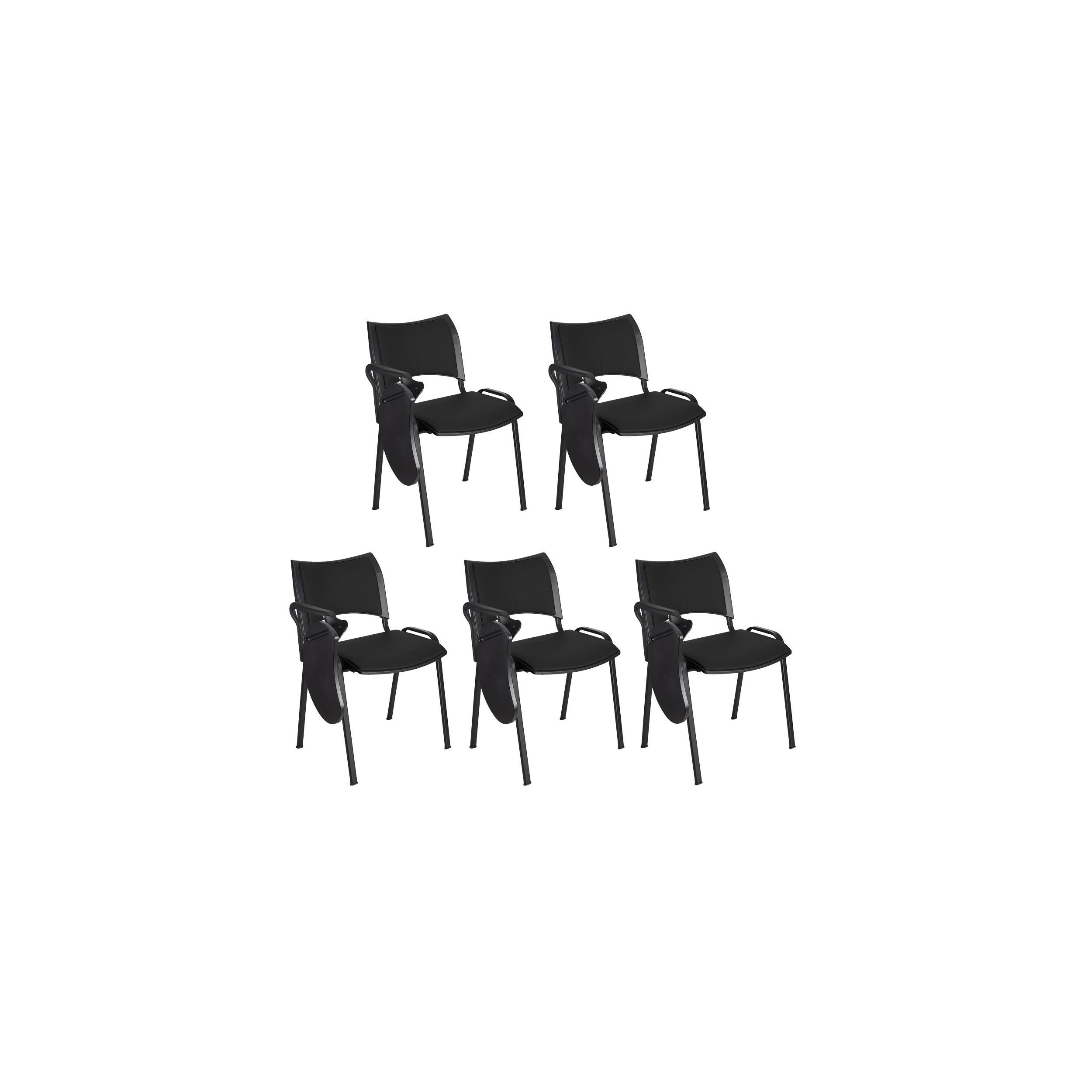 Lote de 5 Sillas de Confidente ROMEL CON PALA PIEL, Cómodo Acolchado, Apilables, Patas Negras, en Negro