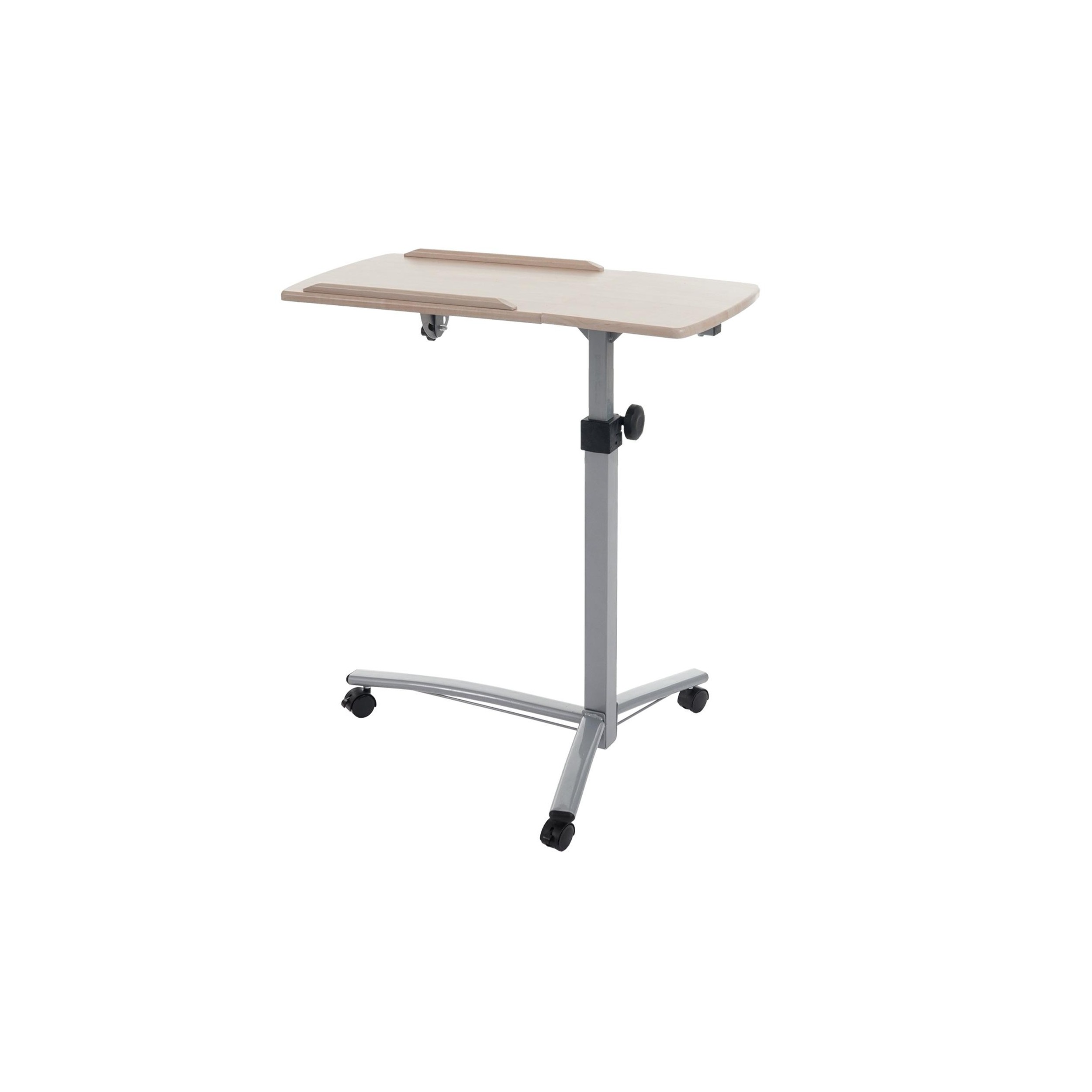 Mesa para Ordenador portátil con ruedas STAND. Dimensiones 55x50 y altura ajustable entre 67 y 102 cm. La mesa perfecta para usar de pie, sentado o tumbado. Estructura metálica con ruedas y bandeja de madera en distintos colores.