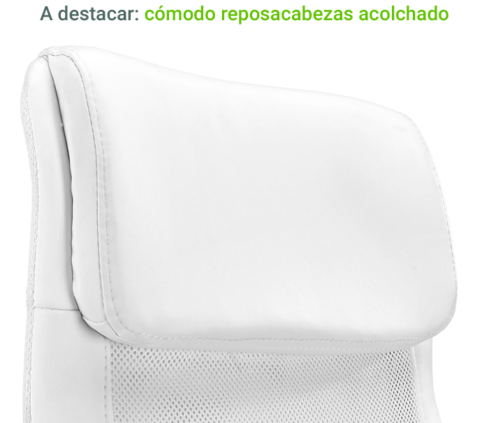 Llama la atención su alto respaldo con reposacabezas acolchado. Una característica que pocas sillas en malla transpirable tienen, por lo que se combina muy bien este material y la piel del cabecero. Pero no sólo eso, ya que incluye un amplio soporte lumbar acolchado, por lo que la parte baja de la espalda queda protegida. Como verás, son elementos exclusivos orientados al confort.
