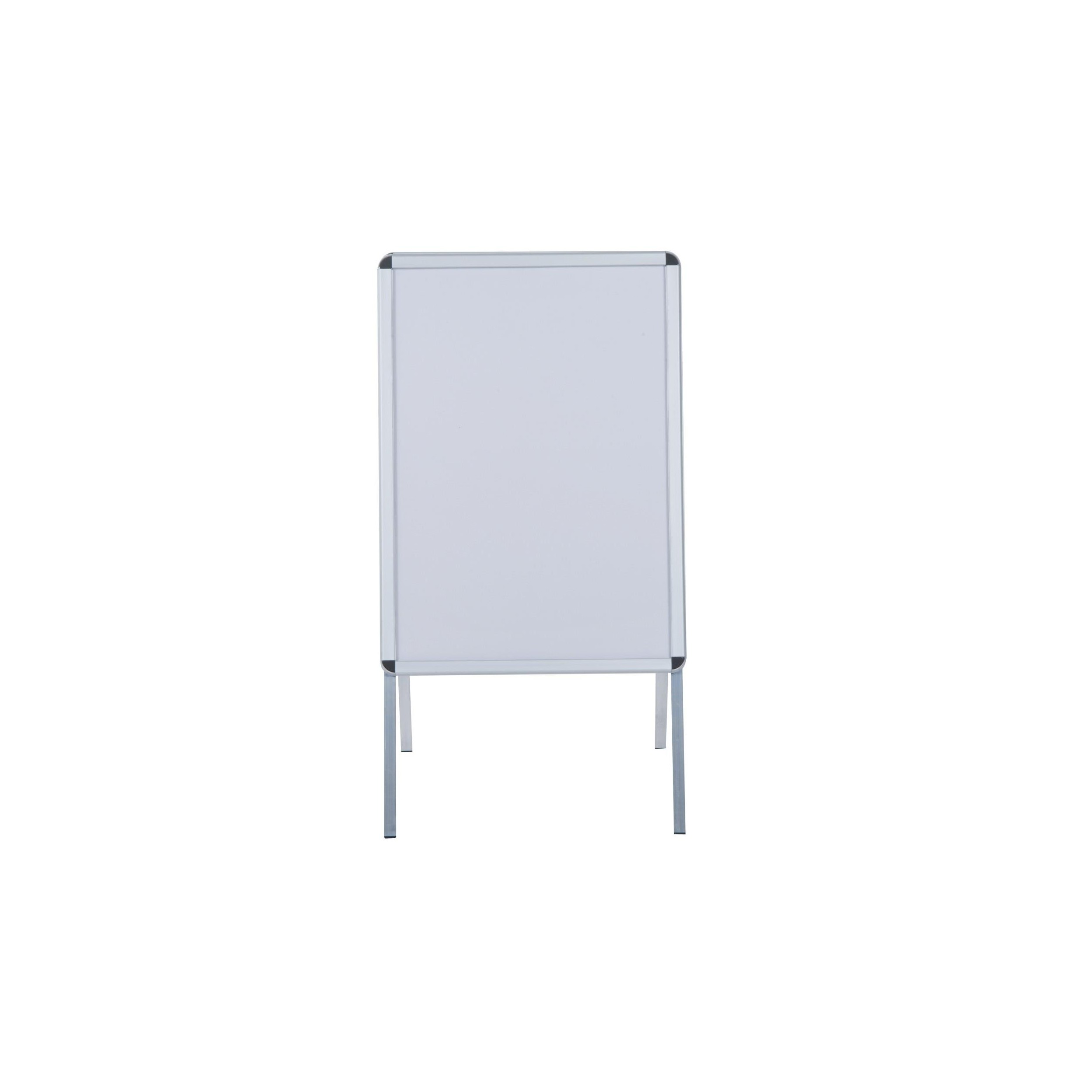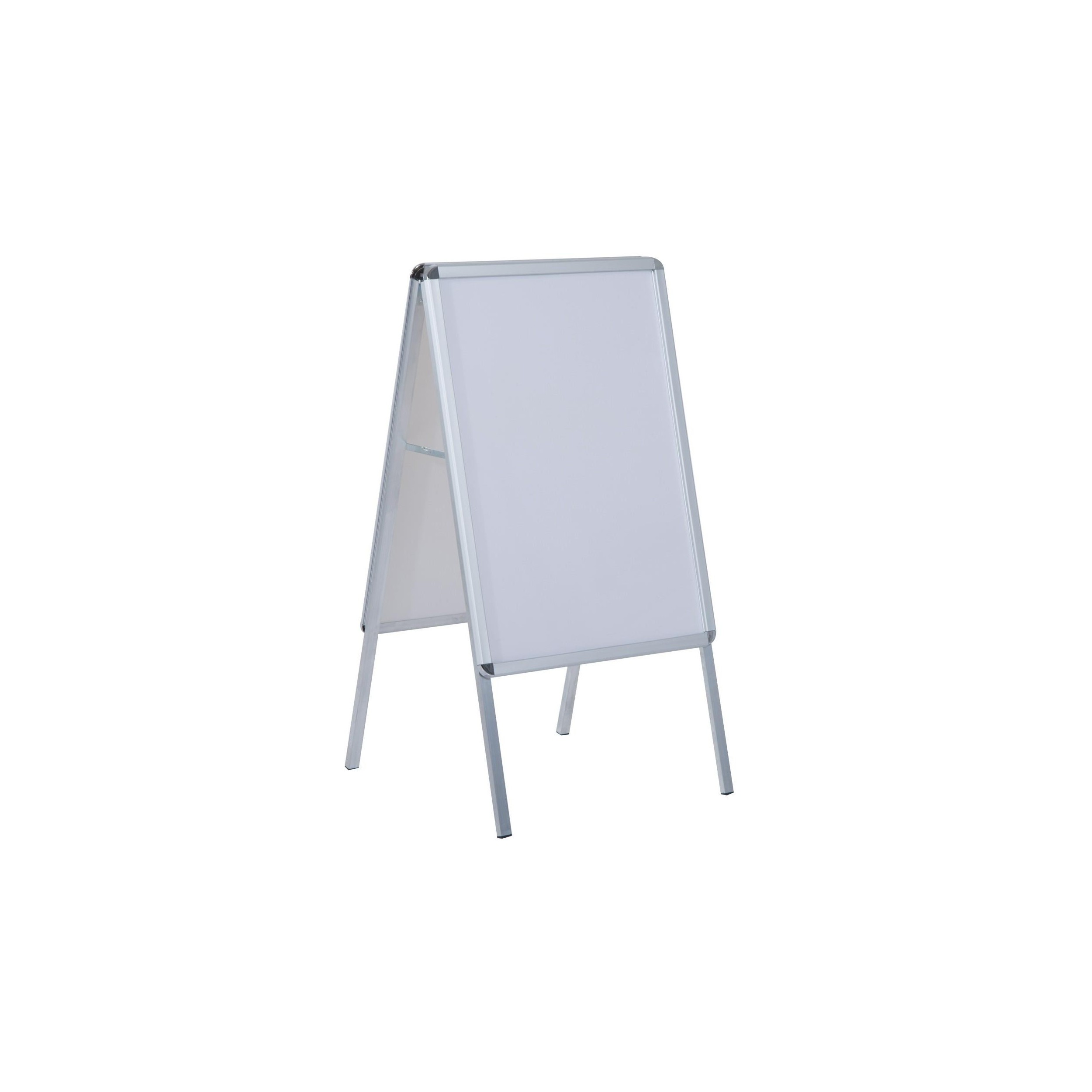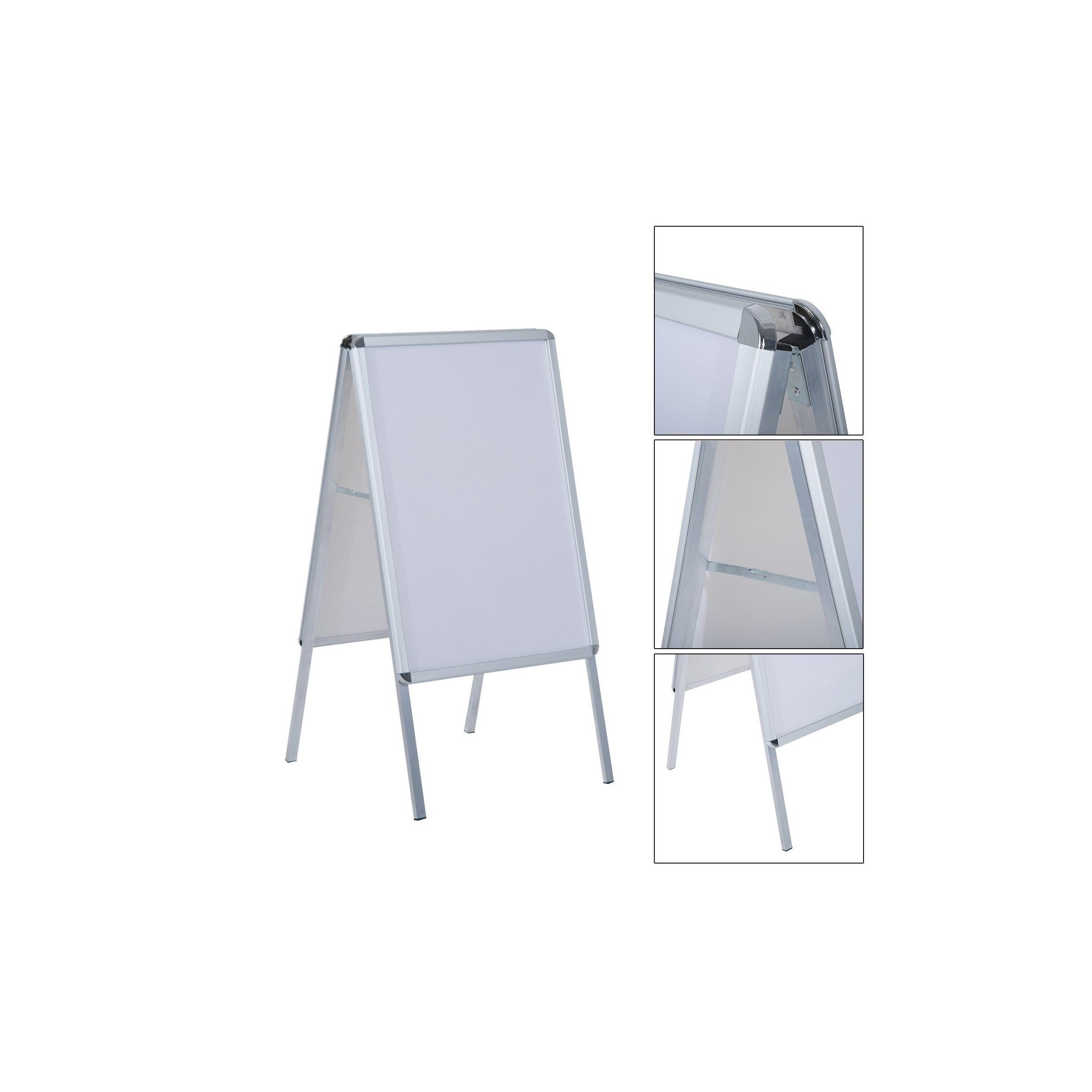 Los materiales que se han escogido para la fabricación de este caballete publicitario son de excepcional calidad. Cuenta con una estructura de cuatro pies de aluminio y plástico antideslizante, que puede abrirse hasta un ángulo de 31 grados para una mayor estabilidad en el suelo. Las esquinas de plástico redondeado aseguran una mayor protección y evitan daños.