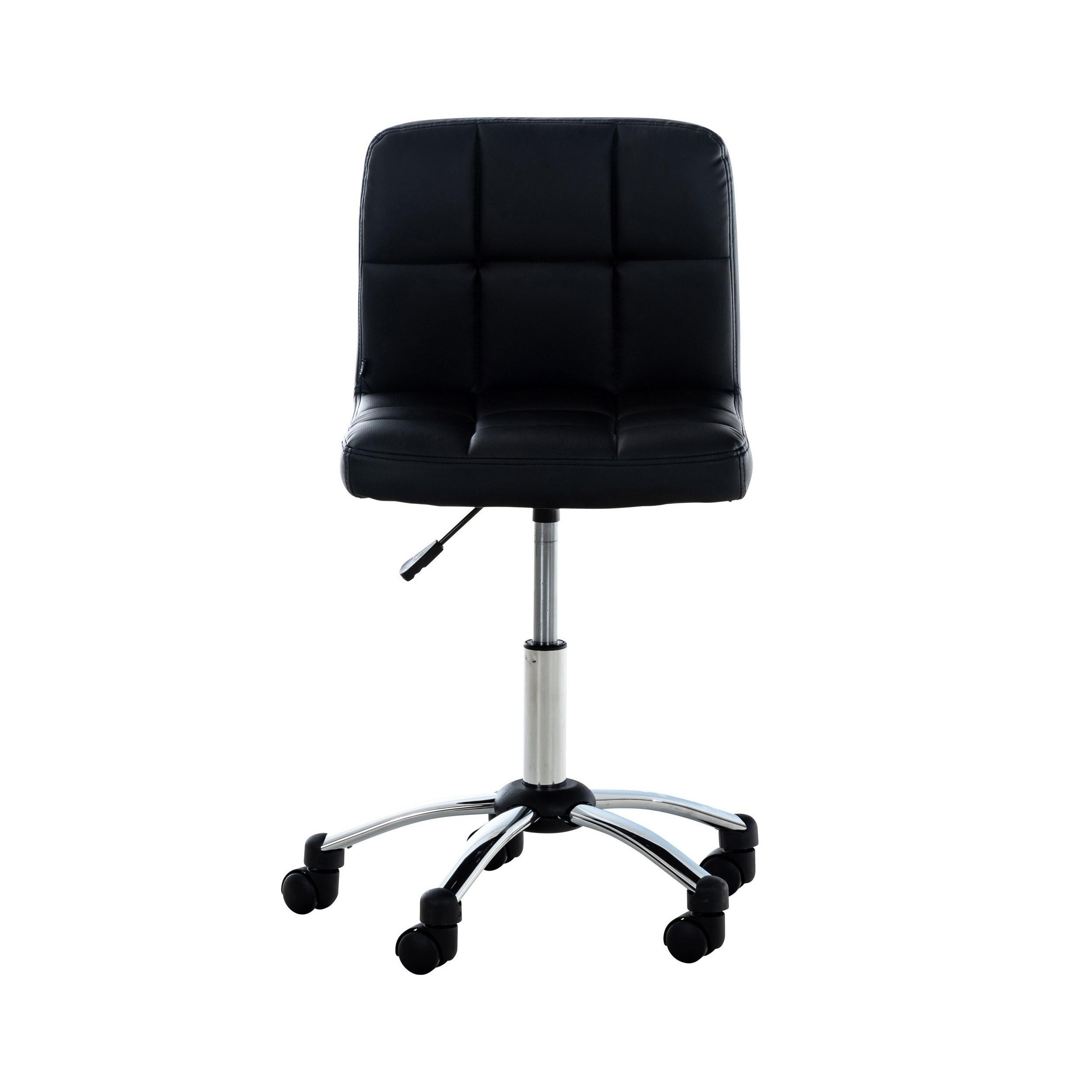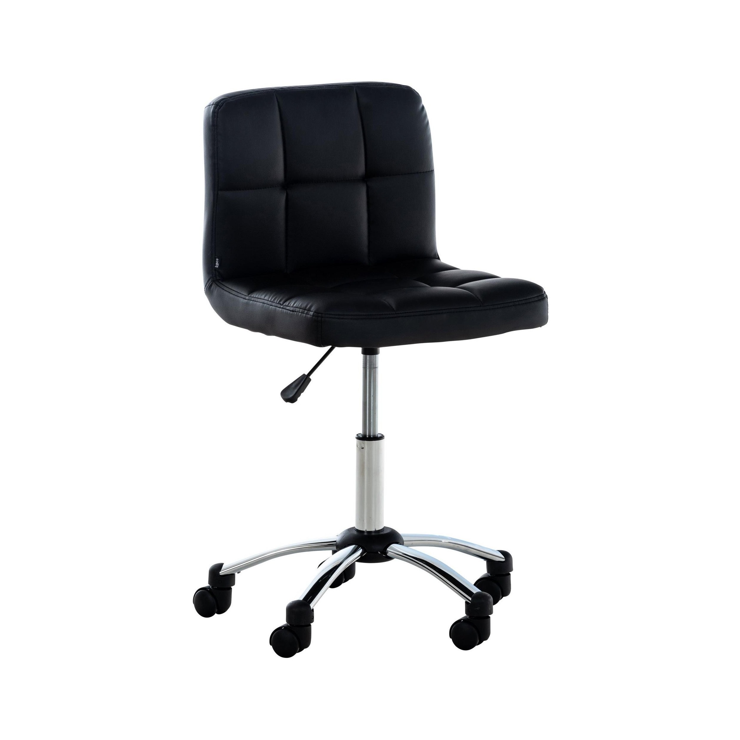 Silla / Taburete de Oficina LUKE, Gran Acolchado, Estructura Metálica, en Piel color Negro