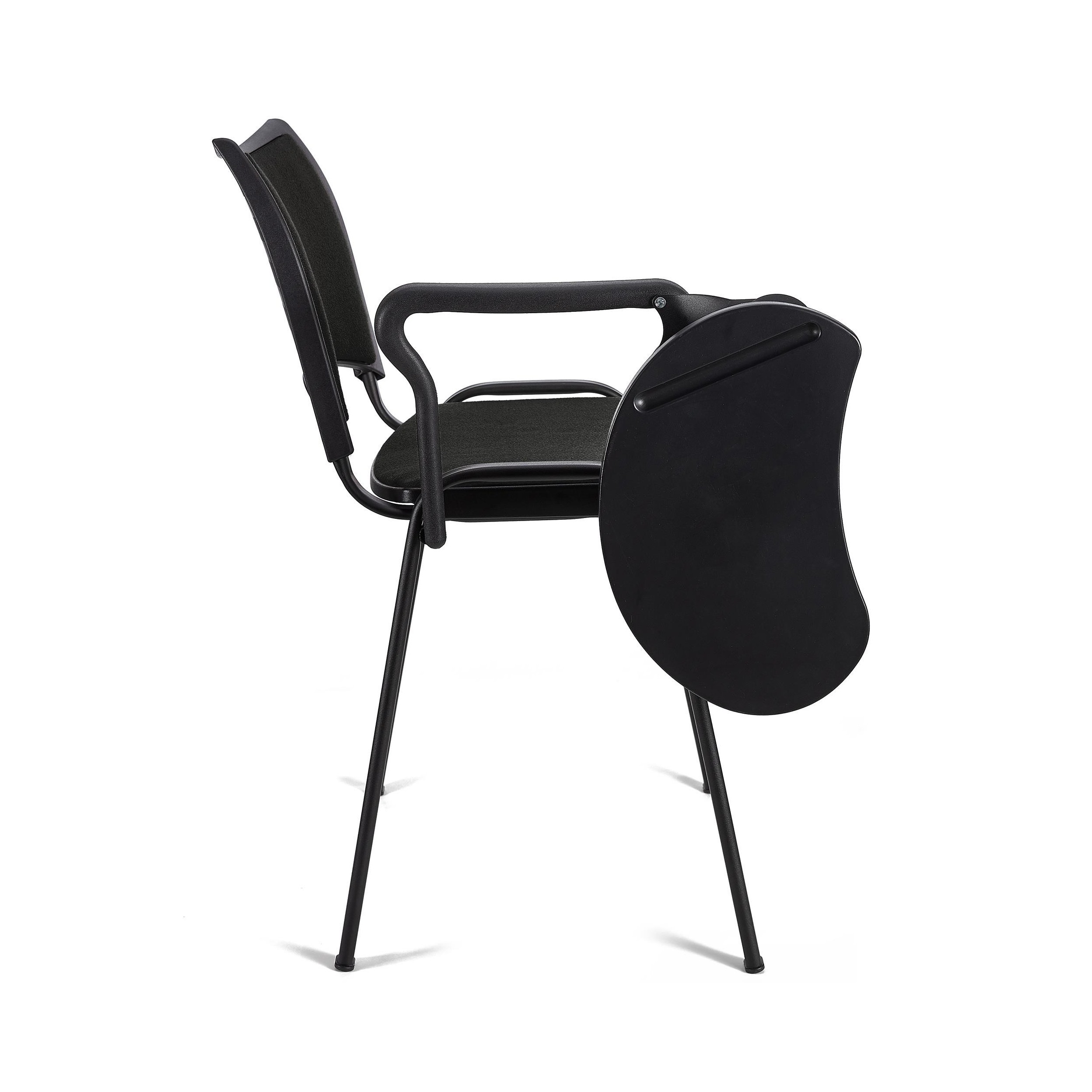 Silla de Confidente ROMEL CON PALA, Cómodo Acolchado, Apilable, Patas Negras, en Tela Negra