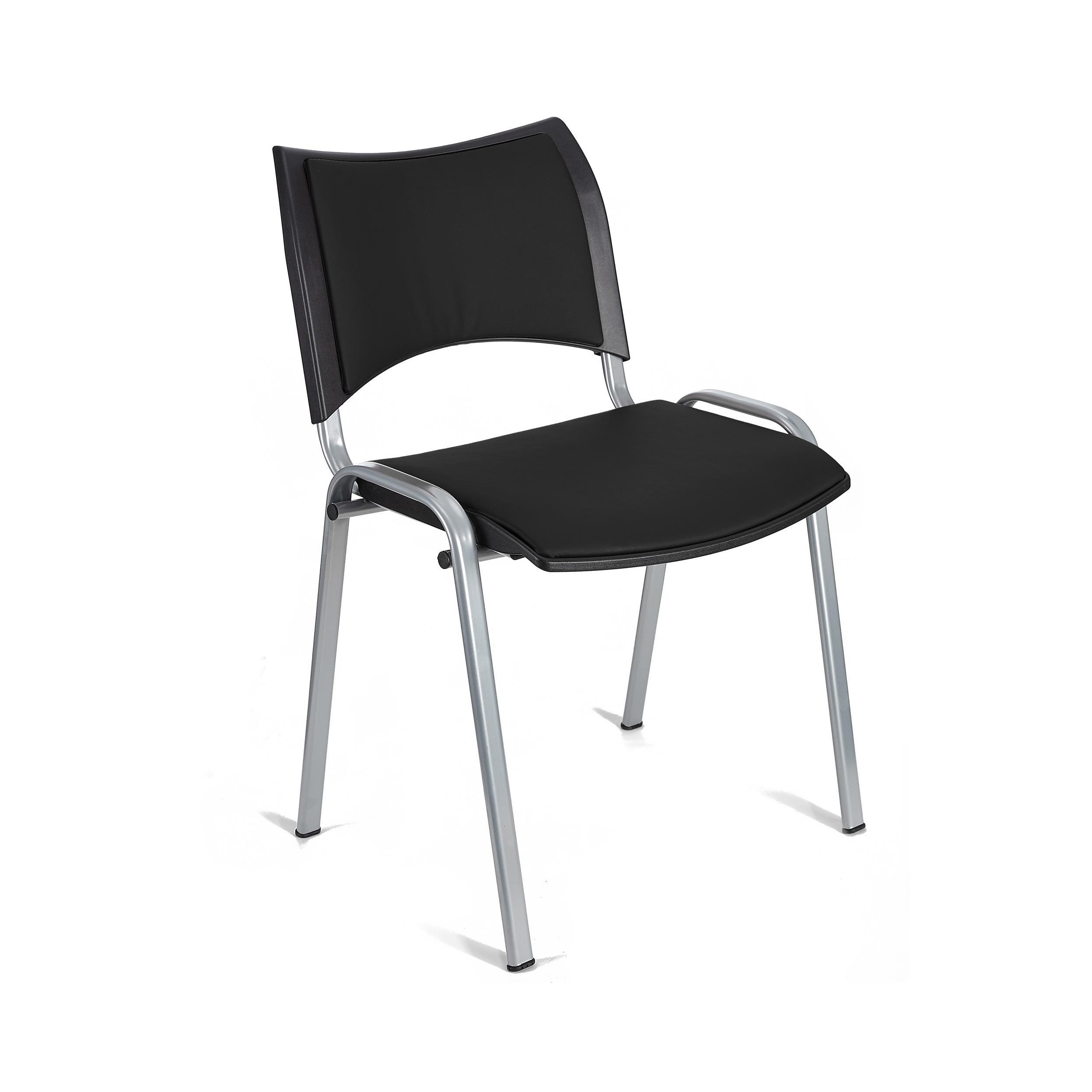 Silla de Confidente ROMEL PIEL, Cómodo Acolchado, Apilable, Patas Grises, en Negro