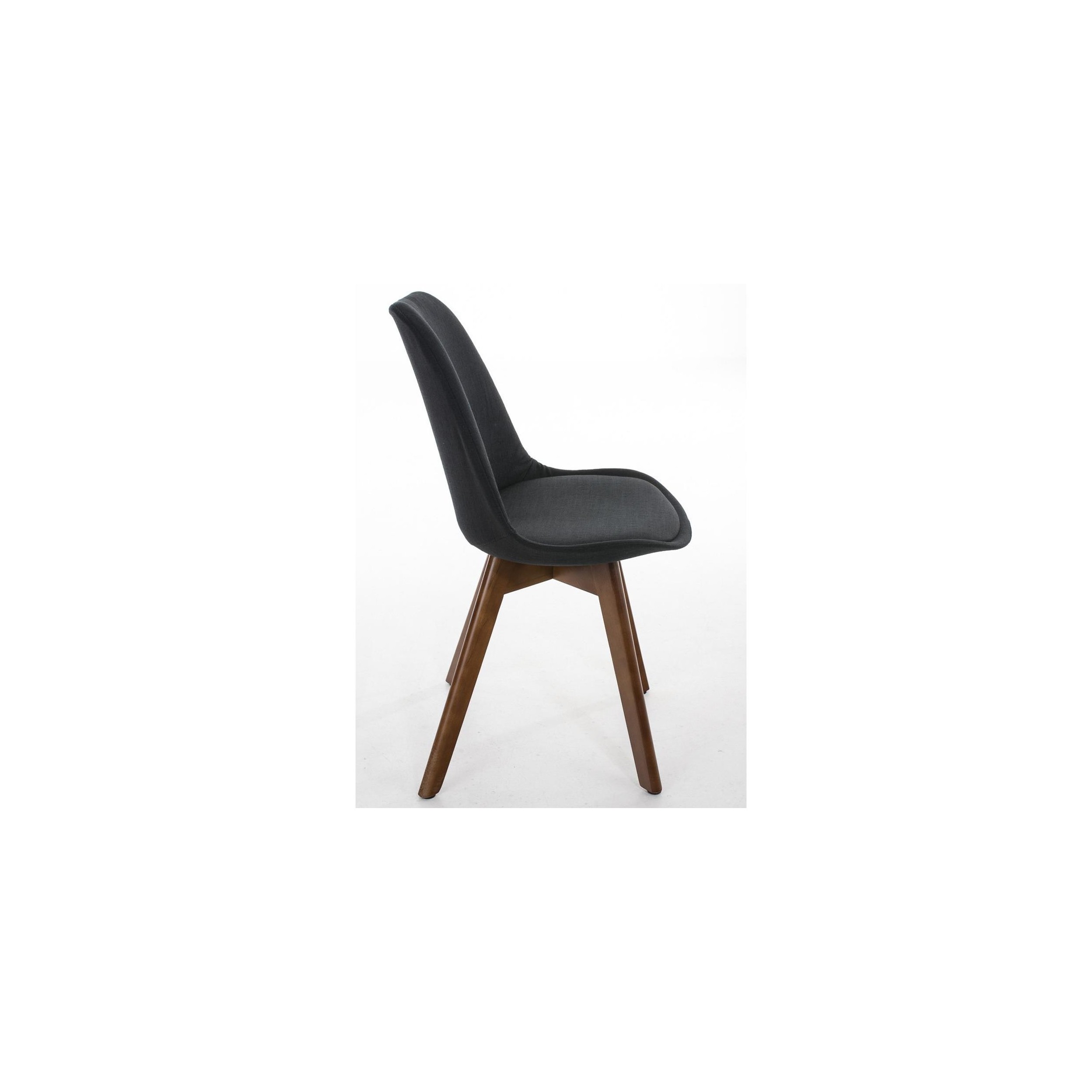 También cabe destacar que se trata de una silla de excepcional calidad, ya que los materiales con los que fabrica son de primera categoría. Sus patas de madera maciza de haya en color nogal son muy robustas y resistentes, con un diseño y estilo muy peculiar. La carcasa de asiento y respaldo es de plástico sólido, formando un robusto armazón y está tapizada en tela de la mejor calidad. En definitiva, es una silla concebida para durar muchos años.
