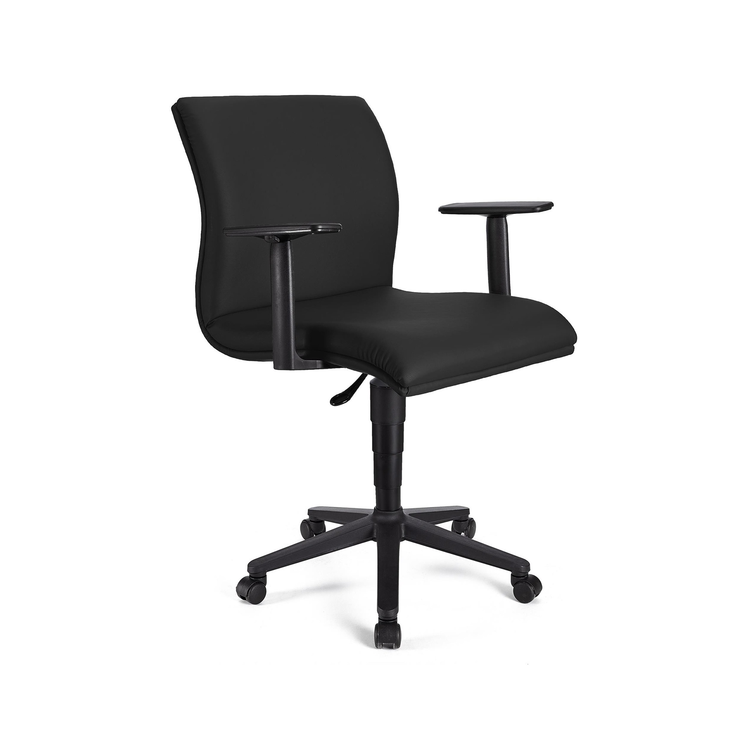Silla de Oficina ANIBAL BASE PIEL, Brazos Ajustables, Acolchado en Color Negro