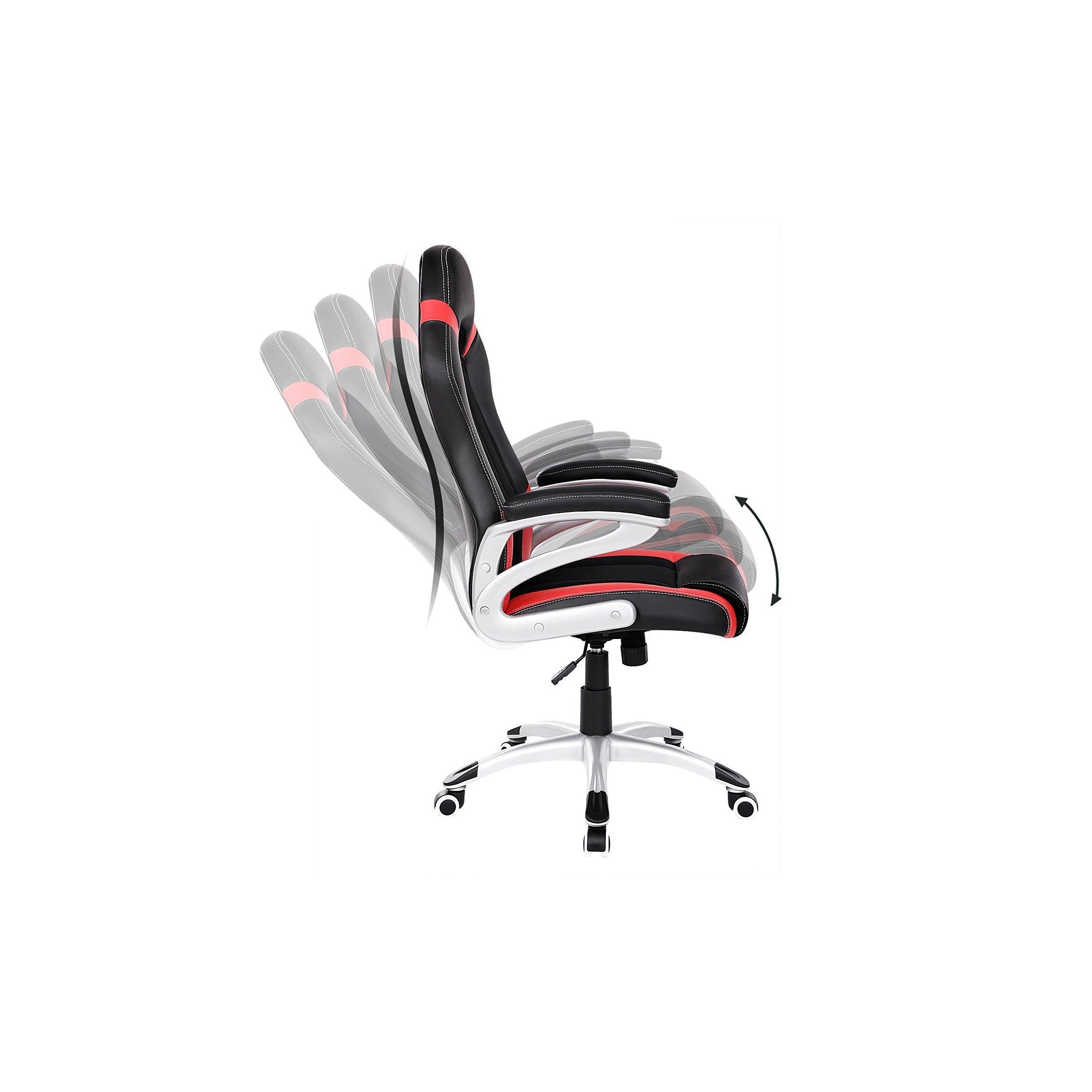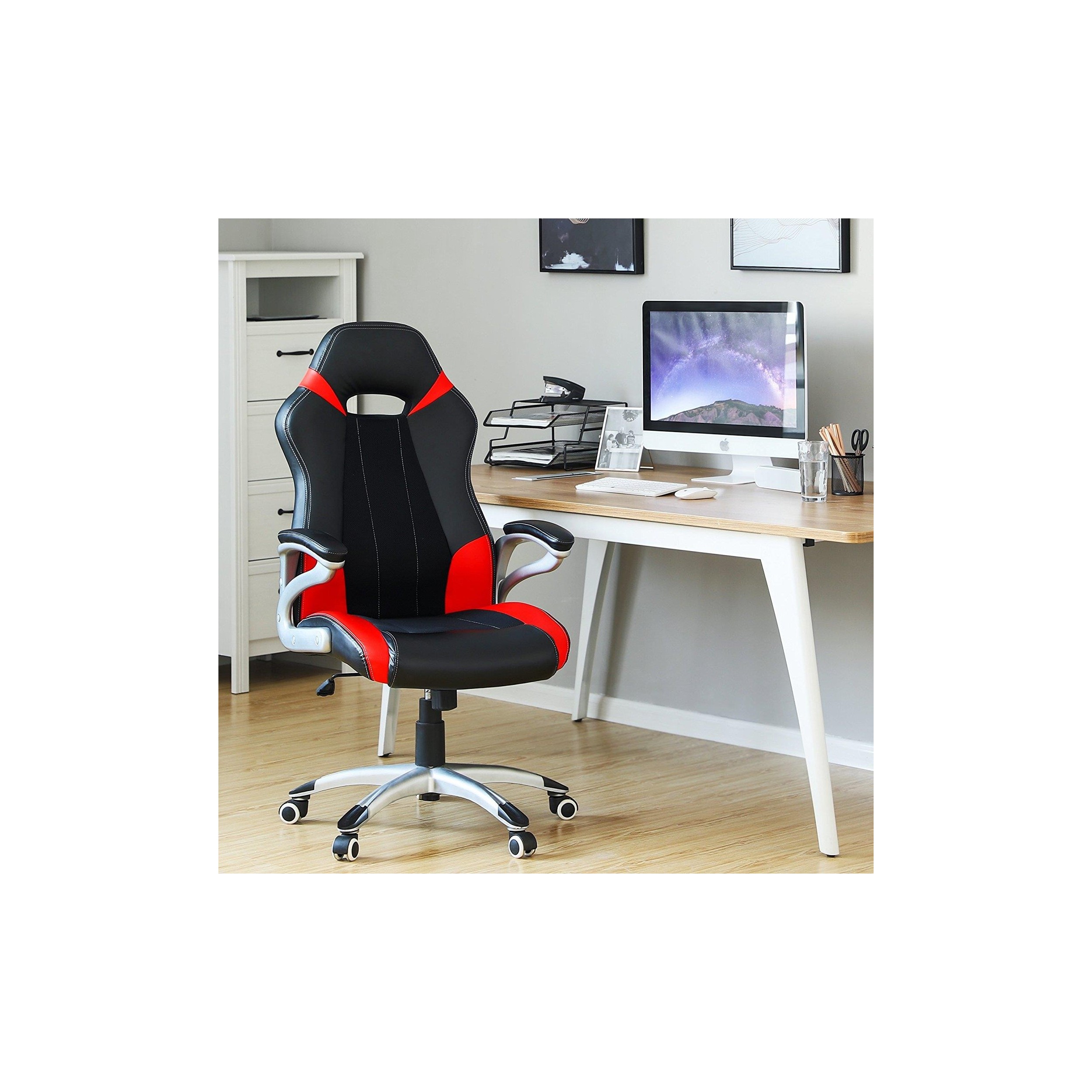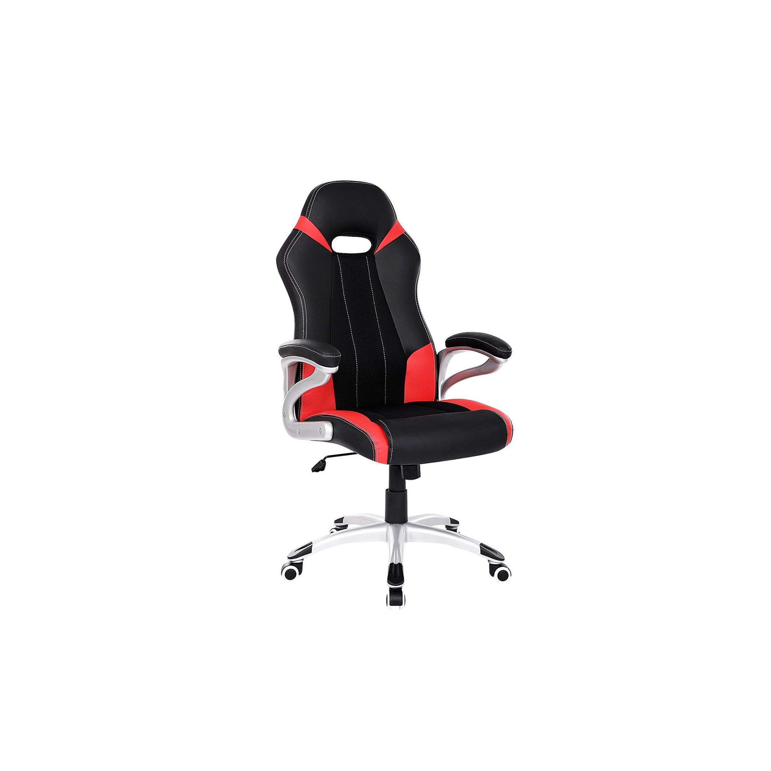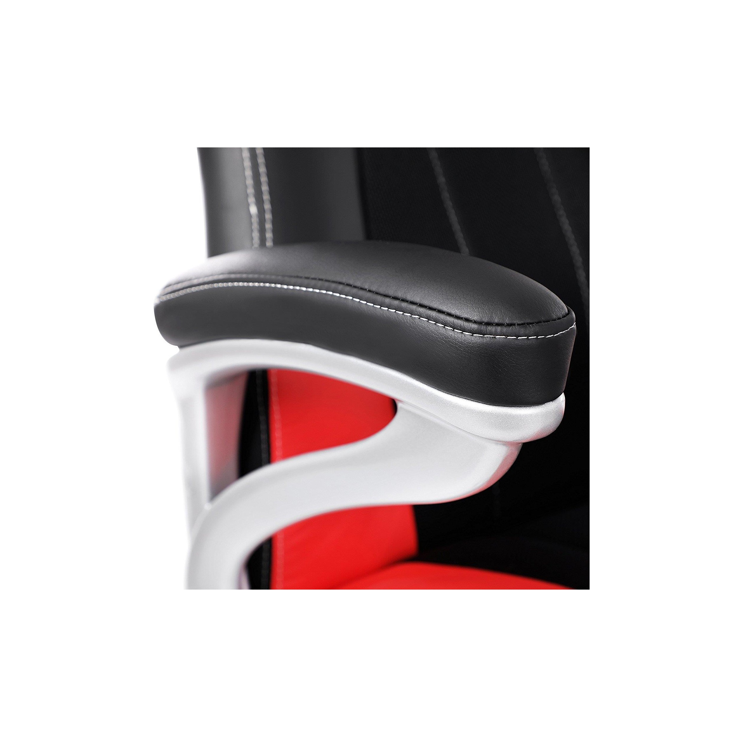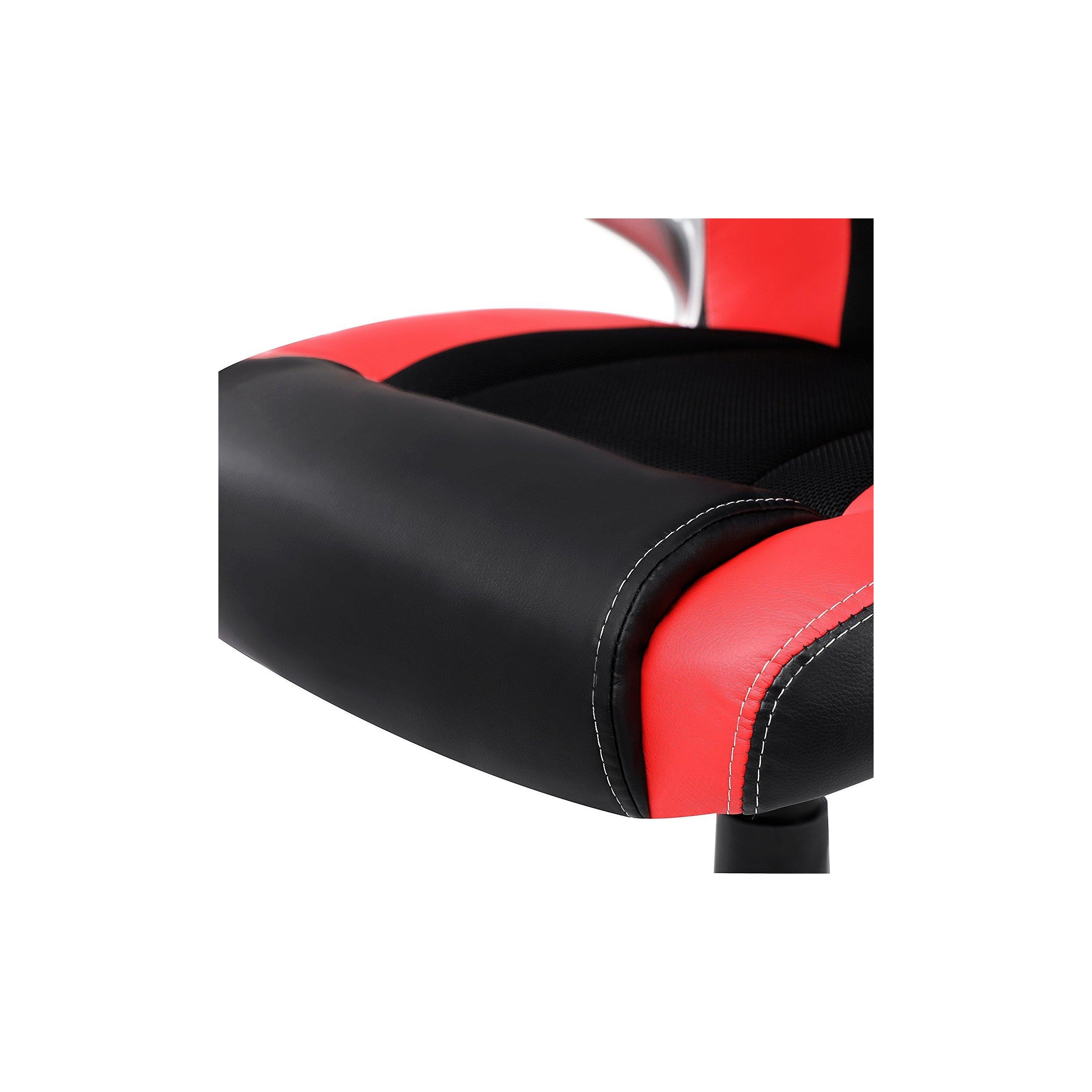 Silla de Oficina ISOS, Grueso Acolchado, Diseño Deportivo, en Malla Transpirable y Piel Negra / Roja