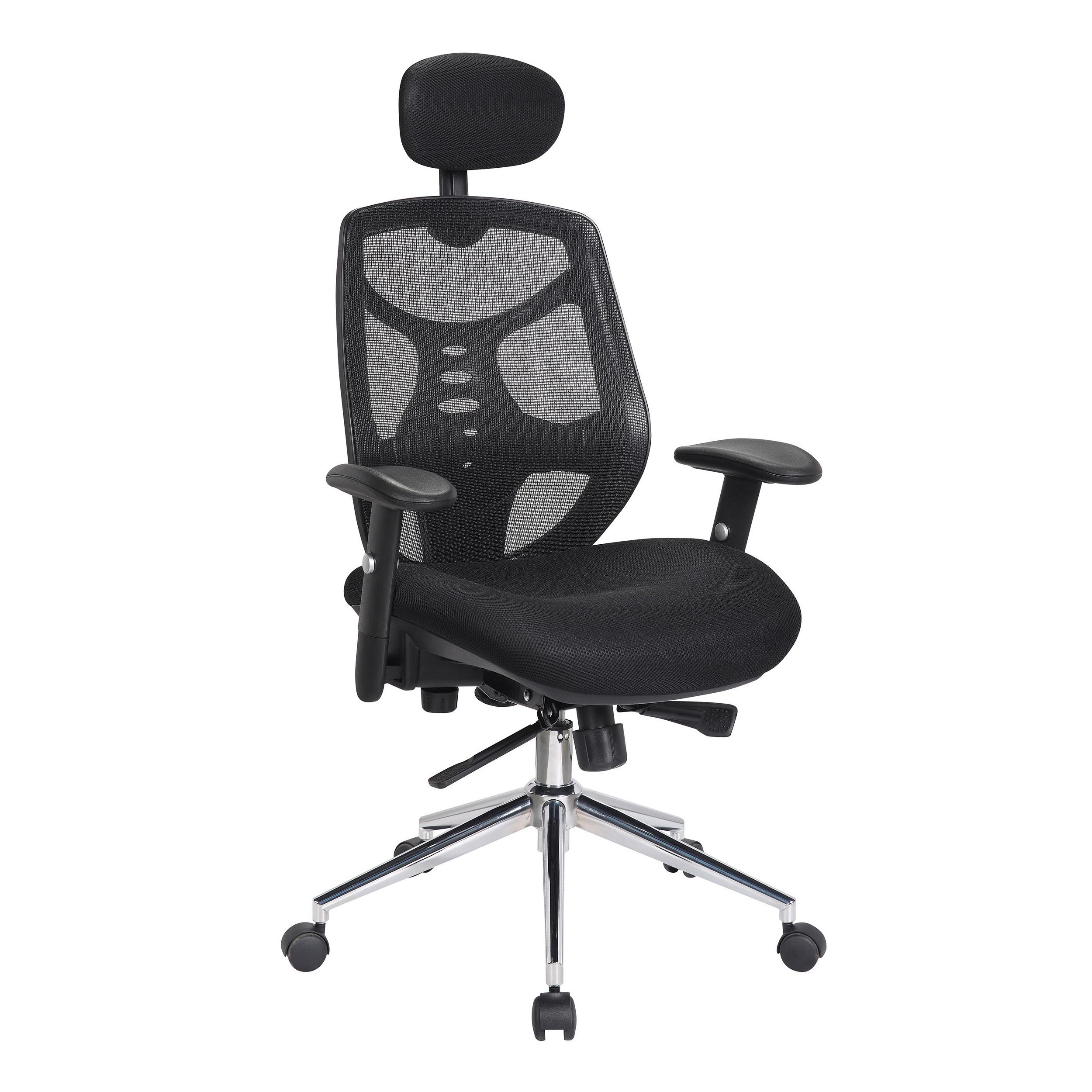 Silla Ergonómica MANTRA, Reposacabezas, Espectacular Respaldo, Brazos Regulables, Uso 8H, Negro