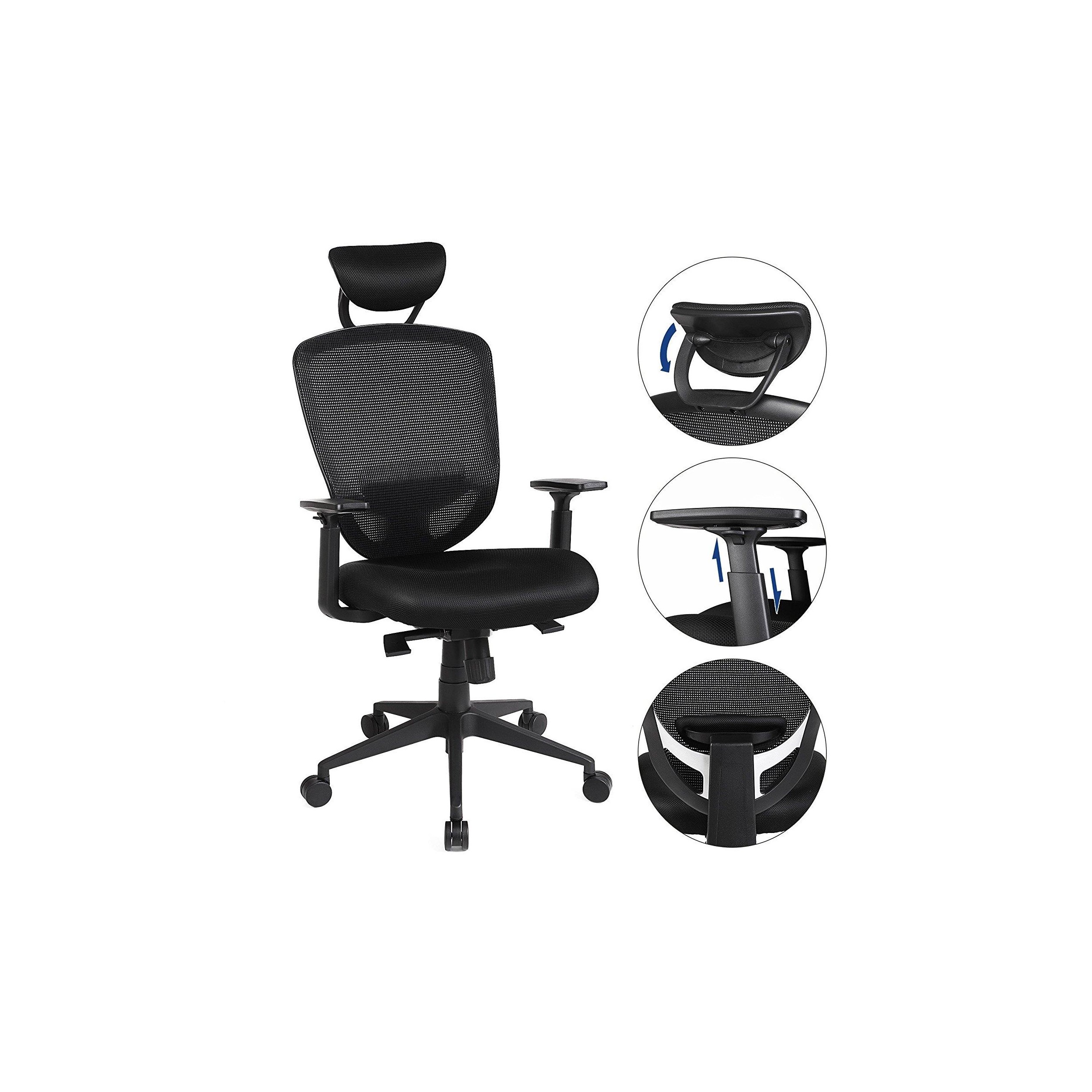 Silla Ergonómica VAGU, Soporte Lumbar, Brazos Ajustables, en Malla Transpirable color Negro