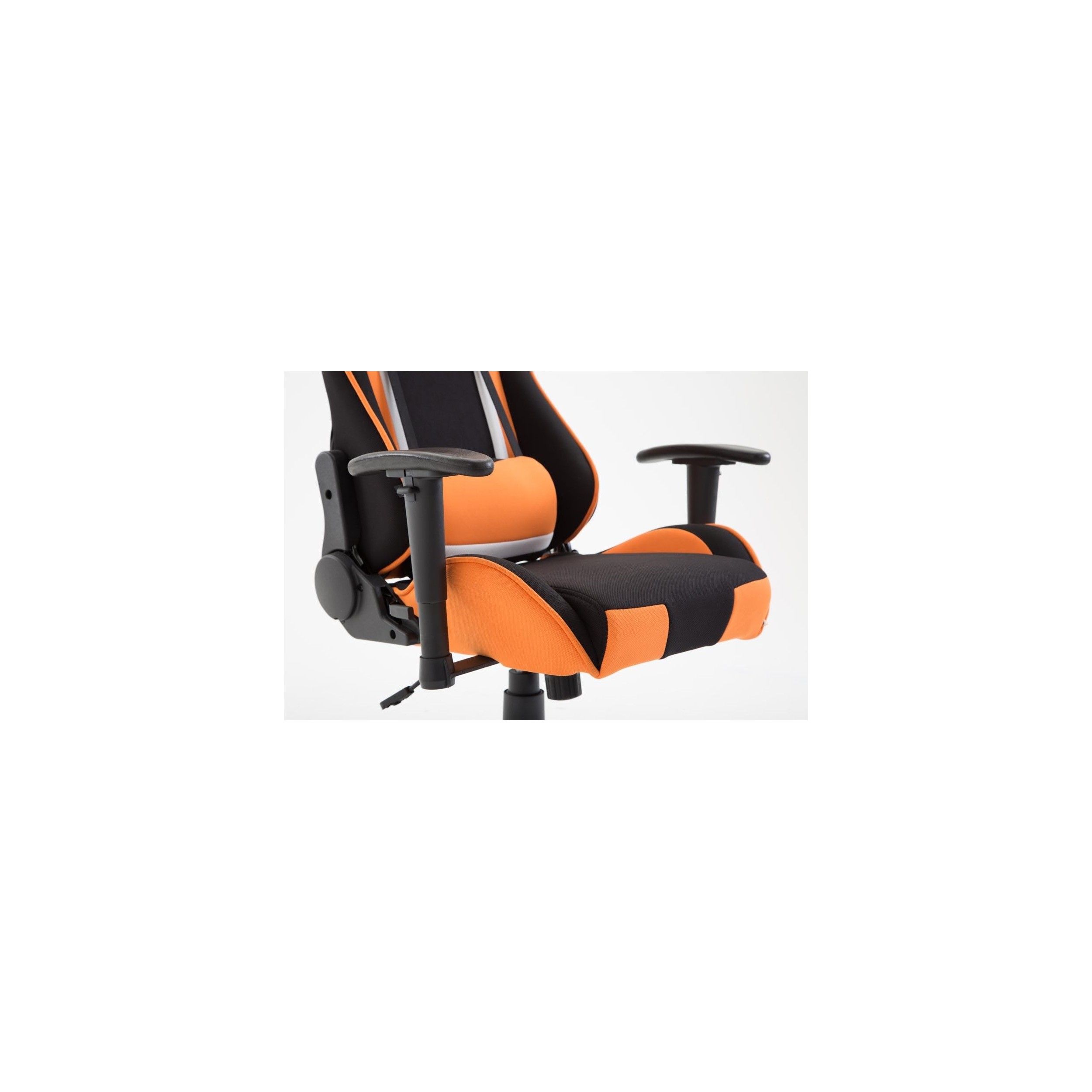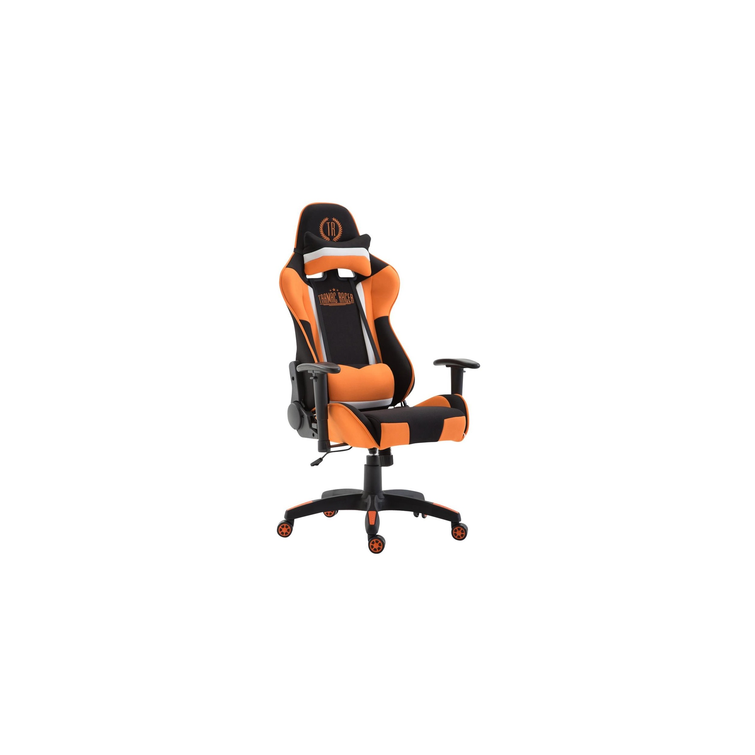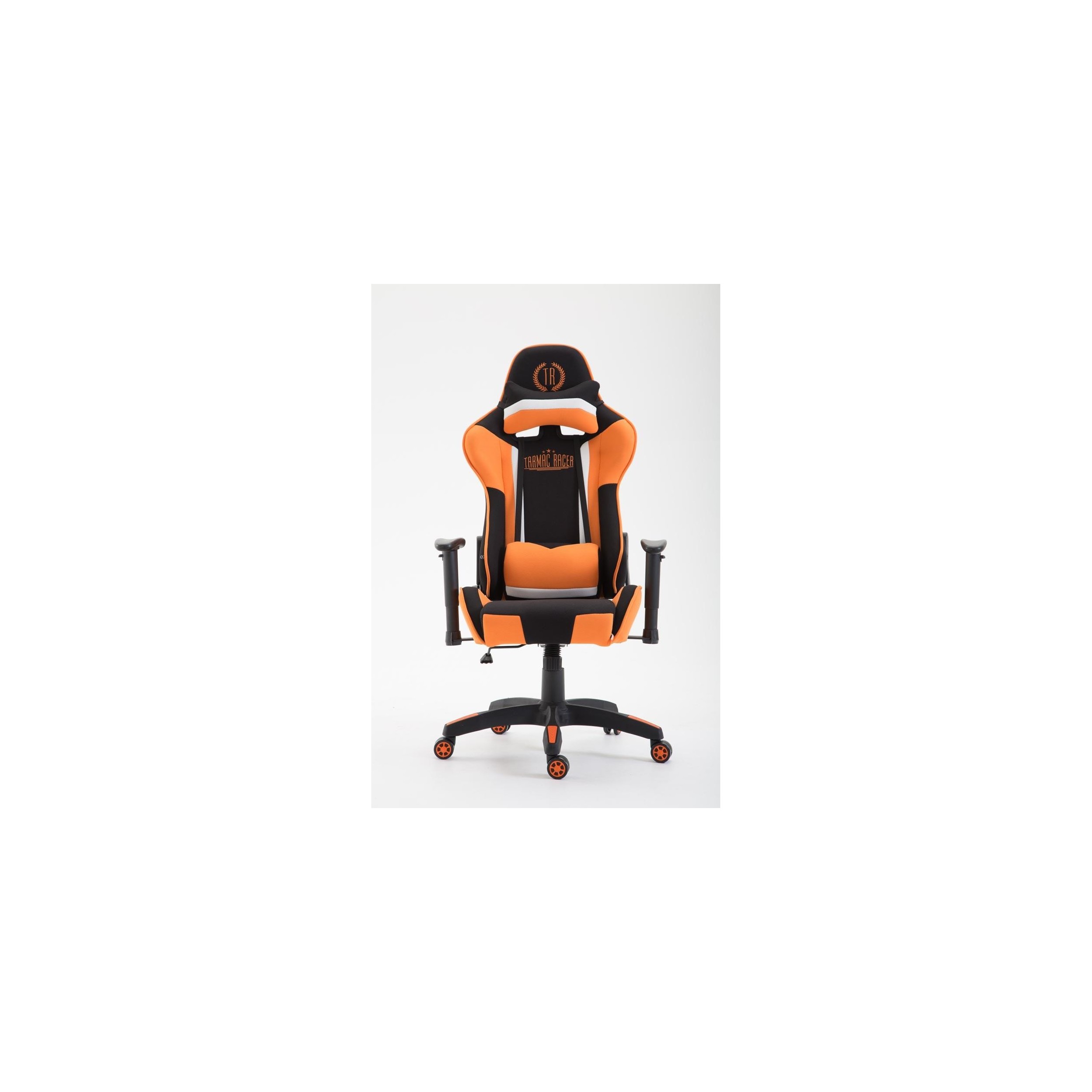 Silla Gaming JEMEX TELA, Respaldo Reclinable, Cojines Incluidos, en Negro/Naranja